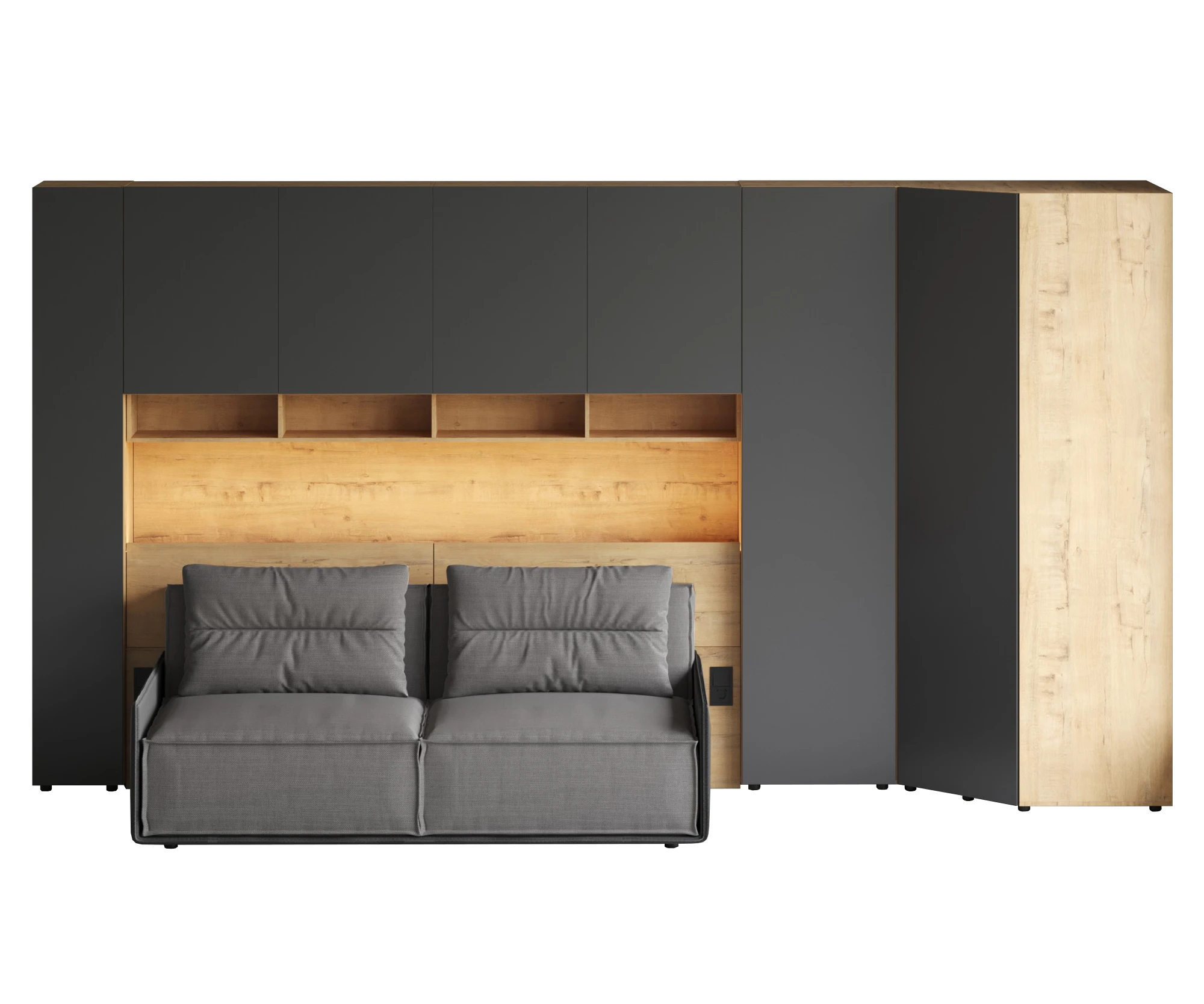 Линейка корпусной мебели, которая закрывает большинство потребностей по хранению и организации вещей. Универсальные и функциональные шкафы, тумбы, стеллажи, столы группируются по функциональны зонам. С их помощью можно обустроить прихожую, гостиную, кабинет, спальню, детскую. В основе дизайна — софт-минимализм с продуманными деталями и материалами. Скрытые механизмы открытия дверей, естественная древесная текстура, большая вместительность, белый цвет делают их исключительно удачными для большинства современных пространств. Гладкие фасады без декора и ручек поддерживают идею отказа от визуального шума, двери открываются по принципу «нажал-открыл». Мебель Modus создает уравновешенный интерьер с выразительными компонентами, настраивающими на ритмичный образ жизни, целеустремленность и чувство свободы от избыточных деталей. Кроватный блок предназначен для использования совместно с кроватью или диваном. Блок имеет два отделения за откидными дверьми и открытую полку над ними. Двери открываются за кромку, с помощью газовых кронштейнов. Кроватный блок оснащен светодиодным светильником, расположенным на открытой верхней полке. Светильник представляет собой алюминиевый профиль с матовым экраном, внутри которого установлена светодиодная лента. С левой и с правой стороны переднего щита блока установлены выключатели светильника и эл. розетки с разъемами USB А и Type C. Блок установлен на регулируемые опоры. Внутренние размеры отделений для хранения: 1160х850х260мм каждое отделение. Максимальная нагрузка на верхнюю полку не должна превышать 20 кг. Панель представляет собой щит из ЛДСП 16 мм. предназначенный для установки над кроватным блоком. Панель навешивается на регулируемые подвесы. Шкаф имеет три регулируемых подвеса для навешивания на стену. Полки имеют возможность перестановки по высоте в трех уровнях. Дверь открывается по принципу «нажал-открыл». Максимальная нагрузка на каждую полку не должна превышать 7 кг. Пенал Modus состоит из корпуса и фасада. Корпус с проходным нижним и верхним щитом установлен на опоры. Опоры регулируемые, пластик черный, круглые. Корпус горизонтальной стенкой разделен на два отделения по высоте. Верхнее отделение оснащено одной съёмной полкой, нижнее – пятью съёмными полками. Полки 6 – съемные, с перестановкой по высоте в 3 положения. Максимальная нагрузка на одну полку не должна превышать 4кг. Фасад представляет собой распашную дверь, которая открывается по принципу «нажал-открыл». Установка двери возможна с открыванием как в левую, так и в правую сторону.