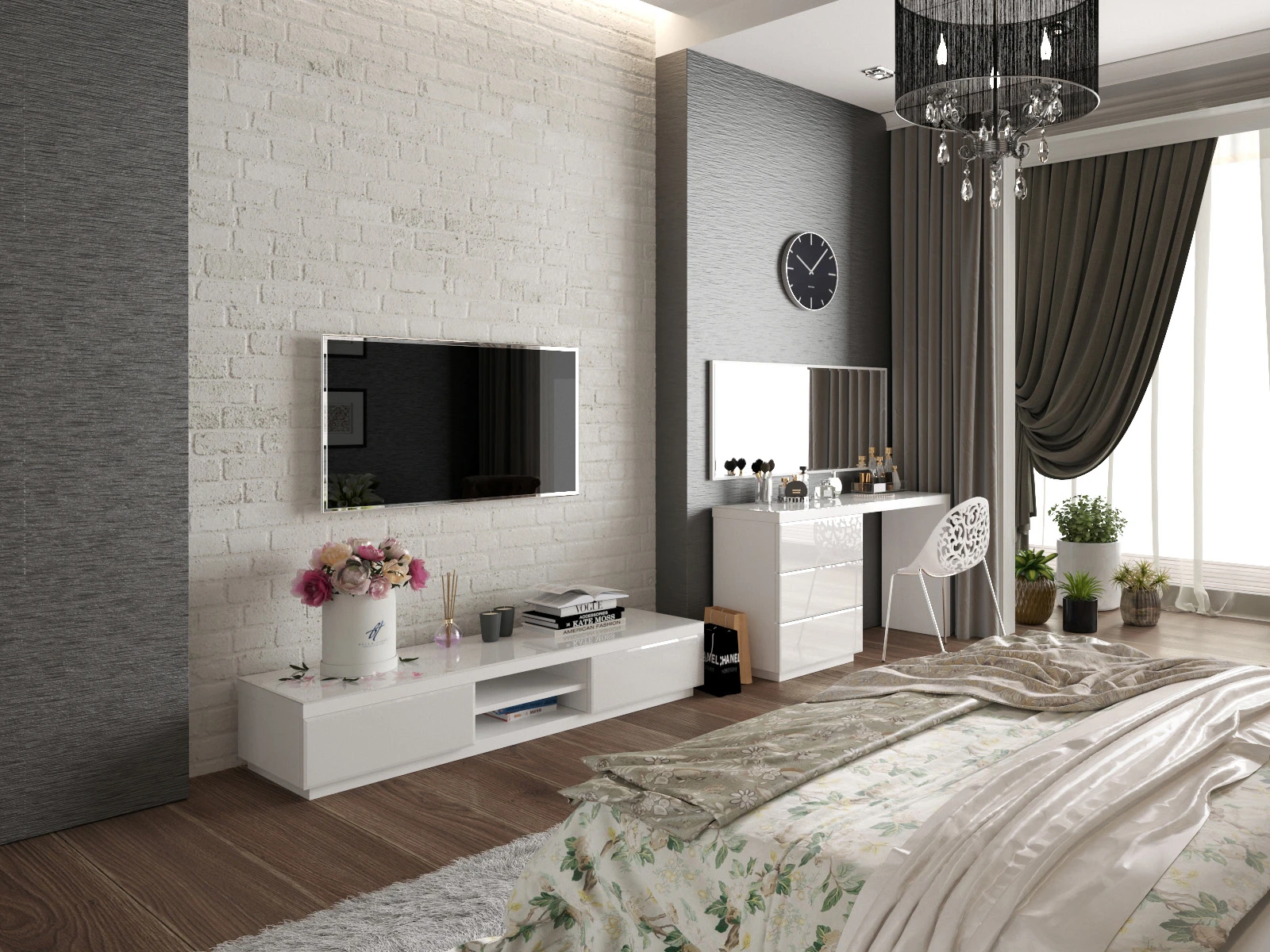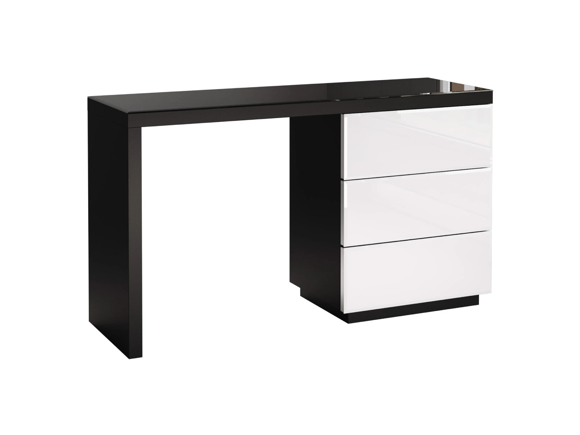 Серия корпусной универсальной мебели с глянцевыми и зеркальными фасадами. Особенностью линейки является прогрессивный актуальный дизайн в минималистичном исполнении. Прямые линии, графичность, сдержанность балансируются отблесками гладких текстур. Отражающие поверхности делают помещение визуально больше, воздушнее, светлее и мягче. Отсутствие ручек избавляет мебель от лишнего визуального шума, позволяя гармонично интегрироваться в любую локацию. Шкафы, комоды, тумбы, серванты, туалетные столики обладают широкими функциональными возможностями и подходят для обустройства спальни, гостиной, апартаментов, отелей, салонов, спа, бьюти-пространств. Плавная и бесшумная эксплуатация происходит за счёт системы Push-to-Open («нажал-открыл»), а также качественной соединительной фурнитуры Hettich, которая отличается долгим сроком службы. Лаконичные изделия помогут организовать хранение одежды, текстиля, канцелярии, косметики, техники и других вещей. В интерьере возьмут на себя роль практичных помощников с эффектным акцентом. Туалетный столик с тремя выдвижными ящиками. Столешница и фасадные стенки ящиков декорированы стеклом. Стол может быть собран с правым или левым расположением тумбы с ящиками. Ящики открываются по принципу «нажал — открыл».