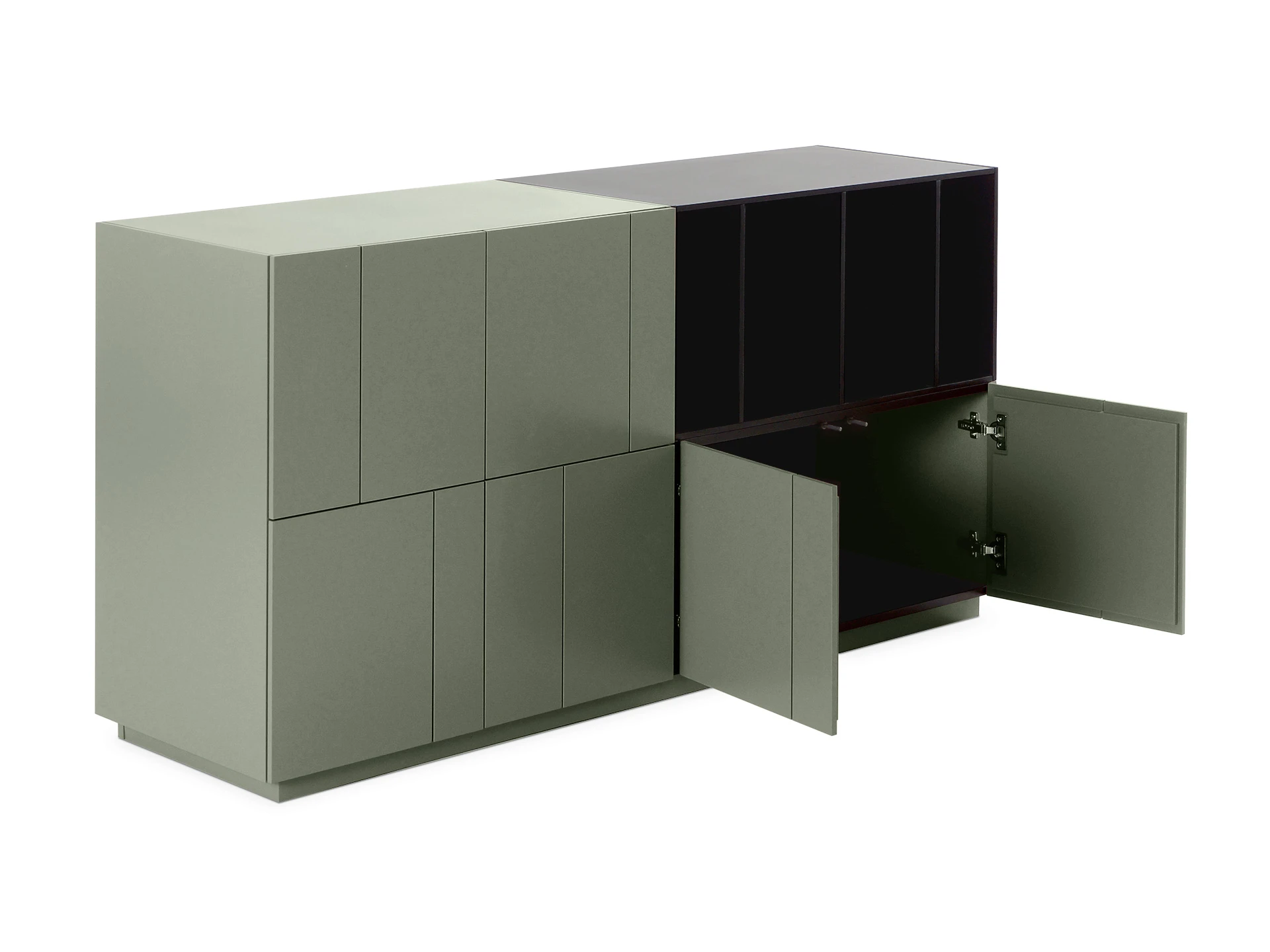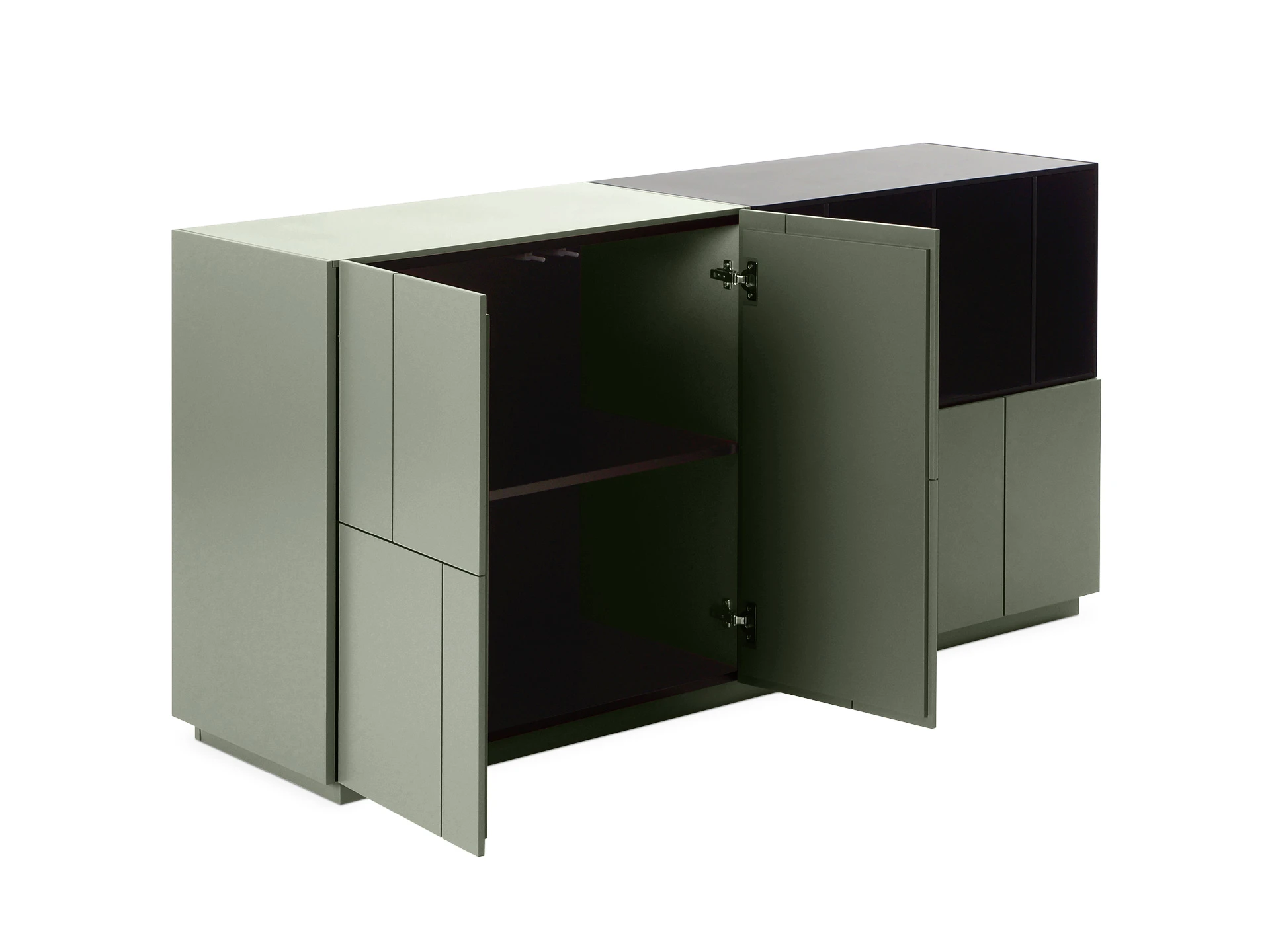 Addy — коллекция сервантов в минималистичной эстетике, но с ярким характером. Когда одна часть хочет быть скрытной. А другая — «нараспашку». Что делать? Комбинировать! С этим сервантом вы грамотно спрячете лишнее и эстетично экспонируете нужное. Настоящий интерьерный тренд. Удобен для хранения книг, канцелярии, техники, косметики, текстиля, декора. Гармонично впишется в современную локацию гостиной, прихожей, спальни, рабочей зоны. Подчеркнёт приём колор-блокинга в интерьере или выполнит роль элемента для визуального зонирования. Контрастное сочетание цветов фасадов сделает пространство интересным и выразительным. Динамичности добавят вертикальные линии, рисующие «ложные» отсеки. Лаконичность моделей подчеркивает скрытая фурнитура. Двери, ящики открываются по принципу «нажал-открыл» плавно и бесшумно. Серванты Addy хороши сами по себе и в качестве дополнения к шкафам, стеллажам. Материал корпуса и фасада: МДФ 16 мм., МДФ 10 мм. Детали окрашены эмалью: черной и в цвет коричневый агат Ral 040 50 20. Двери открываются по принципу «нажал – открыл» с помощью толкателей. Сервант установлен на регулируемые опоры. Задняя стенка выполнена также из окрашенной МДФ. Сервант рекомендуется крепить к стене.