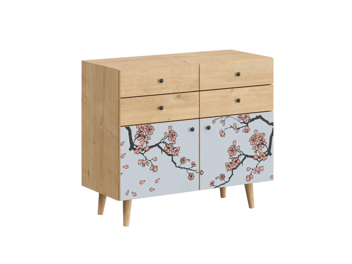 Корпусная мебель, с которой можно составить множество решений для гостиной, детской, кухни, спальни, прихожей, рабочей зоны. Комоды, шкафы, тумбы, столы, витрины, полки, серванты характеризуются универсальностью, многозадачностью, надёжными устойчивыми конструкциями. Имеют выразительный внешний вид, вдохновленный направлением ретро. Смотрятся легко и воздушно за счет деревянных ножек, минимального количества декоративных элементов, спокойных природных оттенков. Их можно использовать в качестве систем хранения, элементов для зонирования, фокусных точек. В дизайне ярко выражена доминанта прямых форм, графичности, лаконичных линий и элегантного исполнения. Что даёт пространству ощущение размеренности, сбалансированности, упорядоченности. Подходят интерьерам как с нейтральной базой, так и локациям с интенсивными цветовыми блоками. Индивидуальности добавят модели с оригинальными паттернами на фасадах. Предметы коллекции Frida гармонично впишутся в эклектичные и стилизованные интерьеры. Ручки входят в стоимость изделия. Высота опор 160 мм. Изображение, нанесенное на фасады, устойчиво к выцветанию, истиранию и влаге. Однако длительное воздействие воды, различных растворителей, спиртосодержащих жидкостей и высоких температур, увеличивают риск повреждения целостности покрытия. Поэтому при использовании необходимо соблюдать ряд правил: 1. Протирайте поверхность с рисунком влажной (но не мокрой) тканью. 2. Используйте мягкие ткани, например, салфетки для стекла или зеркал. 3. Не используйте для обработки поверхности с нанесенным на нее рисунком чистящие порошки и средства, в состав которых входят ацетон, растворитель или спирт. 4. Не используйте металлические губки и щетки с жесткой щетиной. 5. Избегайте ударов, падения, царапания, трения изделий с фотопечатью.