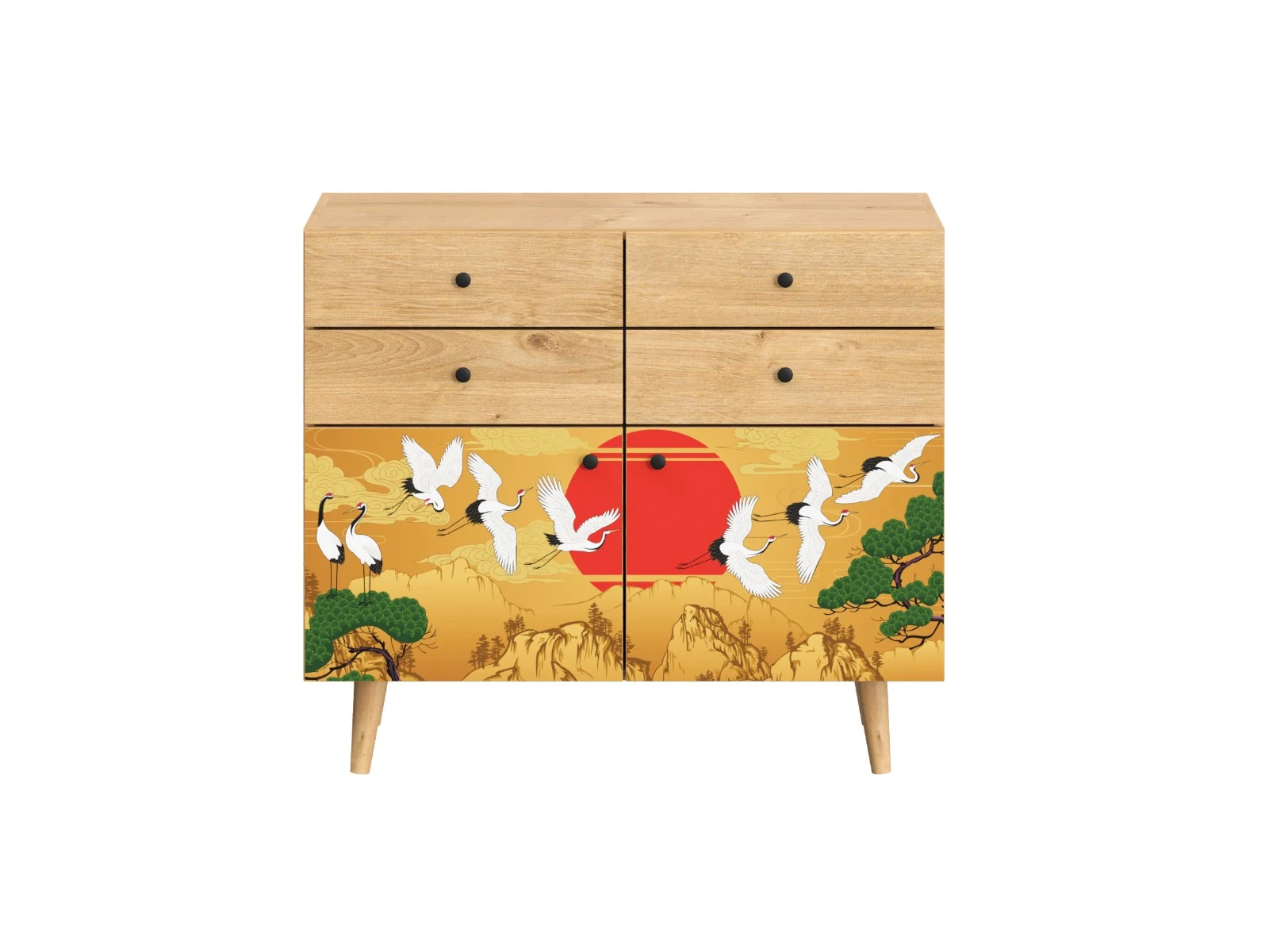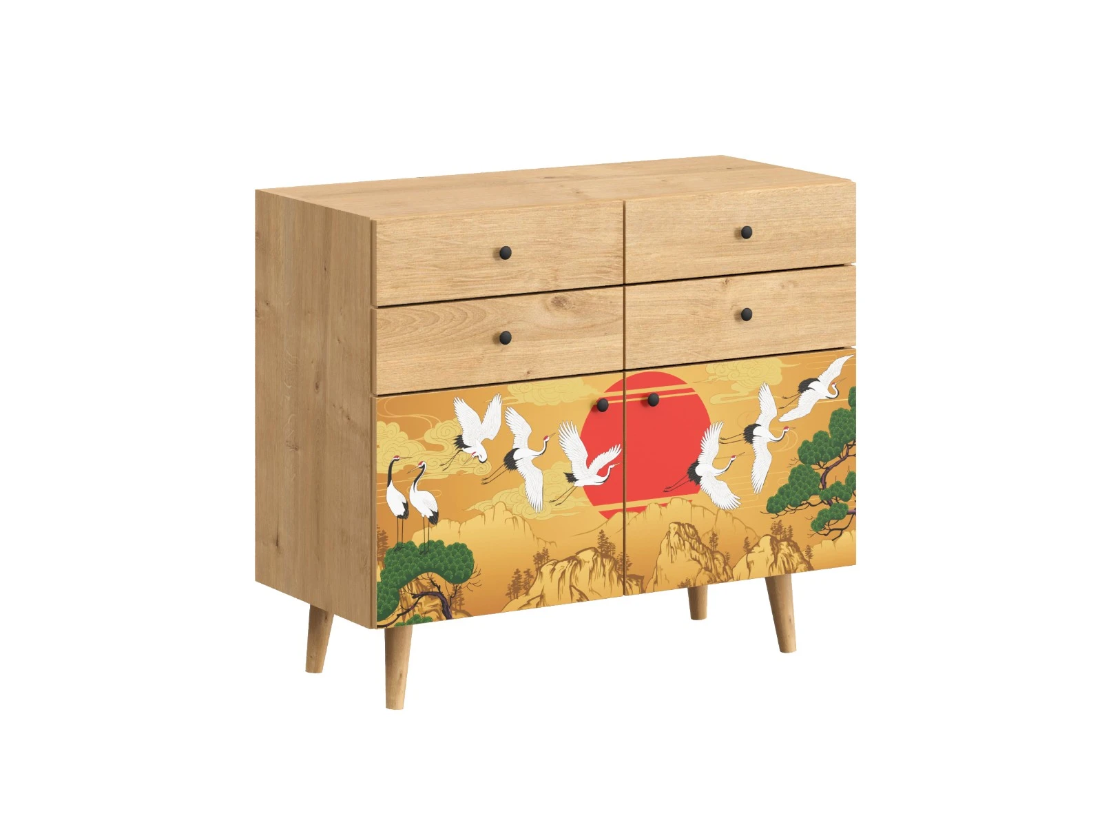 Корпусная мебель, с которой можно составить множество решений для гостиной, детской, кухни, спальни, прихожей, рабочей зоны. Комоды, шкафы, тумбы, столы, витрины, полки, серванты характеризуются универсальностью, многозадачностью, надёжными устойчивыми конструкциями. Имеют выразительный внешний вид, вдохновленный направлением ретро. Смотрятся легко и воздушно за счет деревянных ножек, минимального количества декоративных элементов, спокойных природных оттенков. Их можно использовать в качестве систем хранения, элементов для зонирования, фокусных точек. В дизайне ярко выражена доминанта прямых форм, графичности, лаконичных линий и элегантного исполнения. Что даёт пространству ощущение размеренности, сбалансированности, упорядоченности. Подходят интерьерам как с нейтральной базой, так и локациям с интенсивными цветовыми блоками. Индивидуальности добавят модели с оригинальными паттернами на фасадах. Предметы коллекции Frida гармонично впишутся в эклектичные и стилизованные интерьеры. Ручки входят в стоимость изделия. Высота опор 160 мм. Изображение, нанесенное на фасады, устойчиво к выцветанию, истиранию и влаге. Однако длительное воздействие воды, различных растворителей, спиртосодержащих жидкостей и высоких температур, увеличивают риск повреждения целостности покрытия. Поэтому при использовании необходимо соблюдать ряд правил: 1. Протирайте поверхность с рисунком влажной (но не мокрой) тканью. 2. Используйте мягкие ткани, например, салфетки для стекла или зеркал. 3. Не используйте для обработки поверхности с нанесенным на нее рисунком чистящие порошки и средства, в состав которых входят ацетон, растворитель или спирт. 4. Не используйте металлические губки и щетки с жесткой щетиной. 5. Избегайте ударов, падения, царапания, трения изделий с фотопечатью.