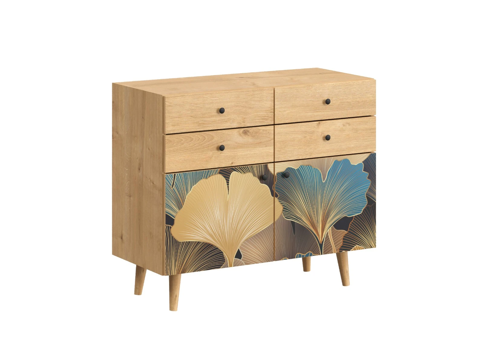Корпусная мебель, с которой можно составить множество решений для гостиной, детской, кухни, спальни, прихожей, рабочей зоны. Комоды, шкафы, тумбы, столы, витрины, полки, серванты характеризуются универсальностью, многозадачностью, надёжными устойчивыми конструкциями. Имеют выразительный внешний вид, вдохновленный направлением ретро. Смотрятся легко и воздушно за счет деревянных ножек, минимального количества декоративных элементов, спокойных природных оттенков. Их можно использовать в качестве систем хранения, элементов для зонирования, фокусных точек. В дизайне ярко выражена доминанта прямых форм, графичности, лаконичных линий и элегантного исполнения. Что даёт пространству ощущение размеренности, сбалансированности, упорядоченности. Подходят интерьерам как с нейтральной базой, так и локациям с интенсивными цветовыми блоками. Индивидуальности добавят модели с оригинальными паттернами на фасадах. Предметы коллекции Frida гармонично впишутся в эклектичные и стилизованные интерьеры. Ручки входят в стоимость изделия. Высота опор 160 мм. Изображение, нанесенное на фасады, устойчиво к выцветанию, истиранию и влаге. Однако длительное воздействие воды, различных растворителей, спиртосодержащих жидкостей и высоких температур, увеличивают риск повреждения целостности покрытия. Поэтому при использовании необходимо соблюдать ряд правил: 1. Протирайте поверхность с рисунком влажной (но не мокрой) тканью. 2. Используйте мягкие ткани, например, салфетки для стекла или зеркал. 3. Не используйте для обработки поверхности с нанесенным на нее рисунком чистящие порошки и средства, в состав которых входят ацетон, растворитель или спирт. 4. Не используйте металлические губки и щетки с жесткой щетиной. 5. Избегайте ударов, падения, царапания, трения изделий с фотопечатью.