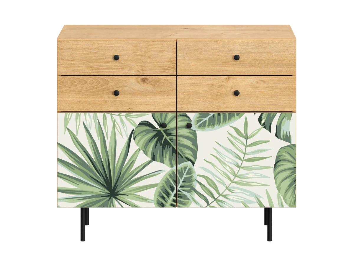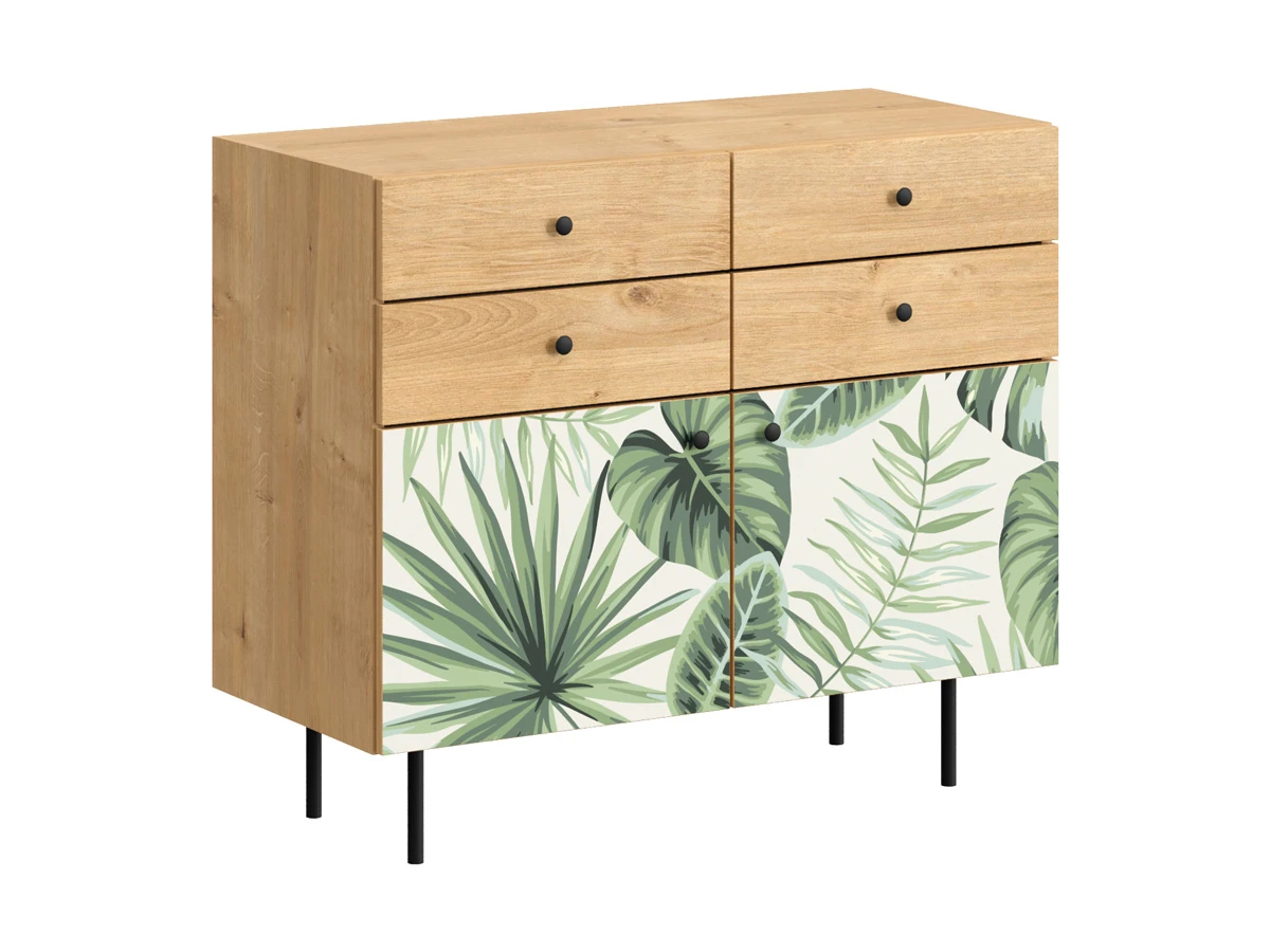 Корпусная мебель, с которой можно составить множество решений для гостиной, детской, кухни, спальни, прихожей, рабочей зоны. Комоды, шкафы, тумбы, столы, витрины, полки, серванты характеризуются универсальностью, многозадачностью, надёжными устойчивыми конструкциями. Имеют выразительный внешний вид, вдохновленный направлением ретро. Смотрятся легко и воздушно за счет деревянных ножек, минимального количества декоративных элементов, спокойных природных оттенков. Их можно использовать в качестве систем хранения, элементов для зонирования, фокусных точек. В дизайне ярко выражена доминанта прямых форм, графичности, лаконичных линий и элегантного исполнения. Что даёт пространству ощущение размеренности, сбалансированности, упорядоченности. Подходят интерьерам как с нейтральной базой, так и локациям с интенсивными цветовыми блоками. Индивидуальности добавят модели с оригинальными паттернами на фасадах. Предметы коллекции Frida гармонично впишутся в эклектичные и стилизованные интерьеры. Ручки входят в стоимость изделия. Высота опор 160 мм. Изображение, нанесенное на фасады, устойчиво к выцветанию, истиранию и влаге. Однако длительное воздействие воды, различных растворителей, спиртосодержащих жидкостей и высоких температур, увеличивают риск повреждения целостности покрытия. Поэтому при использовании необходимо соблюдать ряд правил: 1. Протирайте поверхность с рисунком влажной (но не мокрой) тканью. 2. Используйте мягкие ткани, например, салфетки для стекла или зеркал. 3. Не используйте для обработки поверхности с нанесенным на нее рисунком чистящие порошки и средства, в состав которых входят ацетон, растворитель или спирт. 4. Не используйте металлические губки и щетки с жесткой щетиной. 5. Избегайте ударов, падения, царапания, трения изделий с фотопечатью.