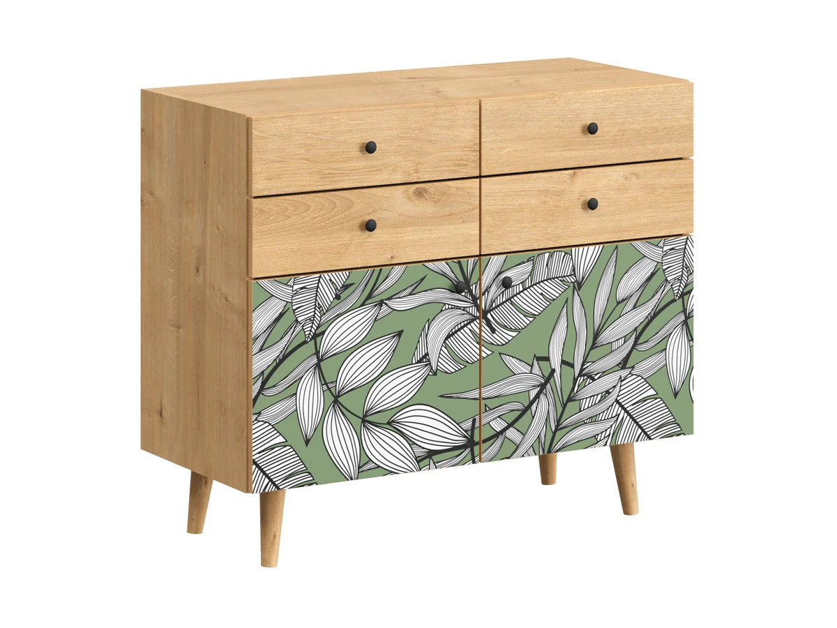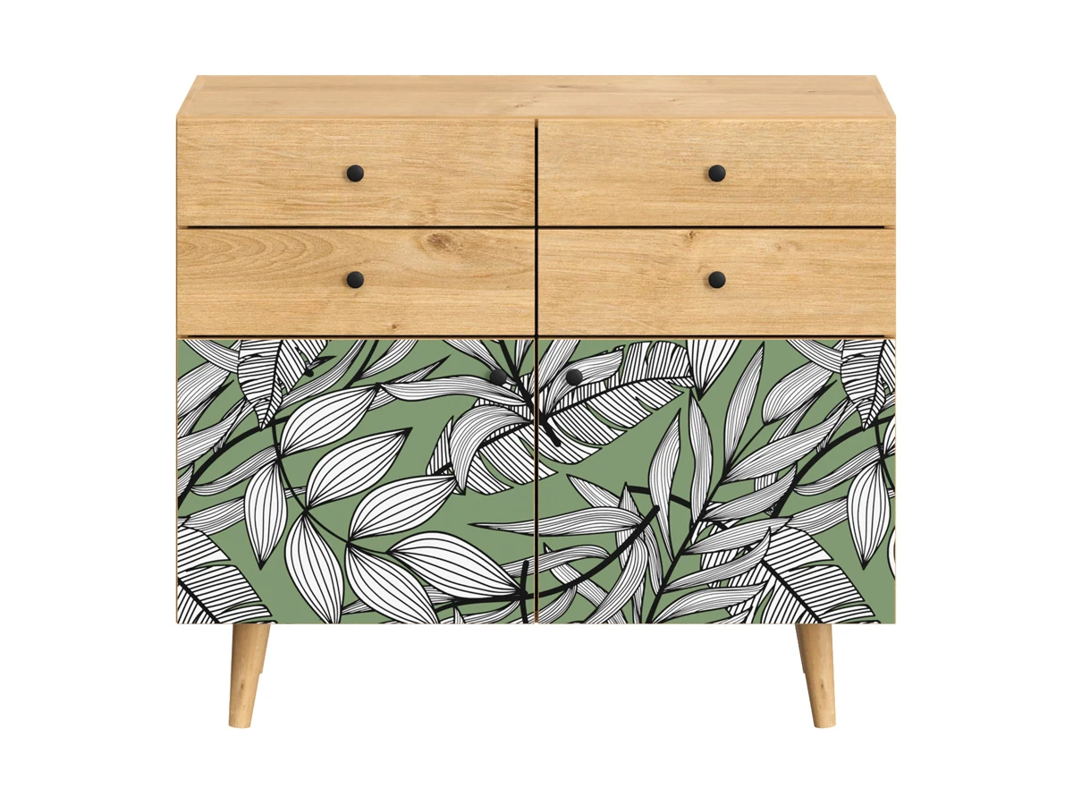 Корпусная мебель, с которой можно составить множество решений для гостиной, детской, кухни, спальни, прихожей, рабочей зоны. Комоды, шкафы, тумбы, столы, витрины, полки, серванты характеризуются универсальностью, многозадачностью, надёжными устойчивыми конструкциями. Имеют выразительный внешний вид, вдохновленный направлением ретро. Смотрятся легко и воздушно за счет деревянных ножек, минимального количества декоративных элементов, спокойных природных оттенков. Их можно использовать в качестве систем хранения, элементов для зонирования, фокусных точек. В дизайне ярко выражена доминанта прямых форм, графичности, лаконичных линий и элегантного исполнения. Что даёт пространству ощущение размеренности, сбалансированности, упорядоченности. Подходят интерьерам как с нейтральной базой, так и локациям с интенсивными цветовыми блоками. Индивидуальности добавят модели с оригинальными паттернами на фасадах. Предметы коллекции Frida гармонично впишутся в эклектичные и стилизованные интерьеры. Ручки входят в стоимость изделия. Высота опор 160 мм. Изображение, нанесенное на фасады, устойчиво к выцветанию, истиранию и влаге. Однако длительное воздействие воды, различных растворителей, спиртосодержащих жидкостей и высоких температур, увеличивают риск повреждения целостности покрытия. Поэтому при использовании необходимо соблюдать ряд правил: 1. Протирайте поверхность с рисунком влажной (но не мокрой) тканью. 2. Используйте мягкие ткани, например, салфетки для стекла или зеркал. 3. Не используйте для обработки поверхности с нанесенным на нее рисунком чистящие порошки и средства, в состав которых входят ацетон, растворитель или спирт. 4. Не используйте металлические губки и щетки с жесткой щетиной. 5. Избегайте ударов, падения, царапания, трения изделий с фотопечатью.