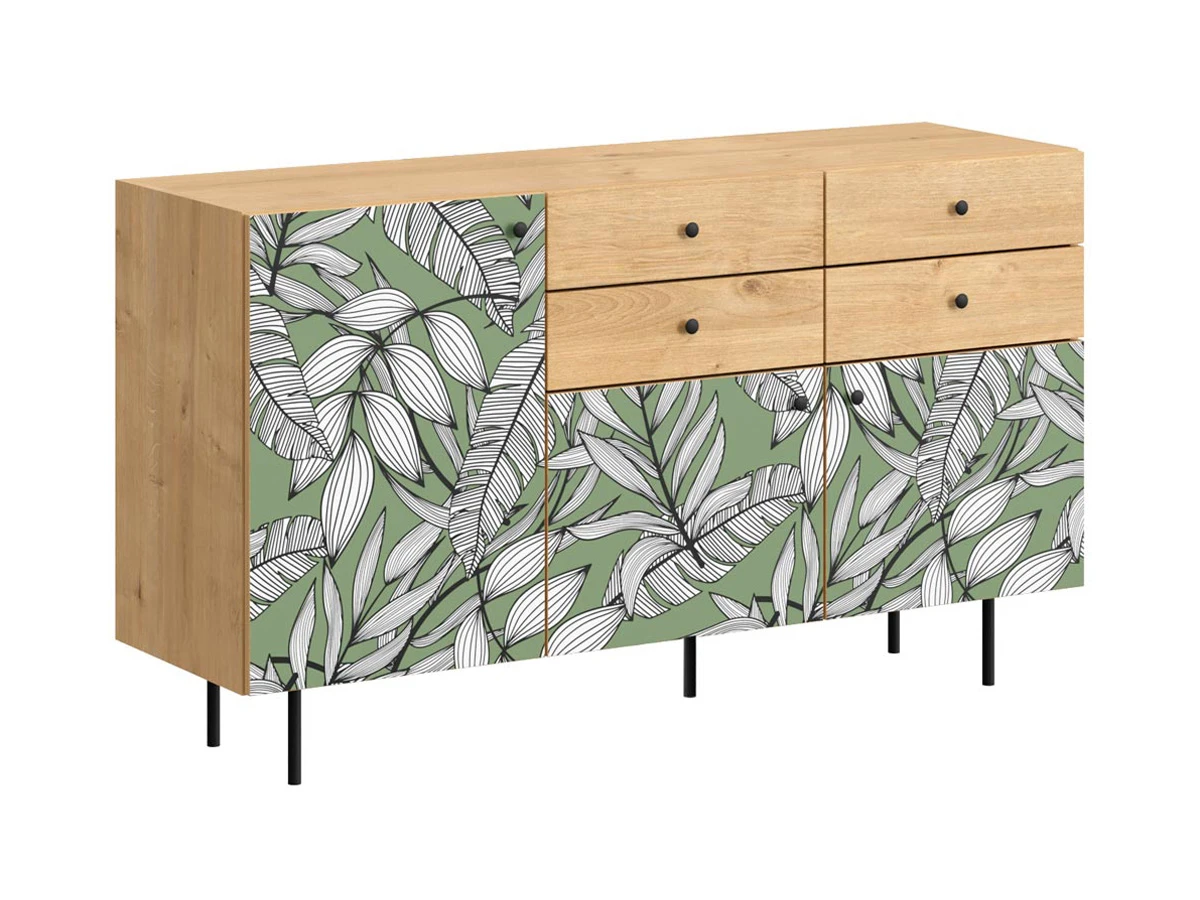 Корпусная мебель, с которой можно составить множество решений для гостиной, детской, кухни, спальни, прихожей, рабочей зоны. Комоды, шкафы, тумбы, столы, витрины, полки, серванты характеризуются универсальностью, многозадачностью, надёжными устойчивыми конструкциями. Имеют выразительный внешний вид, вдохновленный направлением ретро. Смотрятся легко и воздушно за счет деревянных ножек, минимального количества декоративных элементов, спокойных природных оттенков. Их можно использовать в качестве систем хранения, элементов для зонирования, фокусных точек. В дизайне ярко выражена доминанта прямых форм, графичности, лаконичных линий и элегантного исполнения. Что даёт пространству ощущение размеренности, сбалансированности, упорядоченности. Подходят интерьерам как с нейтральной базой, так и локациям с интенсивными цветовыми блоками. Индивидуальности добавят модели с оригинальными паттернами на фасадах. Предметы коллекции Frida гармонично впишутся в эклектичные и стилизованные интерьеры. Ручки входят в стоимость изделия. Высота опор 160 мм. Изображение, нанесенное на фасады, устойчиво к выцветанию, истиранию и влаге. Однако длительное воздействие воды, различных растворителей, спиртосодержащих жидкостей и высоких температур, увеличивают риск повреждения целостности покрытия. Поэтому при использовании необходимо соблюдать ряд правил: 1. Протирайте поверхность с рисунком влажной (но не мокрой) тканью. 2. Используйте мягкие ткани, например, салфетки для стекла или зеркал. 3. Не используйте для обработки поверхности с нанесенным на нее рисунком чистящие порошки и средства, в состав которых входят ацетон, растворитель или спирт. 4. Не используйте металлические губки и щетки с жесткой щетиной. 5. Избегайте ударов, падения, царапания, трения изделий с фотопечатью.