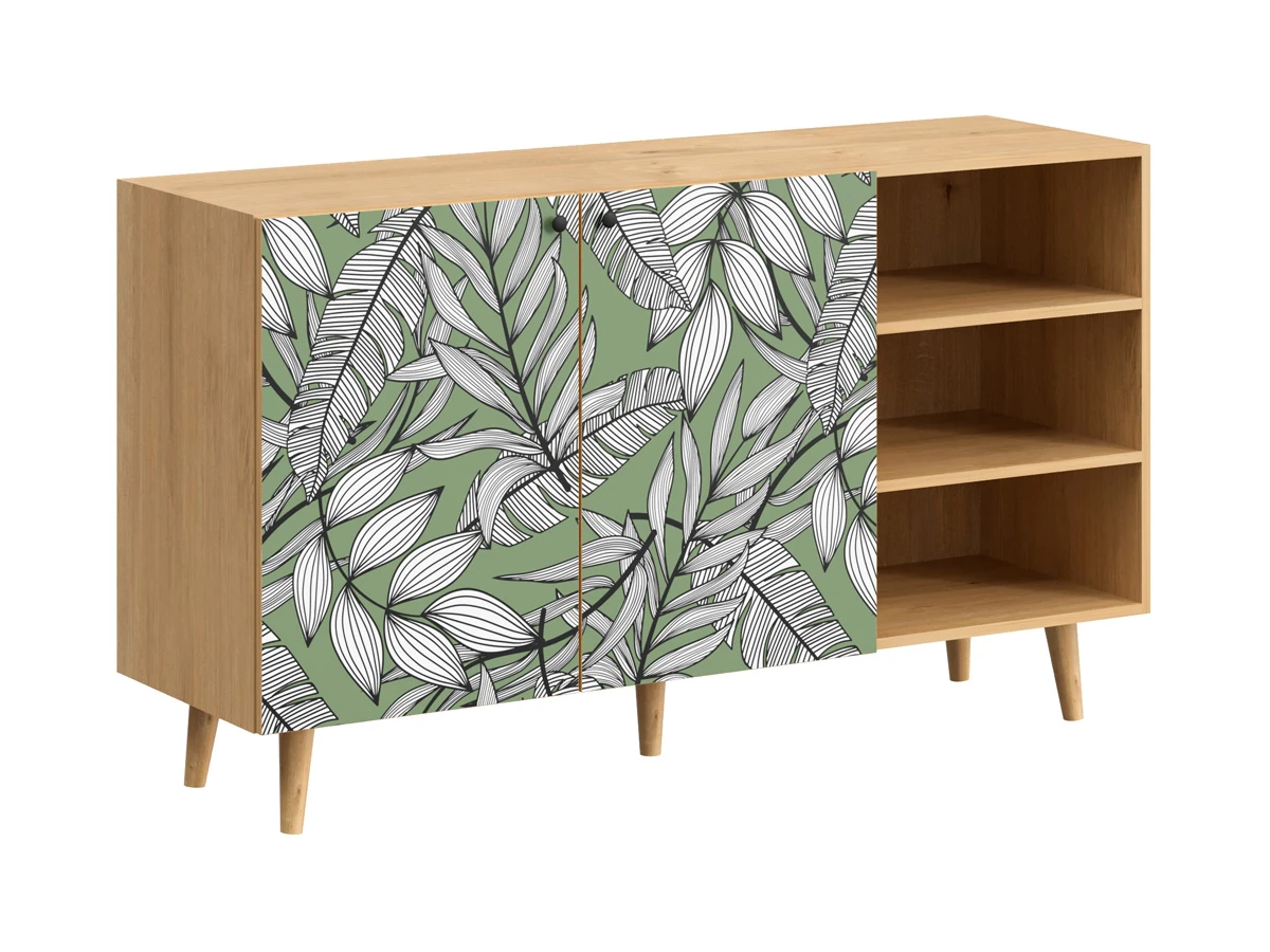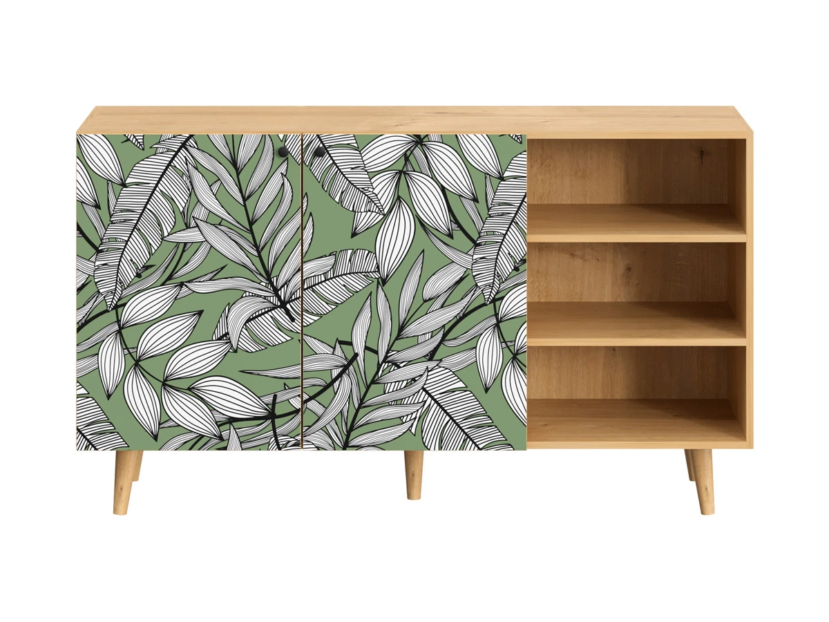 Корпусная мебель, с которой можно составить множество решений для гостиной, детской, кухни, спальни, прихожей, рабочей зоны. Комоды, шкафы, тумбы, столы, витрины, полки, серванты характеризуются универсальностью, многозадачностью, надёжными устойчивыми конструкциями. Имеют выразительный внешний вид, вдохновленный направлением ретро. Смотрятся легко и воздушно за счет деревянных ножек, минимального количества декоративных элементов, спокойных природных оттенков. Их можно использовать в качестве систем хранения, элементов для зонирования, фокусных точек. В дизайне ярко выражена доминанта прямых форм, графичности, лаконичных линий и элегантного исполнения. Что даёт пространству ощущение размеренности, сбалансированности, упорядоченности. Подходят интерьерам как с нейтральной базой, так и локациям с интенсивными цветовыми блоками. Индивидуальности добавят модели с оригинальными паттернами на фасадах. Предметы коллекции Frida гармонично впишутся в эклектичные и стилизованные интерьеры. Ручки входят в стоимость изделия. Высота опор 160 мм. Изображение, нанесенное на фасады, устойчиво к выцветанию, истиранию и влаге. Однако длительное воздействие воды, различных растворителей, спиртосодержащих жидкостей и высоких температур, увеличивают риск повреждения целостности покрытия. Поэтому при использовании необходимо соблюдать ряд правил: 1. Протирайте поверхность с рисунком влажной (но не мокрой) тканью. 2. Используйте мягкие ткани, например, салфетки для стекла или зеркал. 3. Не используйте для обработки поверхности с нанесенным на нее рисунком чистящие порошки и средства, в состав которых входят ацетон, растворитель или спирт. 4. Не используйте металлические губки и щетки с жесткой щетиной. 5. Избегайте ударов, падения, царапания, трения изделий с фотопечатью.