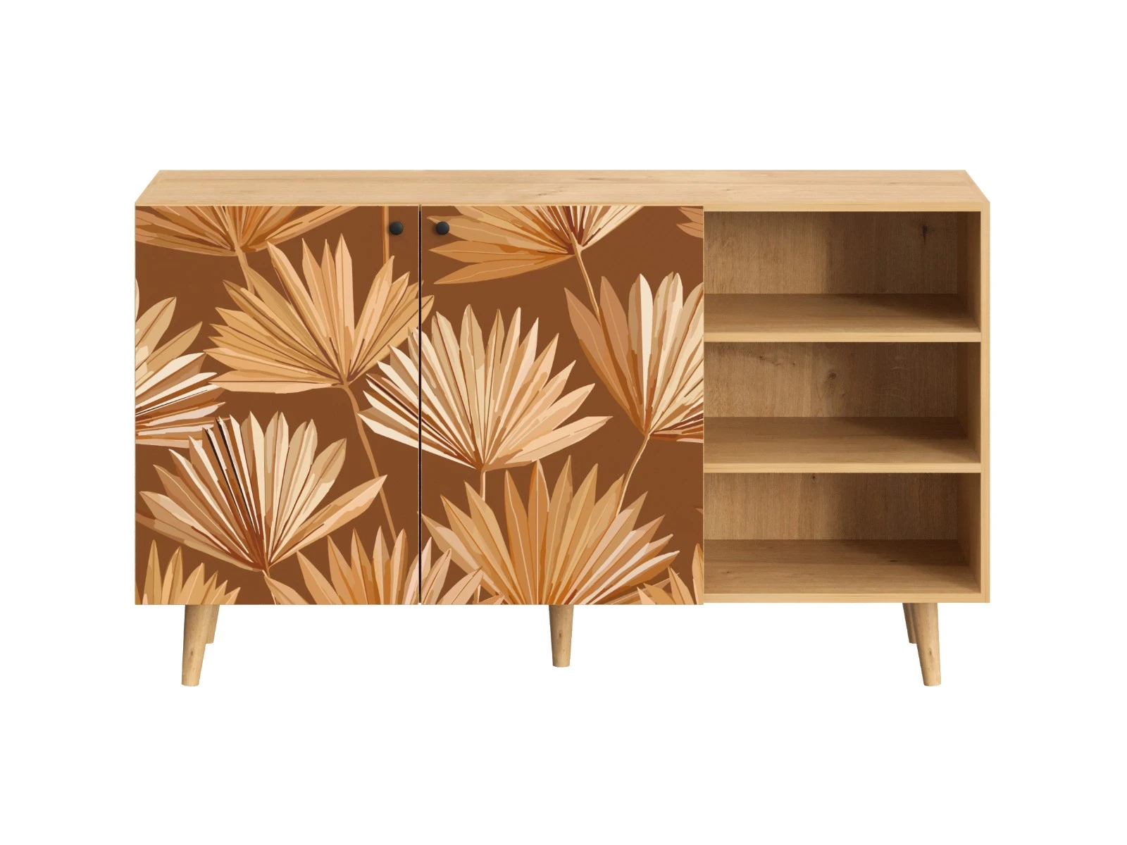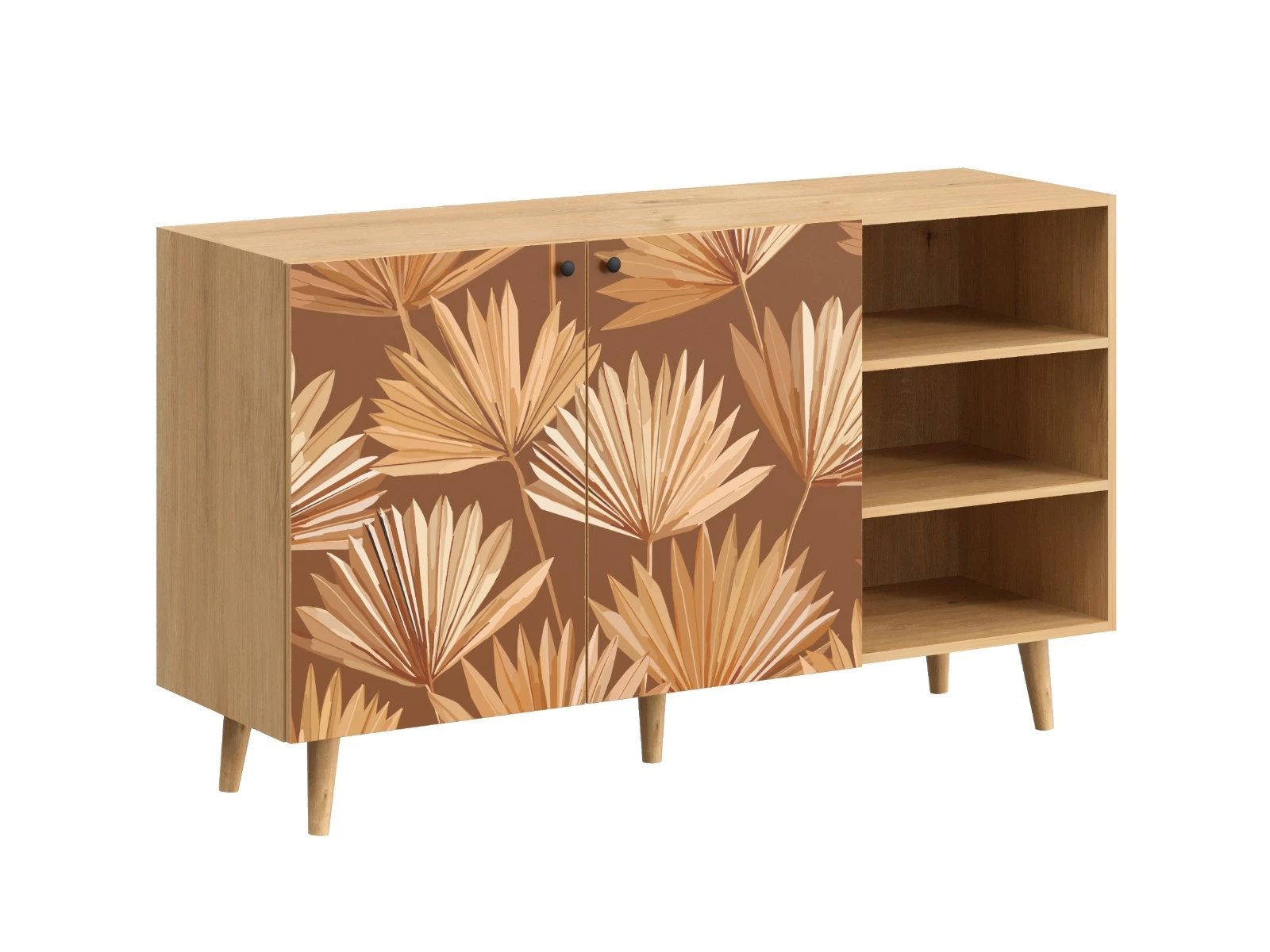 Корпусная мебель, с которой можно составить множество решений для гостиной, детской, кухни, спальни, прихожей, рабочей зоны. Комоды, шкафы, тумбы, столы, витрины, полки, серванты характеризуются универсальностью, многозадачностью, надёжными устойчивыми конструкциями. Имеют выразительный внешний вид, вдохновленный направлением ретро. Смотрятся легко и воздушно за счет деревянных ножек, минимального количества декоративных элементов, спокойных природных оттенков. Их можно использовать в качестве систем хранения, элементов для зонирования, фокусных точек. В дизайне ярко выражена доминанта прямых форм, графичности, лаконичных линий и элегантного исполнения. Что даёт пространству ощущение размеренности, сбалансированности, упорядоченности. Подходят интерьерам как с нейтральной базой, так и локациям с интенсивными цветовыми блоками. Индивидуальности добавят модели с оригинальными паттернами на фасадах. Предметы коллекции Frida гармонично впишутся в эклектичные и стилизованные интерьеры. Ручки входят в стоимость изделия. Высота опор 160 мм. Изображение, нанесенное на фасады, устойчиво к выцветанию, истиранию и влаге. Однако длительное воздействие воды, различных растворителей, спиртосодержащих жидкостей и высоких температур, увеличивают риск повреждения целостности покрытия. Поэтому при использовании необходимо соблюдать ряд правил: 1. Протирайте поверхность с рисунком влажной (но не мокрой) тканью. 2. Используйте мягкие ткани, например, салфетки для стекла или зеркал. 3. Не используйте для обработки поверхности с нанесенным на нее рисунком чистящие порошки и средства, в состав которых входят ацетон, растворитель или спирт. 4. Не используйте металлические губки и щетки с жесткой щетиной. 5. Избегайте ударов, падения, царапания, трения изделий с фотопечатью.