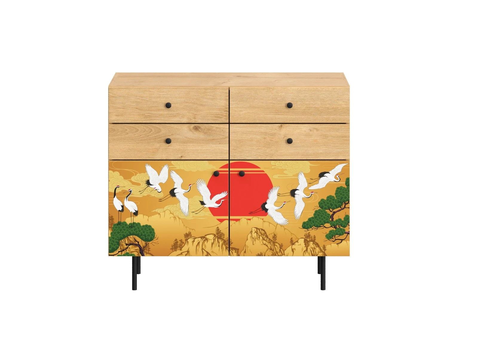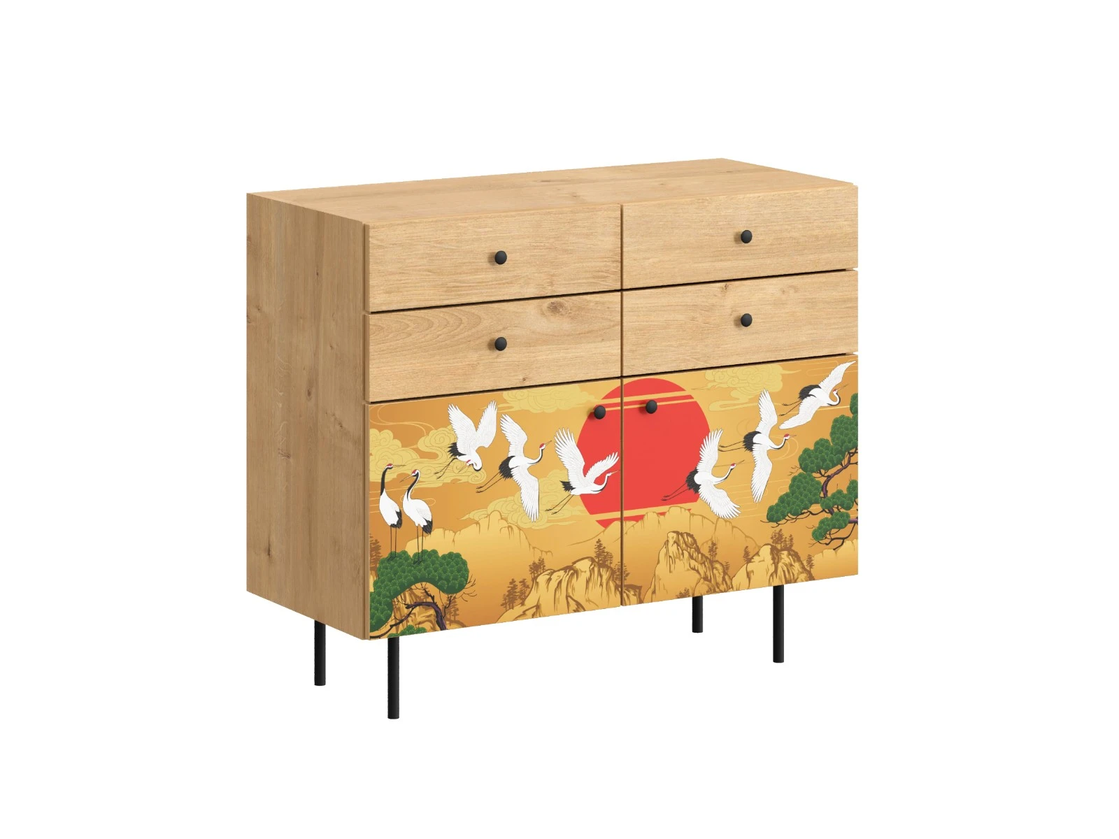 Корпусная мебель, с которой можно составить множество решений для гостиной, детской, кухни, спальни, прихожей, рабочей зоны. Комоды, шкафы, тумбы, столы, витрины, полки, серванты характеризуются универсальностью, многозадачностью, надёжными устойчивыми конструкциями. Имеют выразительный внешний вид, вдохновленный направлением ретро. Смотрятся легко и воздушно за счет деревянных ножек, минимального количества декоративных элементов, спокойных природных оттенков. Их можно использовать в качестве систем хранения, элементов для зонирования, фокусных точек. В дизайне ярко выражена доминанта прямых форм, графичности, лаконичных линий и элегантного исполнения. Что даёт пространству ощущение размеренности, сбалансированности, упорядоченности. Подходят интерьерам как с нейтральной базой, так и локациям с интенсивными цветовыми блоками. Индивидуальности добавят модели с оригинальными паттернами на фасадах. Предметы коллекции Frida гармонично впишутся в эклектичные и стилизованные интерьеры. Ручки входят в стоимость изделия. Высота опор 160 мм. Изображение, нанесенное на фасады, устойчиво к выцветанию, истиранию и влаге. Однако длительное воздействие воды, различных растворителей, спиртосодержащих жидкостей и высоких температур, увеличивают риск повреждения целостности покрытия. Поэтому при использовании необходимо соблюдать ряд правил: 1. Протирайте поверхность с рисунком влажной (но не мокрой) тканью. 2. Используйте мягкие ткани, например, салфетки для стекла или зеркал. 3. Не используйте для обработки поверхности с нанесенным на нее рисунком чистящие порошки и средства, в состав которых входят ацетон, растворитель или спирт. 4. Не используйте металлические губки и щетки с жесткой щетиной. 5. Избегайте ударов, падения, царапания, трения изделий с фотопечатью.