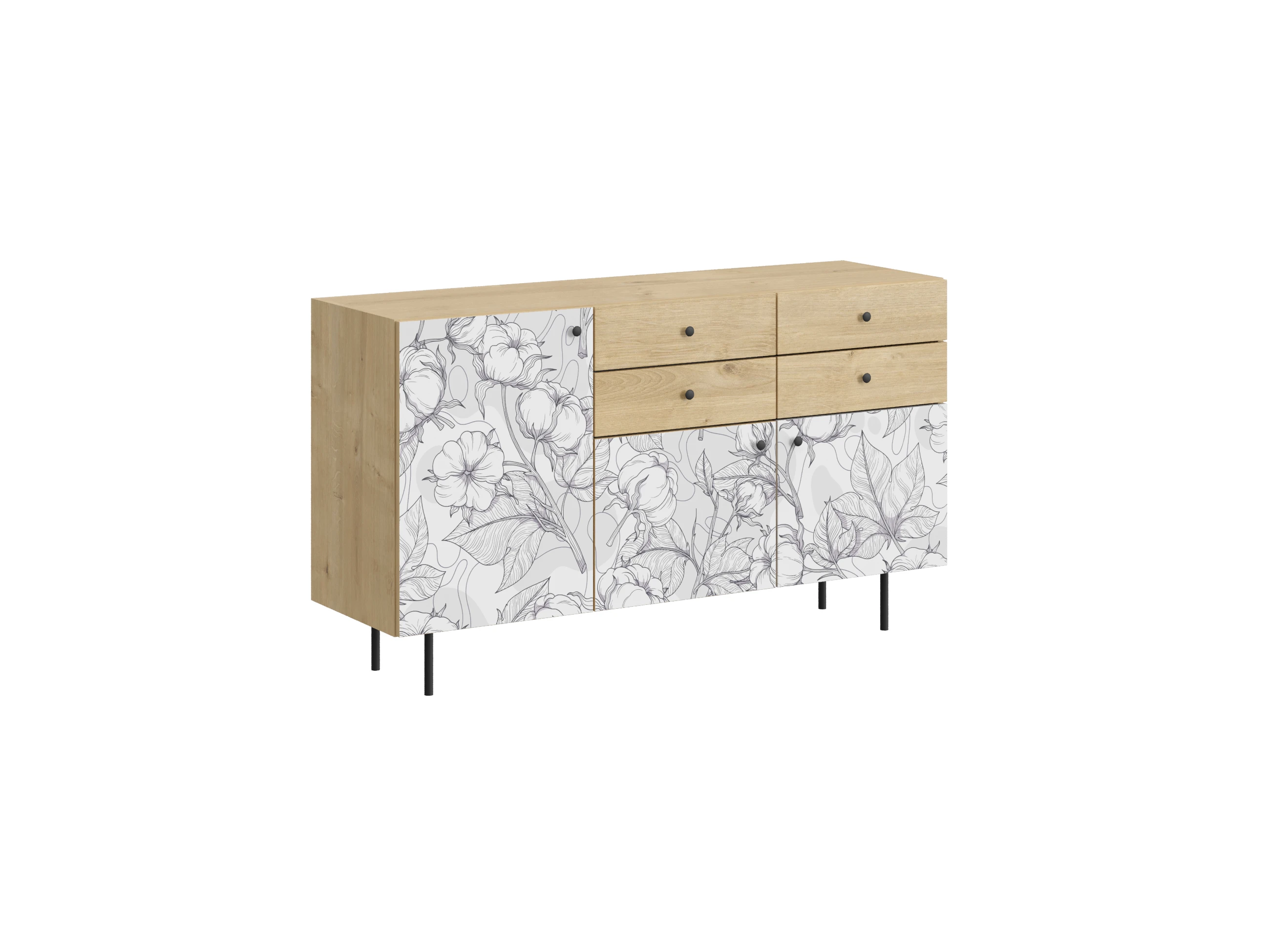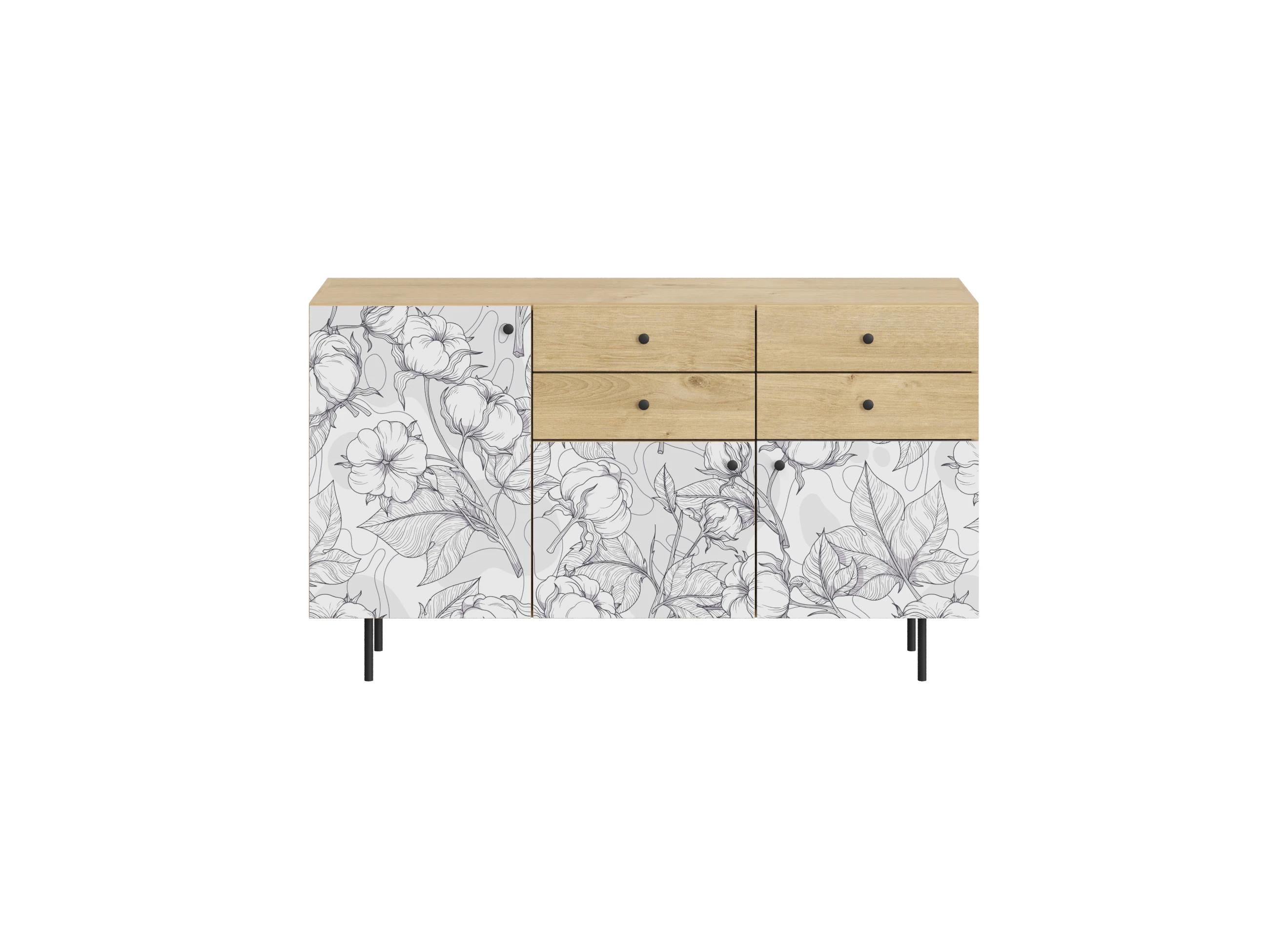 Корпусная мебель, с которой можно составить множество решений для гостиной, детской, кухни, спальни, прихожей, рабочей зоны. Комоды, шкафы, тумбы, столы, витрины, полки, серванты характеризуются универсальностью, многозадачностью, надёжными устойчивыми конструкциями. Имеют выразительный внешний вид, вдохновленный направлением ретро. Смотрятся легко и воздушно за счет деревянных ножек, минимального количества декоративных элементов, спокойных природных оттенков. Их можно использовать в качестве систем хранения, элементов для зонирования, фокусных точек. В дизайне ярко выражена доминанта прямых форм, графичности, лаконичных линий и элегантного исполнения. Что даёт пространству ощущение размеренности, сбалансированности, упорядоченности. Подходят интерьерам как с нейтральной базой, так и локациям с интенсивными цветовыми блоками. Индивидуальности добавят модели с оригинальными паттернами на фасадах. Предметы коллекции Frida гармонично впишутся в эклектичные и стилизованные интерьеры. Ручки входят в стоимость изделия. Высота опор 160 мм. Изображение, нанесенное на фасады, устойчиво к выцветанию, истиранию и влаге. Однако длительное воздействие воды, различных растворителей, спиртосодержащих жидкостей и высоких температур, увеличивают риск повреждения целостности покрытия. Поэтому при использовании необходимо соблюдать ряд правил: 1. Протирайте поверхность с рисунком влажной (но не мокрой) тканью. 2. Используйте мягкие ткани, например, салфетки для стекла или зеркал. 3. Не используйте для обработки поверхности с нанесенным на нее рисунком чистящие порошки и средства, в состав которых входят ацетон, растворитель или спирт. 4. Не используйте металлические губки и щетки с жесткой щетиной. 5. Избегайте ударов, падения, царапания, трения изделий с фотопечатью.