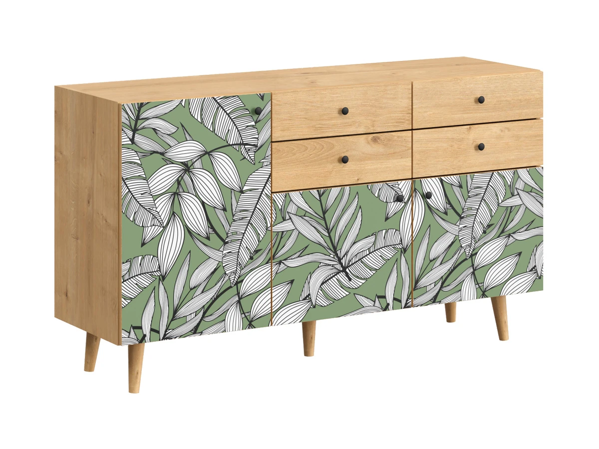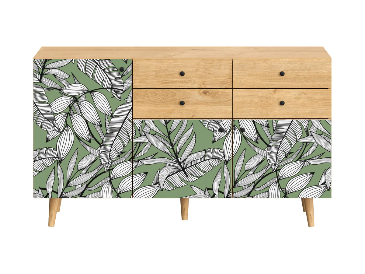 Корпусная мебель, с которой можно составить множество решений для гостиной, детской, кухни, спальни, прихожей, рабочей зоны. Комоды, шкафы, тумбы, столы, витрины, полки, серванты характеризуются универсальностью, многозадачностью, надёжными устойчивыми конструкциями. Имеют выразительный внешний вид, вдохновленный направлением ретро. Смотрятся легко и воздушно за счет деревянных ножек, минимального количества декоративных элементов, спокойных природных оттенков. Их можно использовать в качестве систем хранения, элементов для зонирования, фокусных точек. В дизайне ярко выражена доминанта прямых форм, графичности, лаконичных линий и элегантного исполнения. Что даёт пространству ощущение размеренности, сбалансированности, упорядоченности. Подходят интерьерам как с нейтральной базой, так и локациям с интенсивными цветовыми блоками. Индивидуальности добавят модели с оригинальными паттернами на фасадах. Предметы коллекции Frida гармонично впишутся в эклектичные и стилизованные интерьеры. Ручки входят в стоимость изделия. Высота опор 160 мм. Изображение, нанесенное на фасады, устойчиво к выцветанию, истиранию и влаге. Однако длительное воздействие воды, различных растворителей, спиртосодержащих жидкостей и высоких температур, увеличивают риск повреждения целостности покрытия. Поэтому при использовании необходимо соблюдать ряд правил: 1. Протирайте поверхность с рисунком влажной (но не мокрой) тканью. 2. Используйте мягкие ткани, например, салфетки для стекла или зеркал. 3. Не используйте для обработки поверхности с нанесенным на нее рисунком чистящие порошки и средства, в состав которых входят ацетон, растворитель или спирт. 4. Не используйте металлические губки и щетки с жесткой щетиной. 5. Избегайте ударов, падения, царапания, трения изделий с фотопечатью.