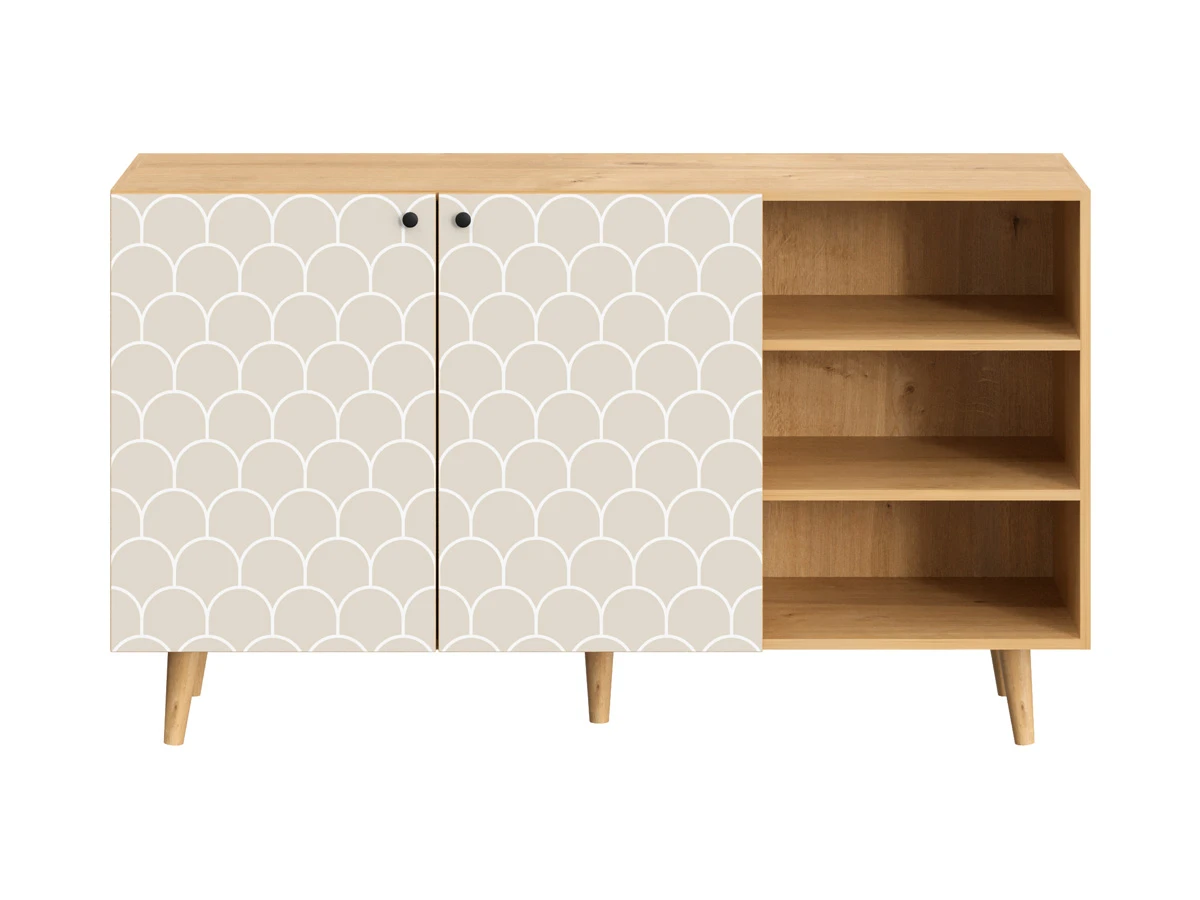 Корпусная мебель, с которой можно составить множество решений для гостиной, детской, кухни, спальни, прихожей, рабочей зоны. Комоды, шкафы, тумбы, столы, витрины, полки, серванты характеризуются универсальностью, многозадачностью, надёжными устойчивыми конструкциями. Имеют выразительный внешний вид, вдохновленный направлением ретро. Смотрятся легко и воздушно за счет деревянных ножек, минимального количества декоративных элементов, спокойных природных оттенков. Их можно использовать в качестве систем хранения, элементов для зонирования, фокусных точек. В дизайне ярко выражена доминанта прямых форм, графичности, лаконичных линий и элегантного исполнения. Что даёт пространству ощущение размеренности, сбалансированности, упорядоченности. Подходят интерьерам как с нейтральной базой, так и локациям с интенсивными цветовыми блоками. Индивидуальности добавят модели с оригинальными паттернами на фасадах. Предметы коллекции Frida гармонично впишутся в эклектичные и стилизованные интерьеры. Ручки входят в стоимость изделия. Высота опор 160 мм. Изображение, нанесенное на фасады, устойчиво к выцветанию, истиранию и влаге. Однако длительное воздействие воды, различных растворителей, спиртосодержащих жидкостей и высоких температур, увеличивают риск повреждения целостности покрытия. Поэтому при использовании необходимо соблюдать ряд правил: 1. Протирайте поверхность с рисунком влажной (но не мокрой) тканью. 2. Используйте мягкие ткани, например, салфетки для стекла или зеркал. 3. Не используйте для обработки поверхности с нанесенным на нее рисунком чистящие порошки и средства, в состав которых входят ацетон, растворитель или спирт. 4. Не используйте металлические губки и щетки с жесткой щетиной. 5. Избегайте ударов, падения, царапания, трения изделий с фотопечатью.