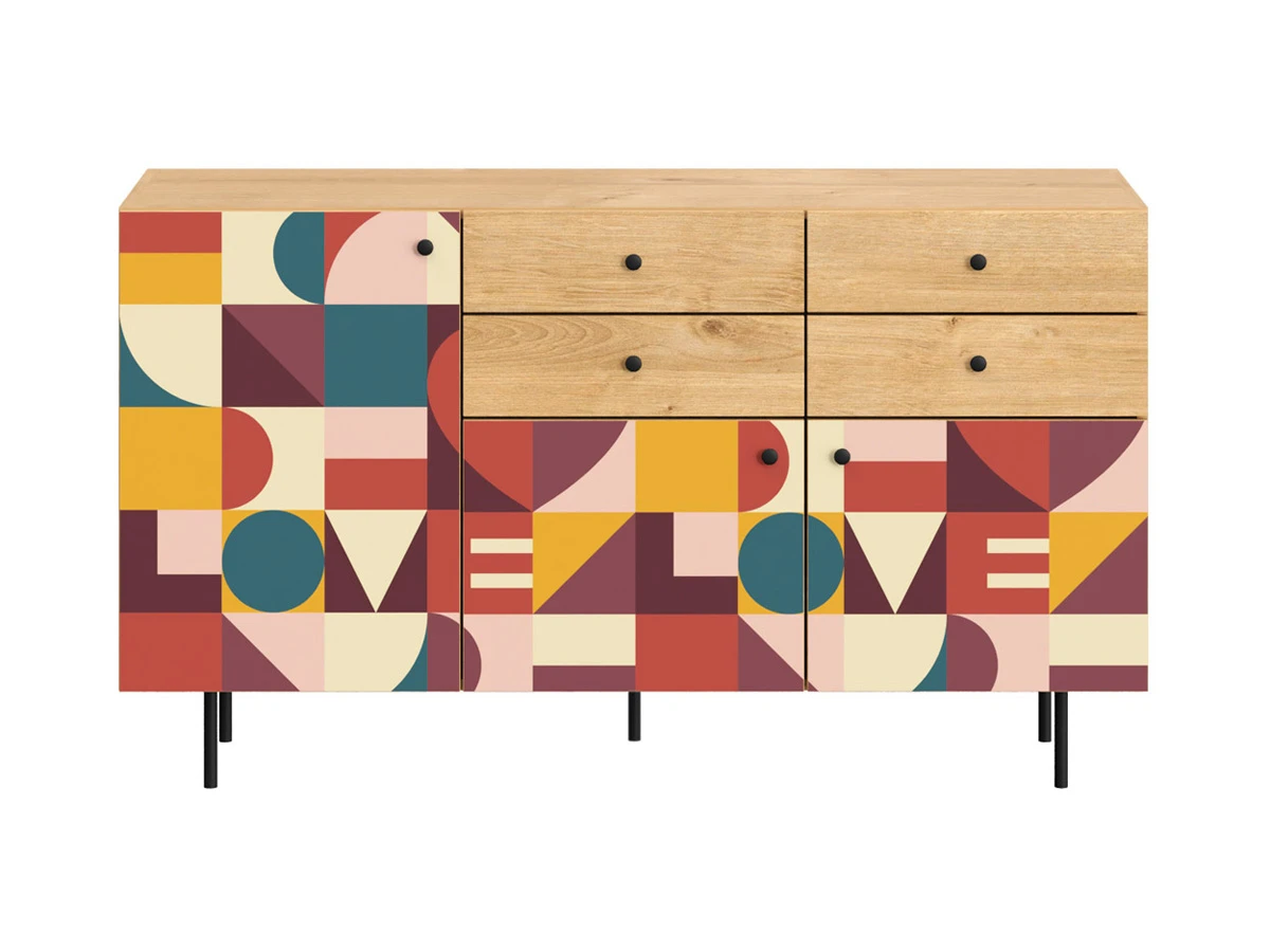 Корпусная мебель, с которой можно составить множество решений для гостиной, детской, кухни, спальни, прихожей, рабочей зоны. Комоды, шкафы, тумбы, столы, витрины, полки, серванты характеризуются универсальностью, многозадачностью, надёжными устойчивыми конструкциями. Имеют выразительный внешний вид, вдохновленный направлением ретро. Смотрятся легко и воздушно за счет деревянных ножек, минимального количества декоративных элементов, спокойных природных оттенков. Их можно использовать в качестве систем хранения, элементов для зонирования, фокусных точек. В дизайне ярко выражена доминанта прямых форм, графичности, лаконичных линий и элегантного исполнения. Что даёт пространству ощущение размеренности, сбалансированности, упорядоченности. Подходят интерьерам как с нейтральной базой, так и локациям с интенсивными цветовыми блоками. Индивидуальности добавят модели с оригинальными паттернами на фасадах. Предметы коллекции Frida гармонично впишутся в эклектичные и стилизованные интерьеры. Ручки входят в стоимость изделия. Высота опор 160 мм. Изображение, нанесенное на фасады, устойчиво к выцветанию, истиранию и влаге. Однако длительное воздействие воды, различных растворителей, спиртосодержащих жидкостей и высоких температур, увеличивают риск повреждения целостности покрытия. Поэтому при использовании необходимо соблюдать ряд правил: 1. Протирайте поверхность с рисунком влажной (но не мокрой) тканью. 2. Используйте мягкие ткани, например, салфетки для стекла или зеркал. 3. Не используйте для обработки поверхности с нанесенным на нее рисунком чистящие порошки и средства, в состав которых входят ацетон, растворитель или спирт. 4. Не используйте металлические губки и щетки с жесткой щетиной. 5. Избегайте ударов, падения, царапания, трения изделий с фотопечатью.