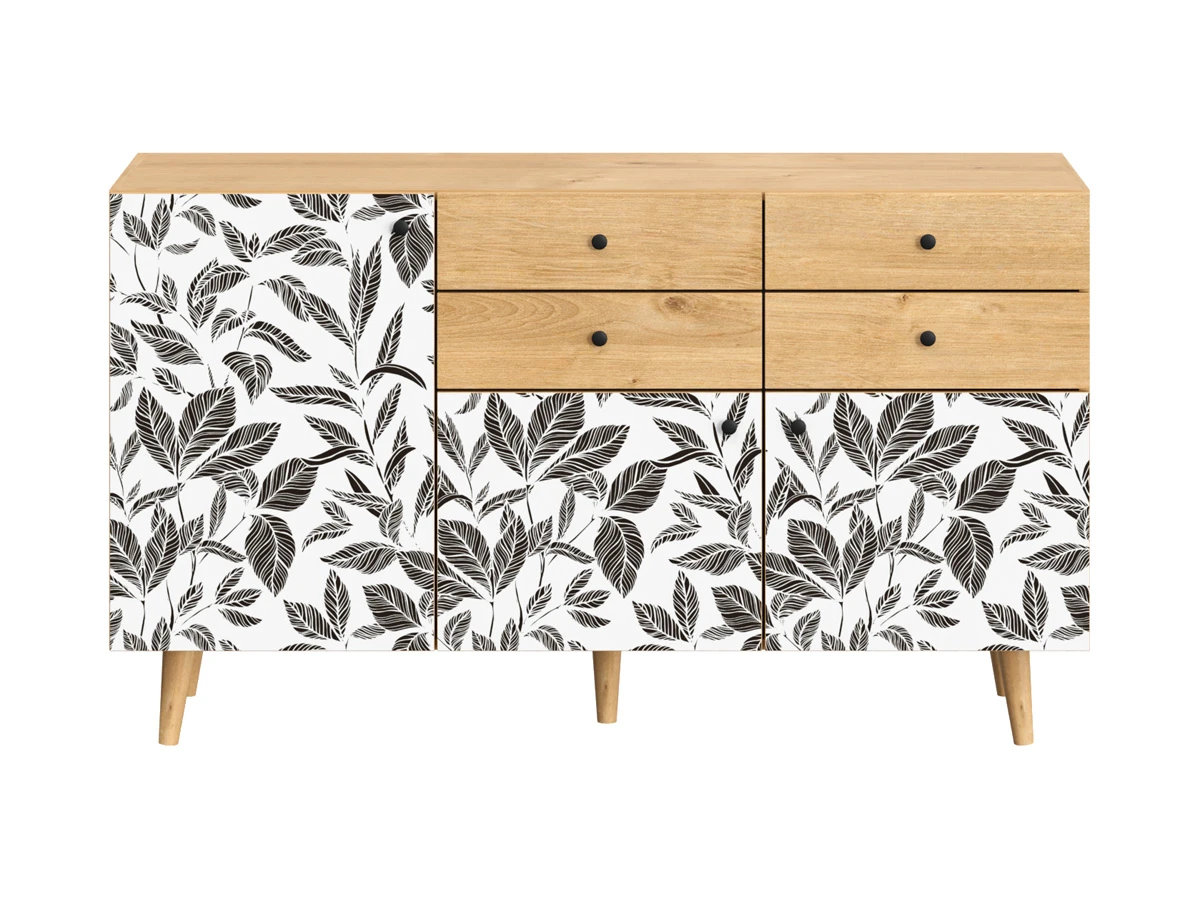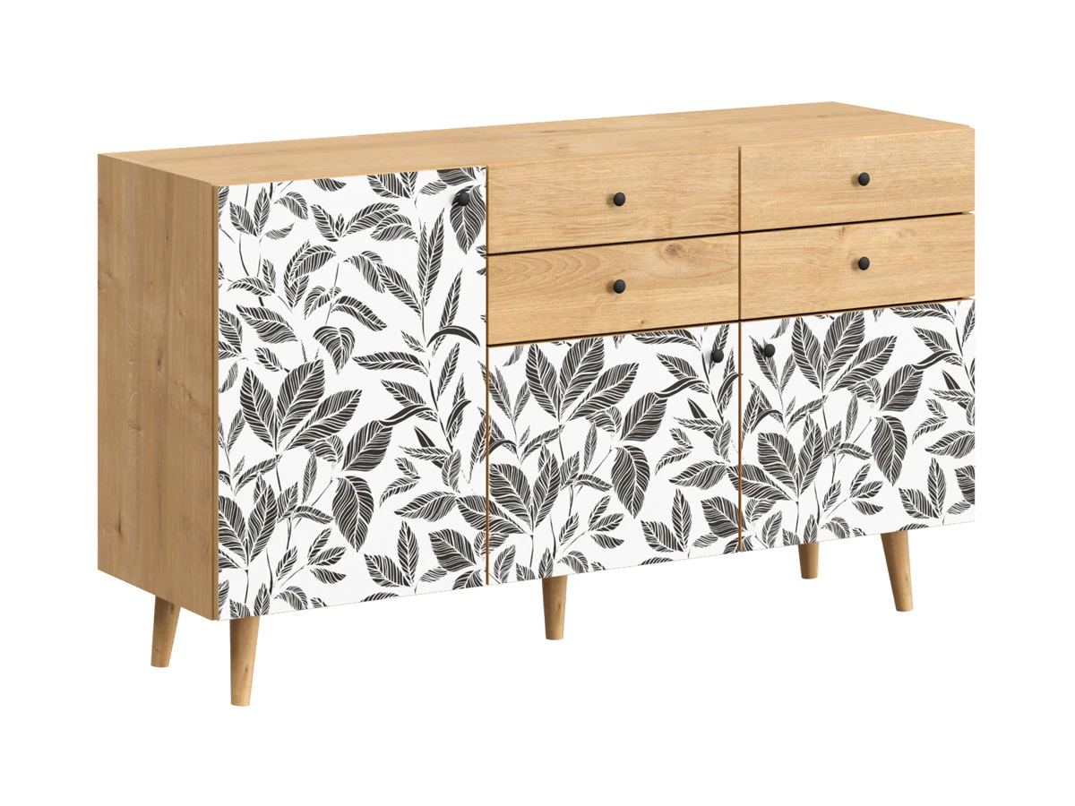 Корпусная мебель, с которой можно составить множество решений для гостиной, детской, кухни, спальни, прихожей, рабочей зоны. Комоды, шкафы, тумбы, столы, витрины, полки, серванты характеризуются универсальностью, многозадачностью, надёжными устойчивыми конструкциями. Имеют выразительный внешний вид, вдохновленный направлением ретро. Смотрятся легко и воздушно за счет деревянных ножек, минимального количества декоративных элементов, спокойных природных оттенков. Их можно использовать в качестве систем хранения, элементов для зонирования, фокусных точек. В дизайне ярко выражена доминанта прямых форм, графичности, лаконичных линий и элегантного исполнения. Что даёт пространству ощущение размеренности, сбалансированности, упорядоченности. Подходят интерьерам как с нейтральной базой, так и локациям с интенсивными цветовыми блоками. Индивидуальности добавят модели с оригинальными паттернами на фасадах. Предметы коллекции Frida гармонично впишутся в эклектичные и стилизованные интерьеры. Ручки входят в стоимость изделия. Высота опор 160 мм. Изображение, нанесенное на фасады, устойчиво к выцветанию, истиранию и влаге. Однако длительное воздействие воды, различных растворителей, спиртосодержащих жидкостей и высоких температур, увеличивают риск повреждения целостности покрытия. Поэтому при использовании необходимо соблюдать ряд правил: 1. Протирайте поверхность с рисунком влажной (но не мокрой) тканью. 2. Используйте мягкие ткани, например, салфетки для стекла или зеркал. 3. Не используйте для обработки поверхности с нанесенным на нее рисунком чистящие порошки и средства, в состав которых входят ацетон, растворитель или спирт. 4. Не используйте металлические губки и щетки с жесткой щетиной. 5. Избегайте ударов, падения, царапания, трения изделий с фотопечатью.