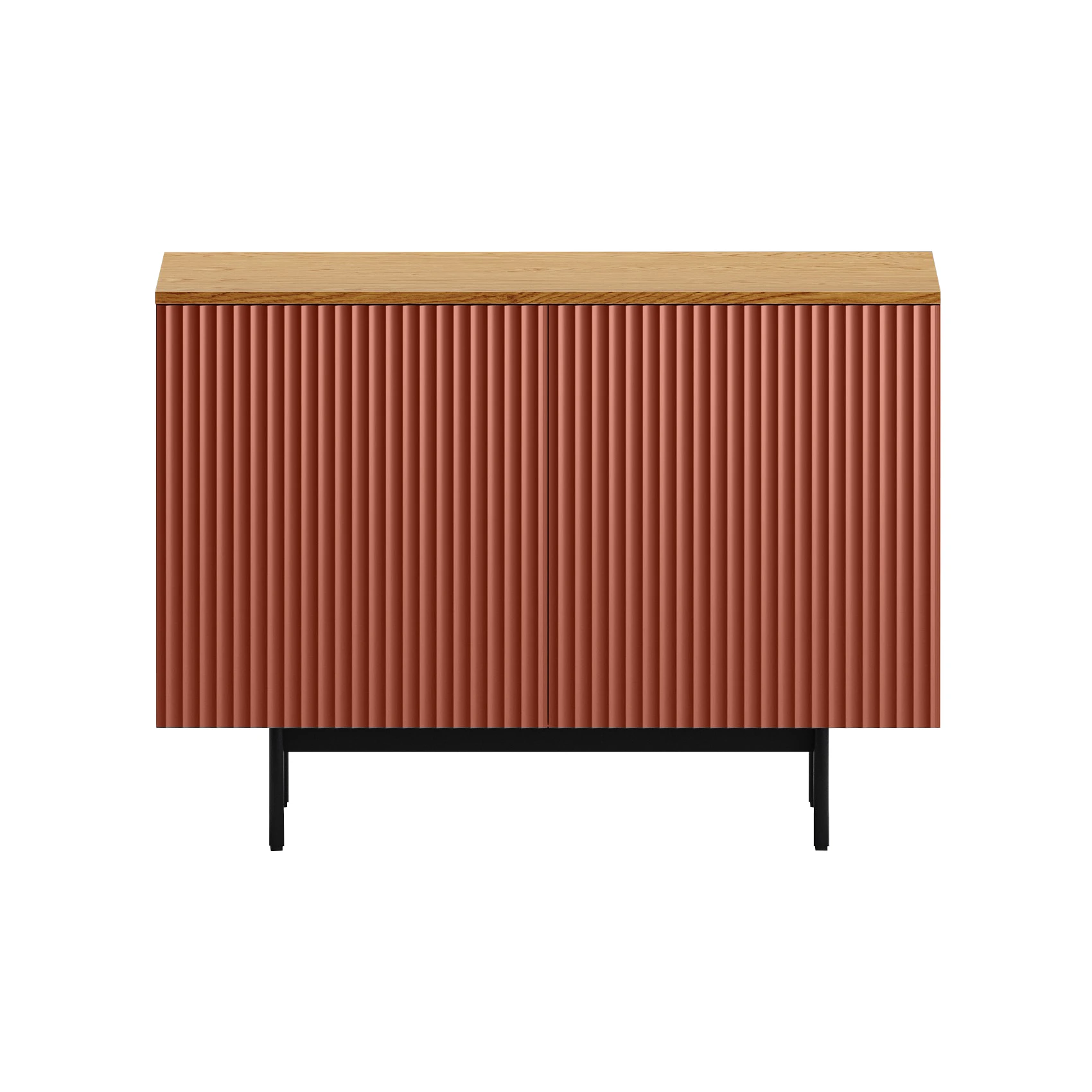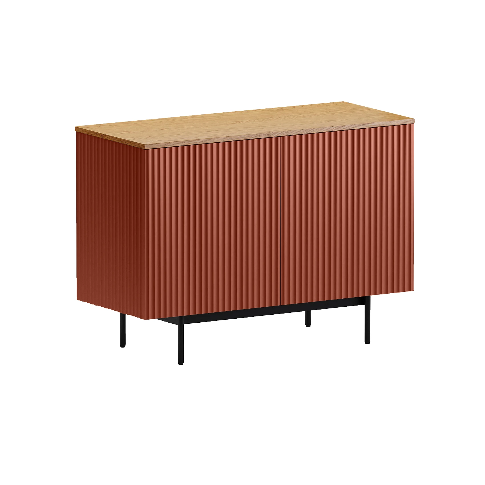 Коллекция Mikko — комплексная система хранения, разработанная для комфортного и актуального интерьера. Вы можете комбинировать различные предметы коллекции или использовать их отдельно. Лаконичный и выразительный внешний вид шкафов, тумб, сервантов, комодов стильно дружит с разными интерьерными решениями. Идея дизайна — баланс индустриального характера и органичных элементов. Мебель сочетает в себе прочное металлическое основание, крышку с дубовым шпоном и рельефный фасад с фрезеровкой. Дверцы и ящики открываются легким нажатием. Отсутствие фурнитуры придает моделям аккуратность и ритмичность. Используйте их для хранения книг, техники в гостиной, одежды и текстиля в спальне, важных мелочей в прихожей, документов и канцелярии в рабочей зоне, декоративных вещей в творческой локации. Можете выбрать цвет крышки: светлый или темный. С мебелью Mikko вы грамотно спрячете лишнее и эстетично экспонируете нужное. Сервант Mikko разделен вертикальной перегородкой на два отделения, которые закрываются распашными дверями. В каждом отделении по одной съёмной полке, перестановка полки по высоте не предусмотрена. Фасад и боковые стенки коллекции Mikko с фрезеровкой выполнены из МДФ толщиной 18 мм. в четырех вариантах декоров: Софт Сантьяго, Шарли Терракота, Шарли Грин, Графит. Крышка из МДФ толщиной 16 мм., облицованной строганным шпоном дуба. Остальные детали корпусов выполнены из плиты ламинированной толщиной 16 мм., декор белый гладкий. Лицевая фурнитура отсутствует, открывание фасадов по принципу нажал - открыл. Основания изделий металлические черного цвета с регулируемыми пластиковыми подпятниками.