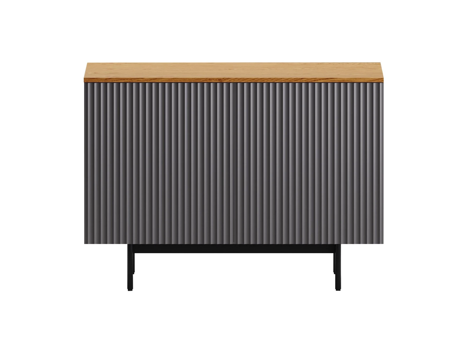 Коллекция Mikko — комплексная система хранения, разработанная для комфортного и актуального интерьера. Вы можете комбинировать различные предметы коллекции или использовать их отдельно. Лаконичный и выразительный внешний вид шкафов, тумб, сервантов, комодов стильно дружит с разными интерьерными решениями. Идея дизайна — баланс индустриального характера и органичных элементов. Мебель сочетает в себе прочное металлическое основание, крышку с дубовым шпоном и рельефный фасад с фрезеровкой. Дверцы и ящики открываются легким нажатием. Отсутствие фурнитуры придает моделям аккуратность и ритмичность. Используйте их для хранения книг, техники в гостиной, одежды и текстиля в спальне, важных мелочей в прихожей, документов и канцелярии в рабочей зоне, декоративных вещей в творческой локации. Можете выбрать цвет крышки: светлый или темный. С мебелью Mikko вы грамотно спрячете лишнее и эстетично экспонируете нужное. Сервант Mikko разделен вертикальной перегородкой на два отделения, которые закрываются распашными дверями. В каждом отделении по одной съёмной полке, перестановка полки по высоте не предусмотрена. Фасад и боковые стенки коллекции Mikko с фрезеровкой выполнены из МДФ толщиной 18 мм. в четырех вариантах декоров: Софт Сантьяго, Шарли Терракота, Шарли Грин, Графит. Крышка из МДФ толщиной 16 мм., облицованной строганным шпоном дуба. Остальные детали корпусов выполнены из плиты ламинированной толщиной 16 мм., декор белый гладкий. Лицевая фурнитура отсутствует, открывание фасадов по принципу нажал - открыл. Основания изделий металлические черного цвета с регулируемыми пластиковыми подпятниками.