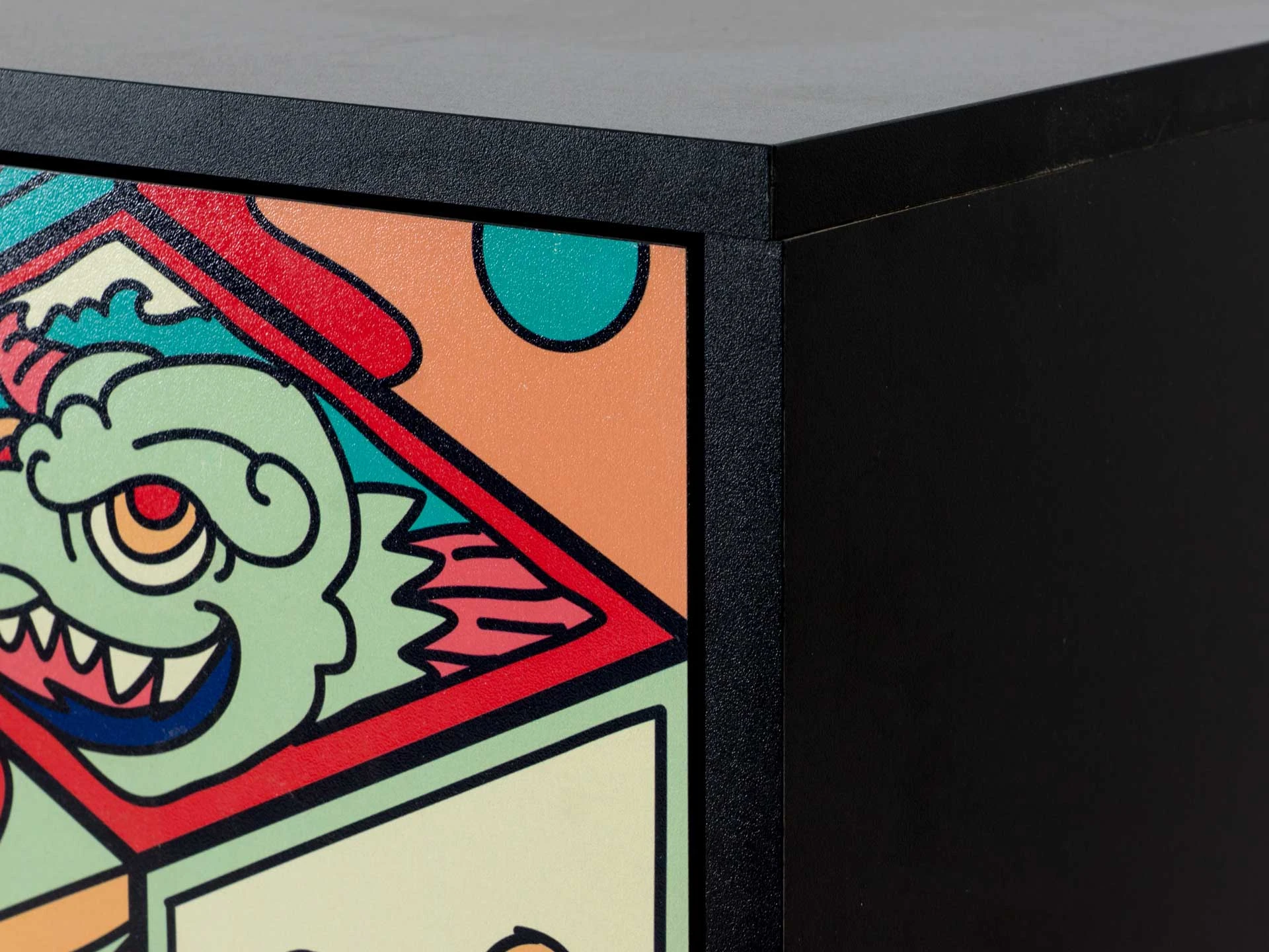 Коллекция Boho Color — более 40 комбинаций изящных тумб, шкафов, консолей с оригинальными принтами на фасадах. Узор напечатан на ЛДСП, остаётся ярким и насыщенным спустя годы использования, не выцветает, не тускнеет, смотрится красиво и актуально. Изделия станут притягательной фишкой гостиной, спальни, детской, кабинета, творческой студии, лаундж и бьюти-зоны. За их насыщенными данными скрывается функциональность, которая гарантирует удобное размещение необходимых вещей. Характерная черта серии — тонкие, но прочные металлические ножки. Которые контрастируют с четкими прямоугольными формами, что придает мебели легкий воздушный вид. Поэтому предметы Boho Color не перегружают пространство. Экзотические мотивы, растительные орнаменты, тропические цветы, колоритные узоры рисуют расслабленную атмосферу отдыха и приключений. Добавляют интерьеру многослойности, объёма, сочности, теплоты, природной энергетики. С помощью этих деталей можно задать тон общей композиции, расставить необходимые акценты или подчеркнуть индивидуальность интерьера. Высота опор 27 см. Изображение, нанесенное на фасады, устойчиво к выцветанию, истиранию и влаге. Однако длительное воздействие воды, различных растворителей, спиртосодержащих жидкостей и высоких температур, увеличивают риск повреждения целостности покрытия. Поэтому при использовании необходимо соблюдать ряд правил: 1. Протирайте поверхность с рисунком влажной (но не мокрой) тканью. 2. Используйте мягкие ткани, например, салфетки для стекла или зеркал. 3. Не используйте для обработки поверхности с нанесенным на нее рисунком чистящие порошки и средства, в состав которых входят ацетон, растворитель или спирт. 4. Не используйте металлические губки и щетки с жесткой щетиной. 5. Избегайте ударов, падения, царапания, трения изделий с фотопечатью.