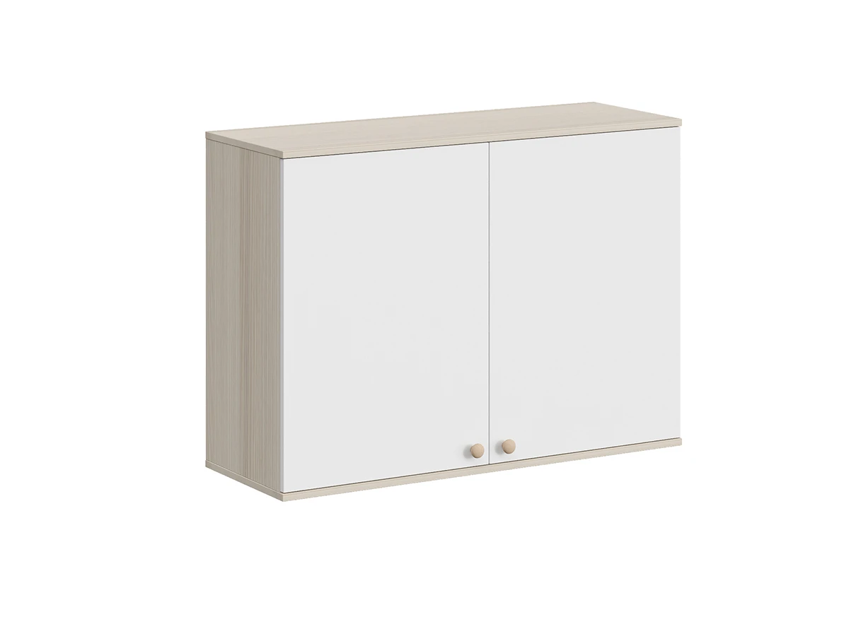 Play — коллекция модульной мебели для детской в спокойных оттенках светлого дерева с локальным добавлением ярких элементов. Естественные формы и цвета подружатся с любой стилевой темой. Подойдет как для дошкольников, так и для подростков. Изделия отвечают главным критериям детской мебели: безопасны, устойчивы, надёжны и эстетичны. Соблюдены экологические показатели, использована ЛДСП класса эмиссии Е1 и Е0,5 — для детской мебели с герметично закрытыми кромками. Из большого количества модулей вы можете спроектировать индивидуальное решение, исходя из потребностей и площади помещения. Для игровой локации, учебного места, спальной зоны, гардероба, хранения игрушек, техники и предметов для творчества — используйте модульные шкафы, стеллажи, тумбы, кровати-чердаки, столы, стеллажи-лестницы. Сквозные стеллажи идеальны в качестве перегородок в детской. Они пропускают свет, не перегружают площадь, позволяют использовать разные декоративные приёмы. Двухярусные кровати и «чердаки» удобно использовать в компактной локации. Шкафы напольные, навесные, тумбы, лаконичные столы — мебель Play поддержит атмосферу порядка и идеальный настрой на учёбу, творчество, поможет развить самостоятельность и аккуратность. Белые фасады отражают свет, освежают интерьер. С коллекцией Play вы легко создадите организованное и креативное пространство, в котором у каждой вещи есть своё место, и где ребенку комфортно учиться, играть, отдыхать, творить. Шкаф навесной с двумя отделениями. Ручки в стоимость изделия не включены, приобретаются отдельно.