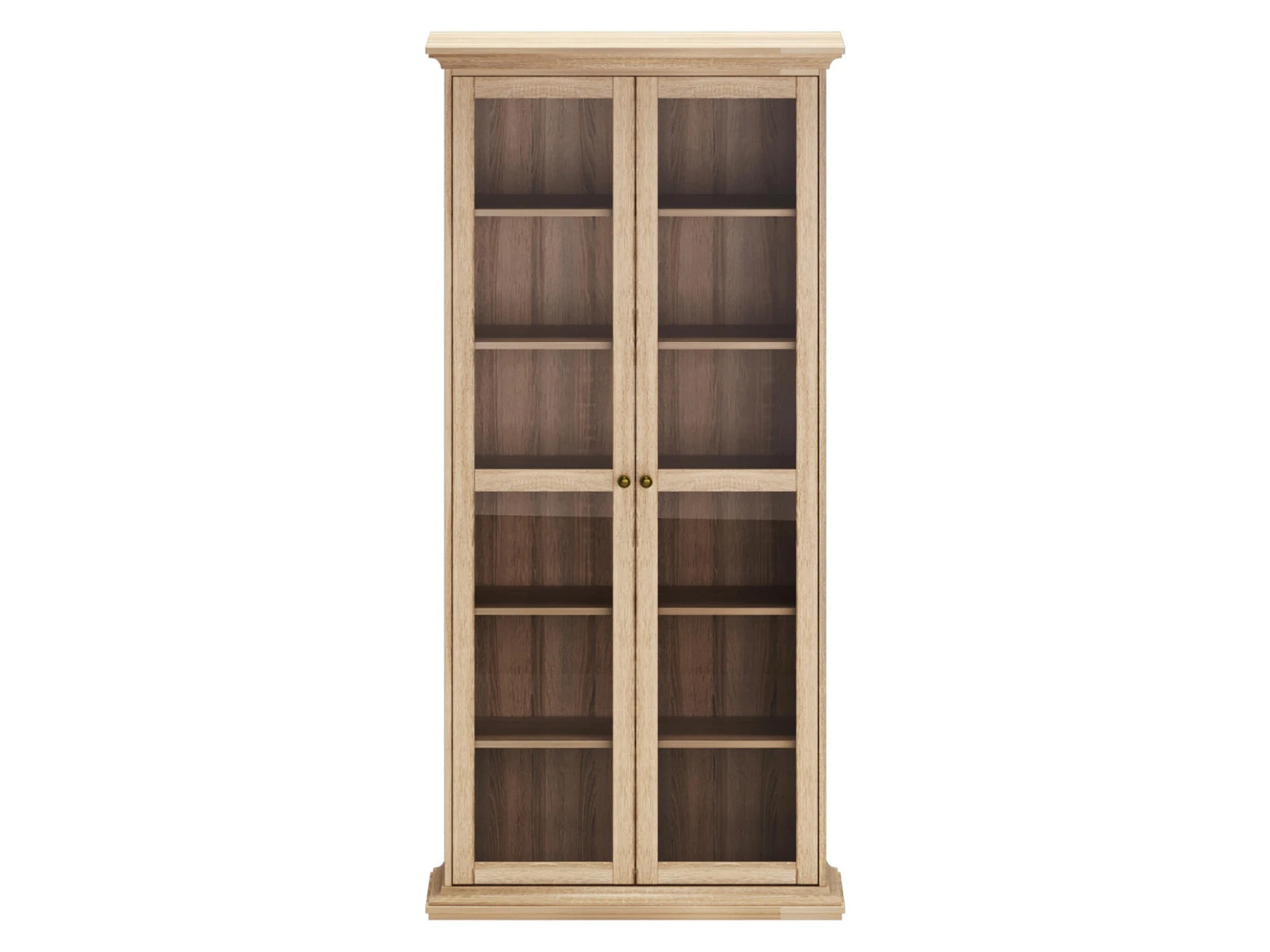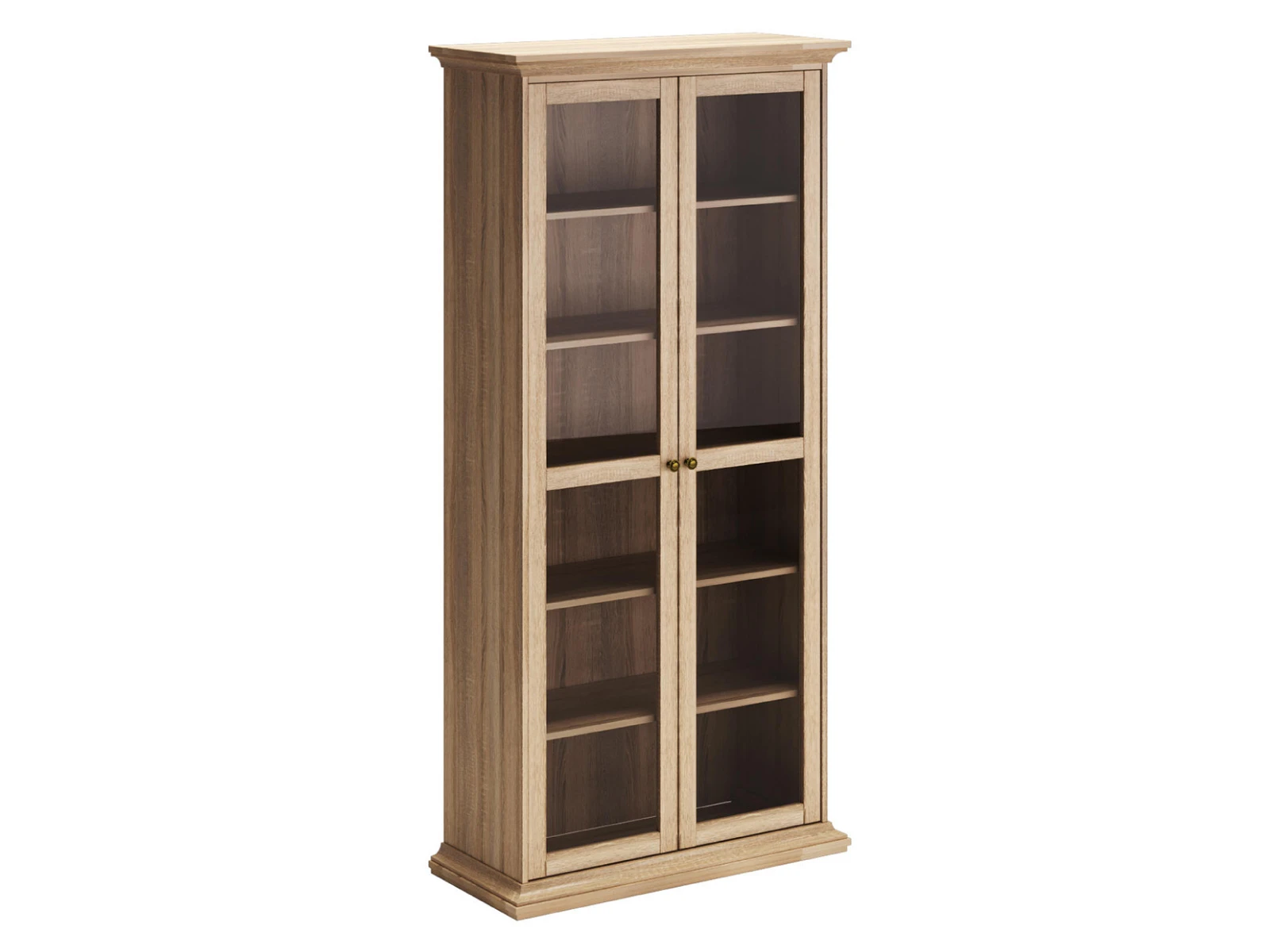 Шкаф состоит из одного отделения за двумя распашными дверцами. Дверцы стеклянные.Внутри расположена одна стационарная и четыре съемные полки для хранения вещей.