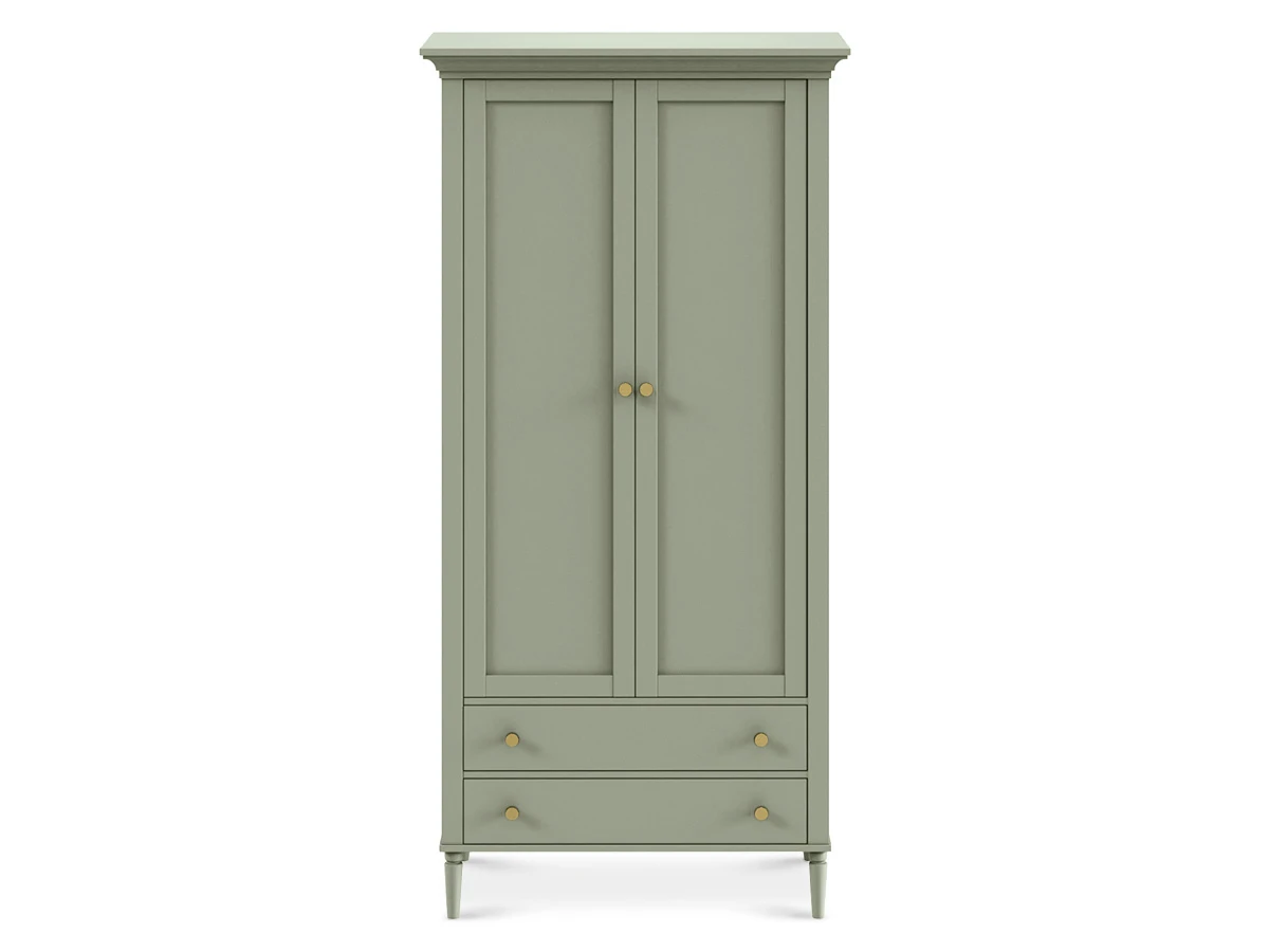 Коллекция Music — респектабельная мебель с классической основой. Обладает притягательной энергетикой изящных форм и безупречным исполнением. Комоды, тумбы, банкетки, консольные и журнальные столики подходят для оформления гостиной, спальни, прихожей, мастерской, студии, бьюти-зоны. Идеально вписывается в стилистику неоклассики, арт-деко, минимализма, эклектики. Лейтмотив коллекции — барочные элементы: фигурные ножки из массива дерева, каретная стяжка «капитоне», акцентные детали в бронзовом и золотистом цвете. Изделия подчеркнут в интерьере смелость, выразительность, спокойствие. Они надежно сохранят ваши секреты, помогут разложить вещи по местам и поддержат настроение «тихой роскоши». Могут выступать на контрасте с главенствующим светлым оттенком или быть частью ненавязчивого темного фона. Шкаф Blues с двумя распашным дверями и двумя выдвижными ящиками. В отделении за дверями располагается продольная штанга для хранения одежды на плечиках, над штангой полка. Выдвижные ящики расположены в нижней части шкафа. Фасады из МДФ толщиной 16 мм. Корпуса ящиков изготовлены из ЛДСтП толщиной 16 мм. Все детали шкафа, за исключением корпусов ящиков, выполнены из МДФ и окрашены полиуретановой эмалью. Шкаф установлен на точеные ножки высотой 160 мм. Материал ножек - берёза. На ножки наклеены войлочные подпятники. Задняя стенка шкафа из ДВП 3,2 мм. окрашена в цвет корпуса. Ручки включены в стоимость.