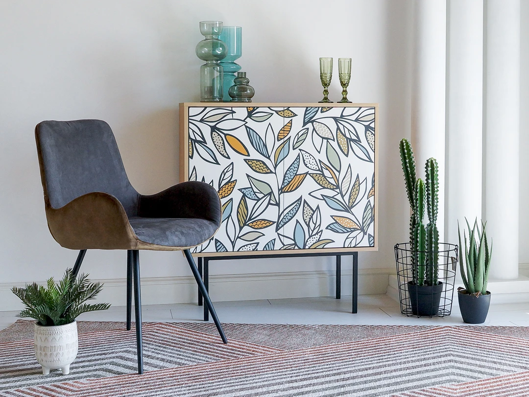 Коллекция Boho Color — более 40 комбинаций изящных тумб, шкафов, консолей с оригинальными принтами на фасадах. Узор напечатан на ЛДСП, остаётся ярким и насыщенным спустя годы использования, не выцветает, не тускнеет, смотрится красиво и актуально. Изделия станут притягательной фишкой гостиной, спальни, детской, кабинета, творческой студии, лаундж и бьюти-зоны. За их насыщенными данными скрывается функциональность, которая гарантирует удобное размещение необходимых вещей. Характерная черта серии — тонкие, но прочные металлические ножки. Которые контрастируют с четкими прямоугольными формами, что придает мебели легкий воздушный вид. Поэтому предметы Boho Color не перегружают пространство. Экзотические мотивы, растительные орнаменты, тропические цветы, колоритные узоры рисуют расслабленную атмосферу отдыха и приключений. Добавляют интерьеру многослойности, объёма, сочности, теплоты, природной энергетики. С помощью этих деталей можно задать тон общей композиции, расставить необходимые акценты или подчеркнуть индивидуальность интерьера. Высота опор 27 см. Изображение, нанесенное на фасады, устойчиво к выцветанию, истиранию и влаге. Однако длительное воздействие воды, различных растворителей, спиртосодержащих жидкостей и высоких температур, увеличивают риск повреждения целостности покрытия. Поэтому при использовании необходимо соблюдать ряд правил: 1. Протирайте поверхность с рисунком влажной (но не мокрой) тканью. 2. Используйте мягкие ткани, например, салфетки для стекла или зеркал. 3. Не используйте для обработки поверхности с нанесенным на нее рисунком чистящие порошки и средства, в состав которых входят ацетон, растворитель или спирт. 4. Не используйте металлические губки и щетки с жесткой щетиной. 5. Избегайте ударов, падения, царапания, трения изделий с фотопечатью.