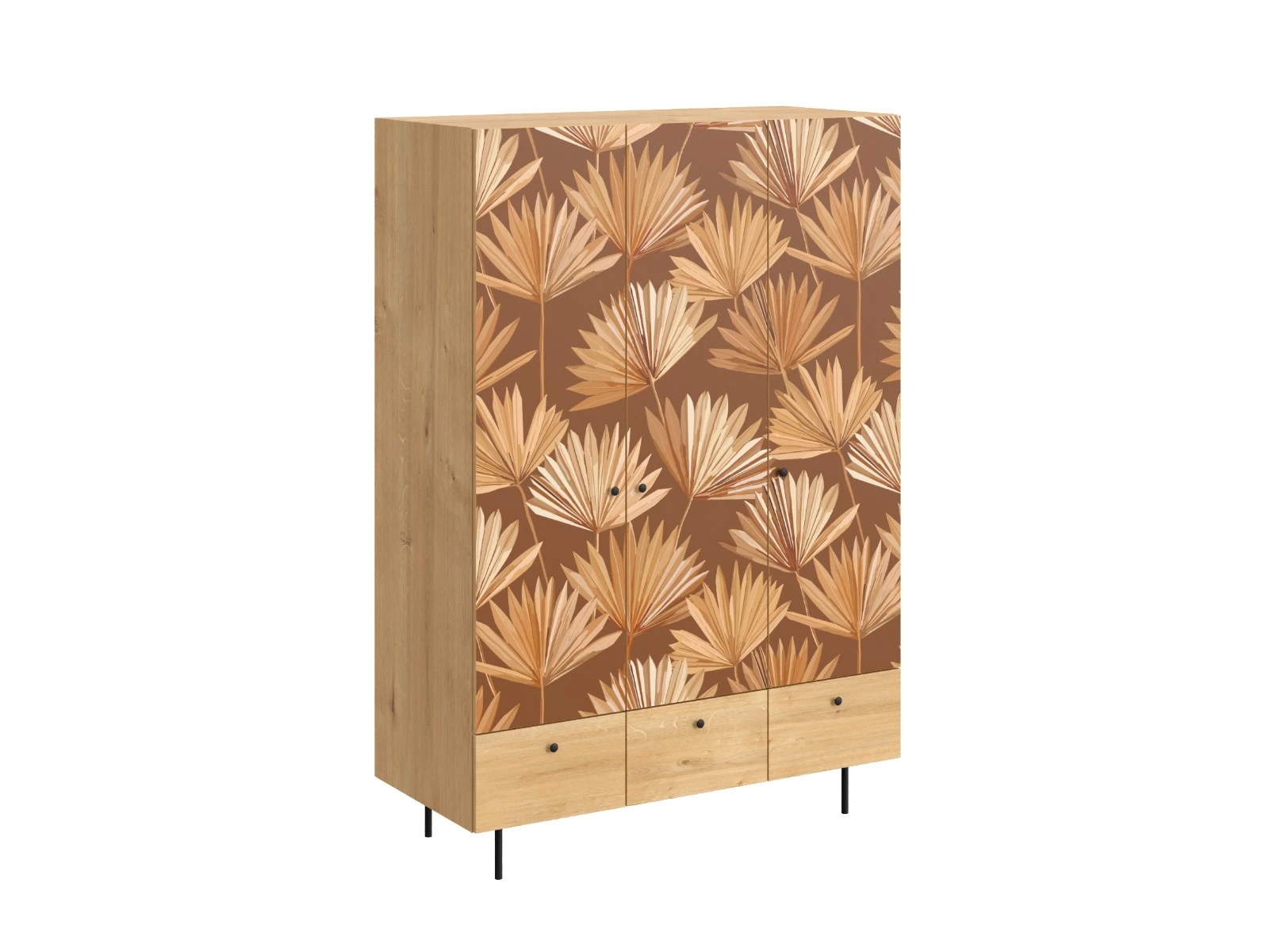Корпусная мебель, с которой можно составить множество решений для гостиной, детской, кухни, спальни, прихожей, рабочей зоны. Комоды, шкафы, тумбы, столы, витрины, полки, серванты характеризуются универсальностью, многозадачностью, надёжными устойчивыми конструкциями. Имеют выразительный внешний вид, вдохновленный направлением ретро. Смотрятся легко и воздушно за счет деревянных ножек, минимального количества декоративных элементов, спокойных природных оттенков. Их можно использовать в качестве систем хранения, элементов для зонирования, фокусных точек. В дизайне ярко выражена доминанта прямых форм, графичности, лаконичных линий и элегантного исполнения. Что даёт пространству ощущение размеренности, сбалансированности, упорядоченности. Подходят интерьерам как с нейтральной базой, так и локациям с интенсивными цветовыми блоками. Индивидуальности добавят модели с оригинальными паттернами на фасадах. Предметы коллекции Frida гармонично впишутся в эклектичные и стилизованные интерьеры. Ручки входят в стоимость изделия. Высота опор 160 мм. Изображение, нанесенное на фасады, устойчиво к выцветанию, истиранию и влаге. Однако длительное воздействие воды, различных растворителей, спиртосодержащих жидкостей и высоких температур, увеличивают риск повреждения целостности покрытия. Поэтому при использовании необходимо соблюдать ряд правил: 1. Протирайте поверхность с рисунком влажной (но не мокрой) тканью. 2. Используйте мягкие ткани, например, салфетки для стекла или зеркал. 3. Не используйте для обработки поверхности с нанесенным на нее рисунком чистящие порошки и средства, в состав которых входят ацетон, растворитель или спирт. 4. Не используйте металлические губки и щетки с жесткой щетиной. 5. Избегайте ударов, падения, царапания, трения изделий с фотопечатью.