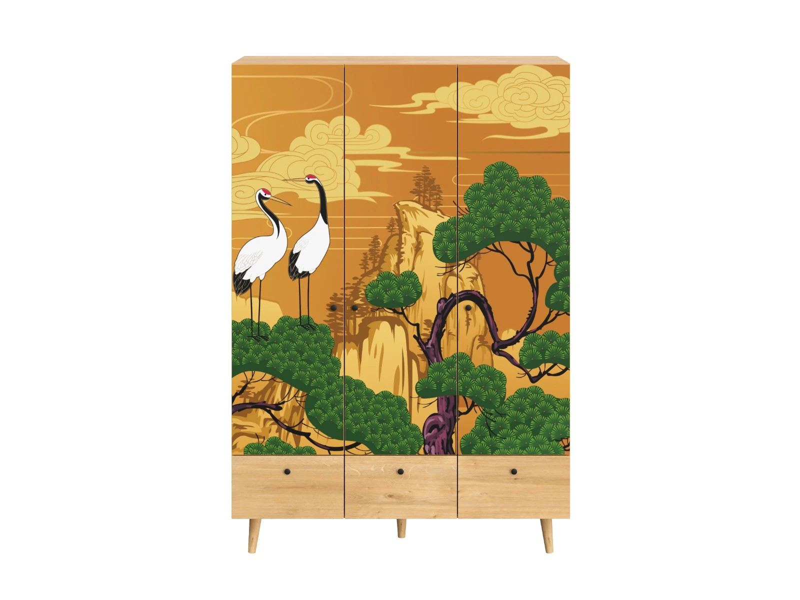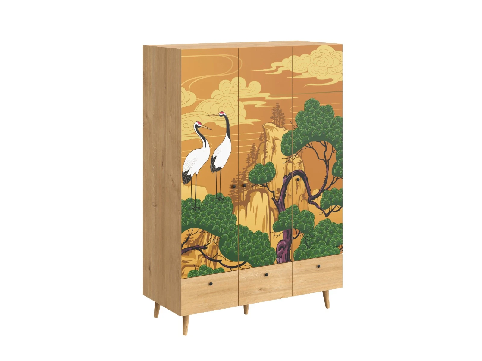 Корпусная мебель, с которой можно составить множество решений для гостиной, детской, кухни, спальни, прихожей, рабочей зоны. Комоды, шкафы, тумбы, столы, витрины, полки, серванты характеризуются универсальностью, многозадачностью, надёжными устойчивыми конструкциями. Имеют выразительный внешний вид, вдохновленный направлением ретро. Смотрятся легко и воздушно за счет деревянных ножек, минимального количества декоративных элементов, спокойных природных оттенков. Их можно использовать в качестве систем хранения, элементов для зонирования, фокусных точек. В дизайне ярко выражена доминанта прямых форм, графичности, лаконичных линий и элегантного исполнения. Что даёт пространству ощущение размеренности, сбалансированности, упорядоченности. Подходят интерьерам как с нейтральной базой, так и локациям с интенсивными цветовыми блоками. Индивидуальности добавят модели с оригинальными паттернами на фасадах. Предметы коллекции Frida гармонично впишутся в эклектичные и стилизованные интерьеры. Ручки входят в стоимость изделия. Высота опор 160 мм. Изображение, нанесенное на фасады, устойчиво к выцветанию, истиранию и влаге. Однако длительное воздействие воды, различных растворителей, спиртосодержащих жидкостей и высоких температур, увеличивают риск повреждения целостности покрытия. Поэтому при использовании необходимо соблюдать ряд правил: 1. Протирайте поверхность с рисунком влажной (но не мокрой) тканью. 2. Используйте мягкие ткани, например, салфетки для стекла или зеркал. 3. Не используйте для обработки поверхности с нанесенным на нее рисунком чистящие порошки и средства, в состав которых входят ацетон, растворитель или спирт. 4. Не используйте металлические губки и щетки с жесткой щетиной. 5. Избегайте ударов, падения, царапания, трения изделий с фотопечатью.