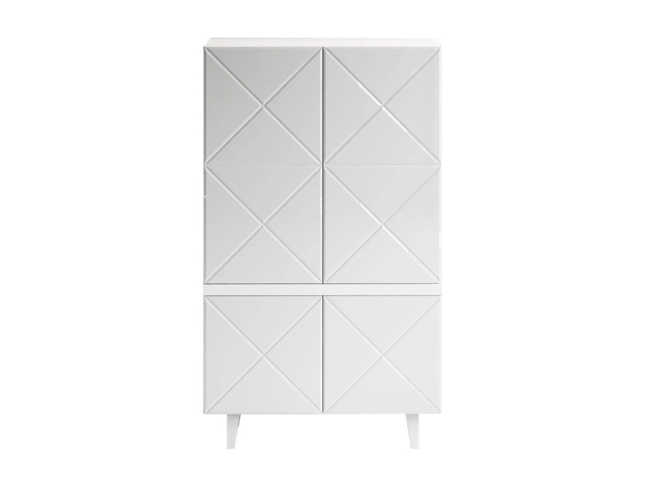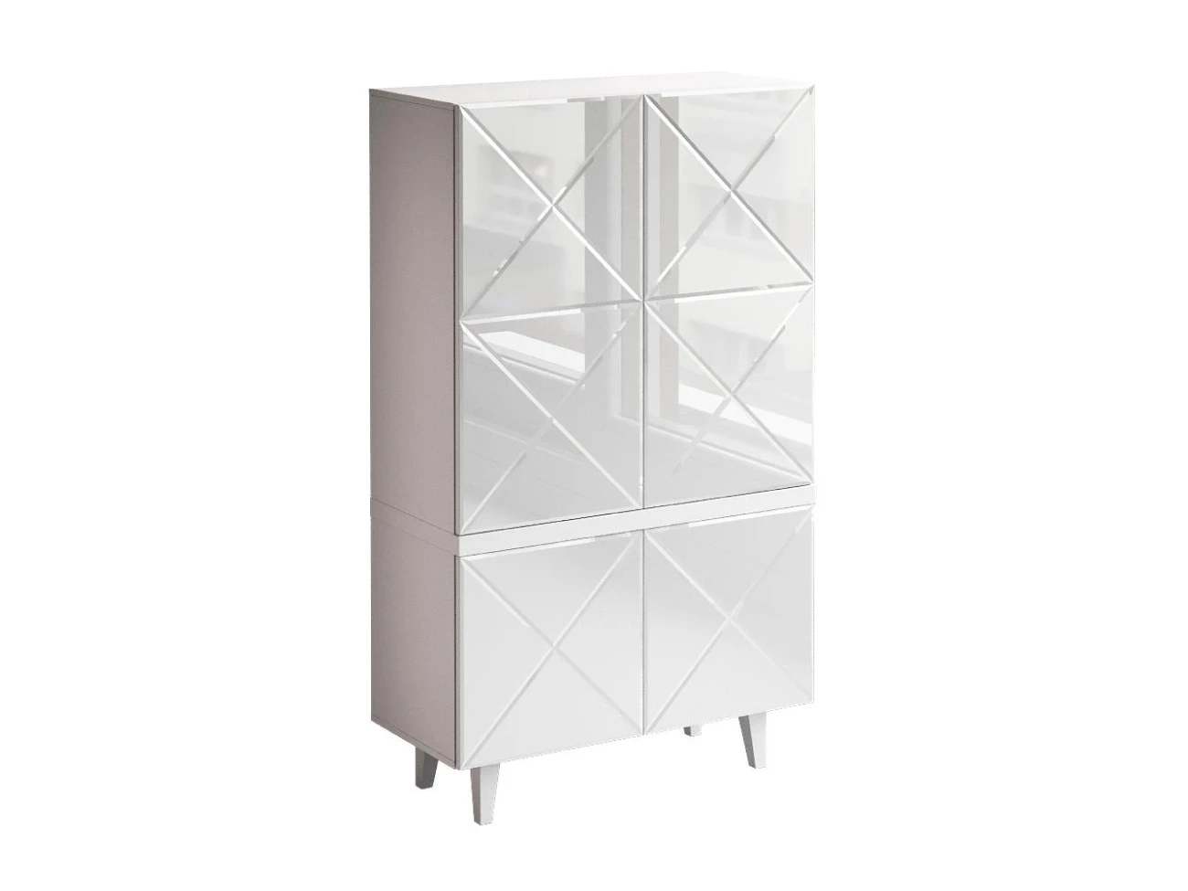 Коллекция дизайнерской корпусной мебели с глянцевыми и зеркальными фасадами в черно-белых цветах. Мебель выглядит эстетически строгой, легкой и четкой. Но при этом оригинальной и колоритной. В интерьере она создаст атмосферу порядка, элегантности, организованности. Геометрическая декоративная гравировка, отражающие фасады расширяют пространство, воплощают эффект простоты и неординарности. Важно, что шкафы, тумбы, комоды — универсальны и подходят для гостиной, спальни, кабинета, прихожей. Все изделия работают бесшумно, комплектуются итальянской и немецкой фурнитурой. Открытие по принципу «нажал-открыл», отсутствие ручек на фасадах и лишних деталей отвечает за визуальную тишину. Kristal нейтрализует повседневность, создаёт праздник в интерьере. Уместит и спрячет ваши вещи. Идеально впишется в комнаты небольших размеров, квартиры-студии с несколькими зонами в одном пространстве. Поддержит баланс порядка и красоты. Имеет вариативную стилизацию, подойдет как интерьерам спокойной классической направленности, так и небанальным дизайнерским решениям. Шкаф комбинированный для гостиной. Дверцы открываются по принципу «нажал - открыл».