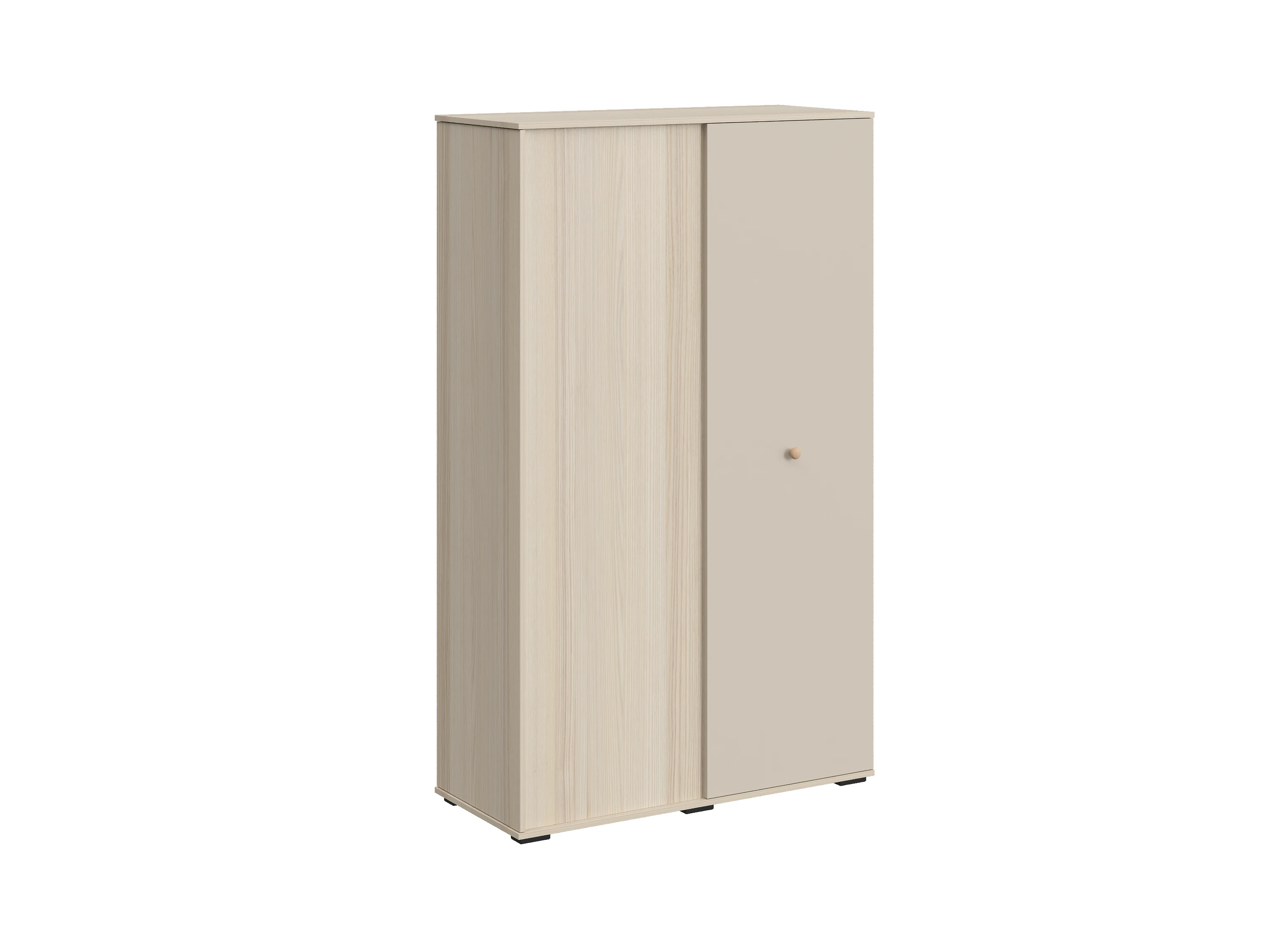 Play — коллекция модульной мебели для детской в спокойных оттенках светлого дерева с локальным добавлением ярких элементов. Естественные формы и цвета подружатся с любой стилевой темой. Подойдет как для дошкольников, так и для подростков. Изделия отвечают главным критериям детской мебели: безопасны, устойчивы, надёжны и эстетичны. Соблюдены экологические показатели, использована ЛДСП класса эмиссии Е1 и Е0,5 — для детской мебели с герметично закрытыми кромками. Из большого количества модулей вы можете спроектировать индивидуальное решение, исходя из потребностей и площади помещения. Для игровой локации, учебного места, спальной зоны, гардероба, хранения игрушек, техники и предметов для творчества — используйте модульные шкафы, стеллажи, тумбы, кровати-чердаки, столы, стеллажи-лестницы. Сквозные стеллажи идеальны в качестве перегородок в детской. Они пропускают свет, не перегружают площадь, позволяют использовать разные декоративные приёмы. Двухярусные кровати и «чердаки» удобно использовать в компактной локации. Шкафы напольные, навесные, тумбы, лаконичные столы — мебель Play поддержит атмосферу порядка и идеальный настрой на учёбу, творчество, поможет развить самостоятельность и аккуратность. Белые фасады отражают свет, освежают интерьер. С коллекцией Play вы легко создадите организованное и креативное пространство, в котором у каждой вещи есть своё место, и где ребенку комфортно учиться, играть, отдыхать, творить. Шкаф двухдверный. Одна распашная дверца располагается с торца шкафа. За ней находится отделение с полкой и штангой для хранения одежды на плечиках. За второй распашной дверцей с фронтальной стороны, располагается отделение со стационарными полками и выдвижными ящиками. Ручки в стоимость изделия не включены, приобретаются отдельно.