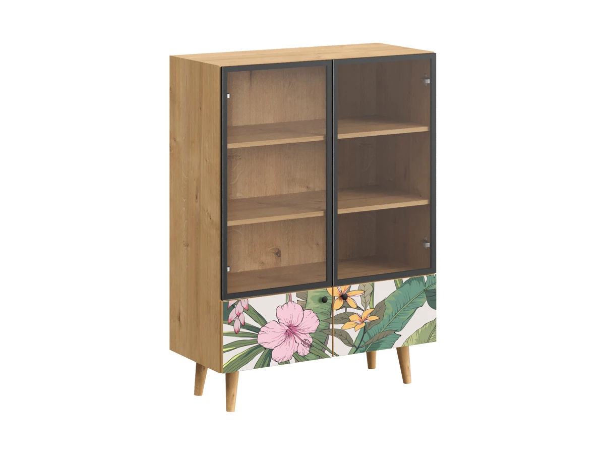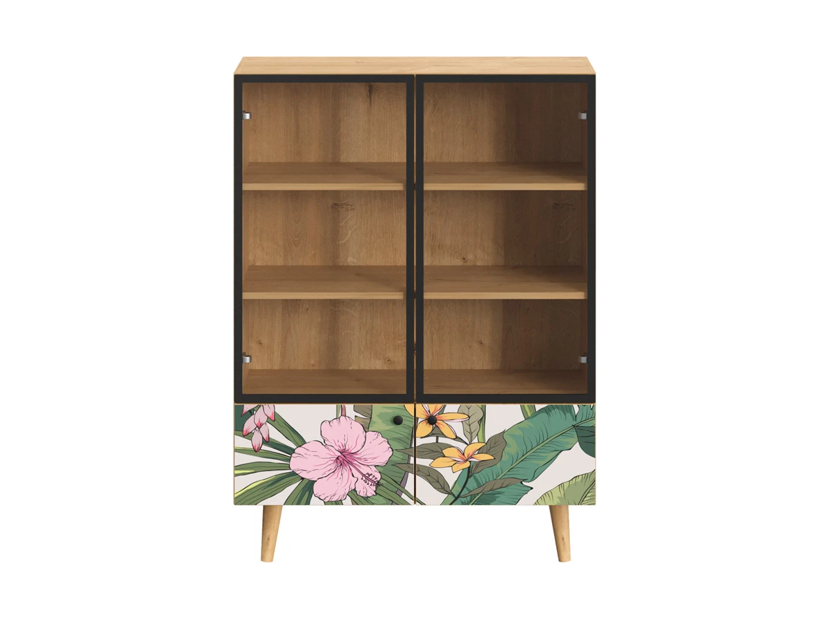 Корпусная мебель, с которой можно составить множество решений для гостиной, детской, кухни, спальни, прихожей, рабочей зоны. Комоды, шкафы, тумбы, столы, витрины, полки, серванты характеризуются универсальностью, многозадачностью, надёжными устойчивыми конструкциями. Имеют выразительный внешний вид, вдохновленный направлением ретро. Смотрятся легко и воздушно за счет деревянных ножек, минимального количества декоративных элементов, спокойных природных оттенков. Их можно использовать в качестве систем хранения, элементов для зонирования, фокусных точек. В дизайне ярко выражена доминанта прямых форм, графичности, лаконичных линий и элегантного исполнения. Что даёт пространству ощущение размеренности, сбалансированности, упорядоченности. Подходят интерьерам как с нейтральной базой, так и локациям с интенсивными цветовыми блоками. Индивидуальности добавят модели с оригинальными паттернами на фасадах. Предметы коллекции Frida гармонично впишутся в эклектичные и стилизованные интерьеры. Ручки входят в стоимость изделия. Высота опор 160 мм. Изображение, нанесенное на фасады, устойчиво к выцветанию, истиранию и влаге. Однако длительное воздействие воды, различных растворителей, спиртосодержащих жидкостей и высоких температур, увеличивают риск повреждения целостности покрытия. Поэтому при использовании необходимо соблюдать ряд правил: 1. Протирайте поверхность с рисунком влажной (но не мокрой) тканью. 2. Используйте мягкие ткани, например, салфетки для стекла или зеркал. 3. Не используйте для обработки поверхности с нанесенным на нее рисунком чистящие порошки и средства, в состав которых входят ацетон, растворитель или спирт. 4. Не используйте металлические губки и щетки с жесткой щетиной. 5. Избегайте ударов, падения, царапания, трения изделий с фотопечатью.