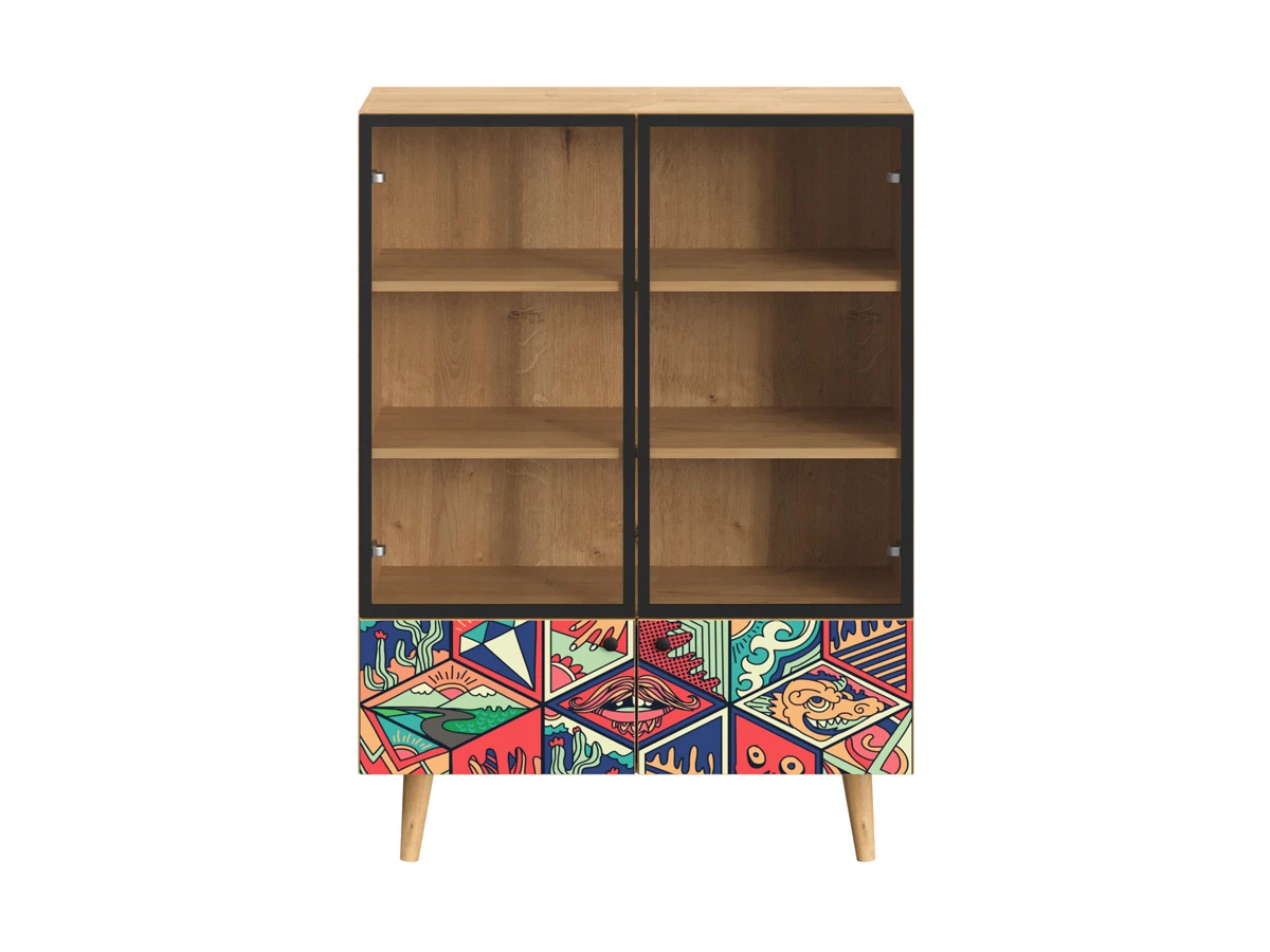 Корпусная мебель, с которой можно составить множество решений для гостиной, детской, кухни, спальни, прихожей, рабочей зоны. Комоды, шкафы, тумбы, столы, витрины, полки, серванты характеризуются универсальностью, многозадачностью, надёжными устойчивыми конструкциями. Имеют выразительный внешний вид, вдохновленный направлением ретро. Смотрятся легко и воздушно за счет деревянных ножек, минимального количества декоративных элементов, спокойных природных оттенков. Их можно использовать в качестве систем хранения, элементов для зонирования, фокусных точек. В дизайне ярко выражена доминанта прямых форм, графичности, лаконичных линий и элегантного исполнения. Что даёт пространству ощущение размеренности, сбалансированности, упорядоченности. Подходят интерьерам как с нейтральной базой, так и локациям с интенсивными цветовыми блоками. Индивидуальности добавят модели с оригинальными паттернами на фасадах. Предметы коллекции Frida гармонично впишутся в эклектичные и стилизованные интерьеры. Ручки входят в стоимость изделия. Высота опор 160 мм. Изображение, нанесенное на фасады, устойчиво к выцветанию, истиранию и влаге. Однако длительное воздействие воды, различных растворителей, спиртосодержащих жидкостей и высоких температур, увеличивают риск повреждения целостности покрытия. Поэтому при использовании необходимо соблюдать ряд правил: 1. Протирайте поверхность с рисунком влажной (но не мокрой) тканью. 2. Используйте мягкие ткани, например, салфетки для стекла или зеркал. 3. Не используйте для обработки поверхности с нанесенным на нее рисунком чистящие порошки и средства, в состав которых входят ацетон, растворитель или спирт. 4. Не используйте металлические губки и щетки с жесткой щетиной. 5. Избегайте ударов, падения, царапания, трения изделий с фотопечатью.