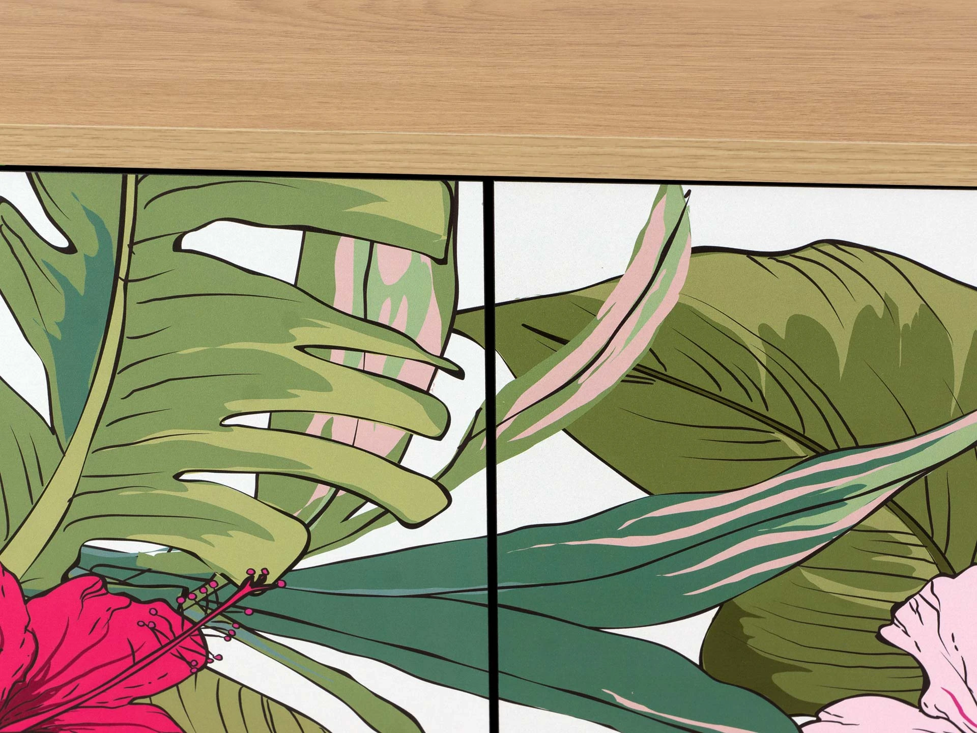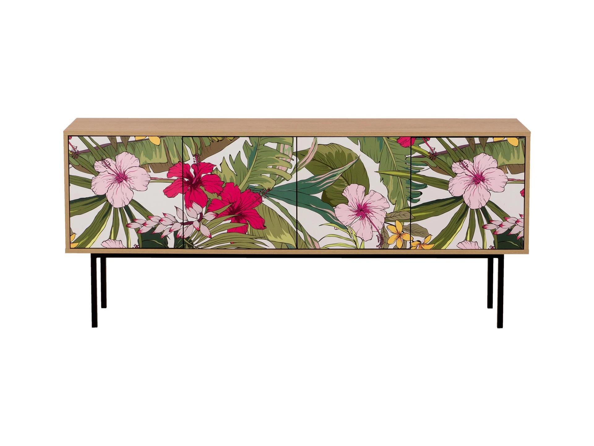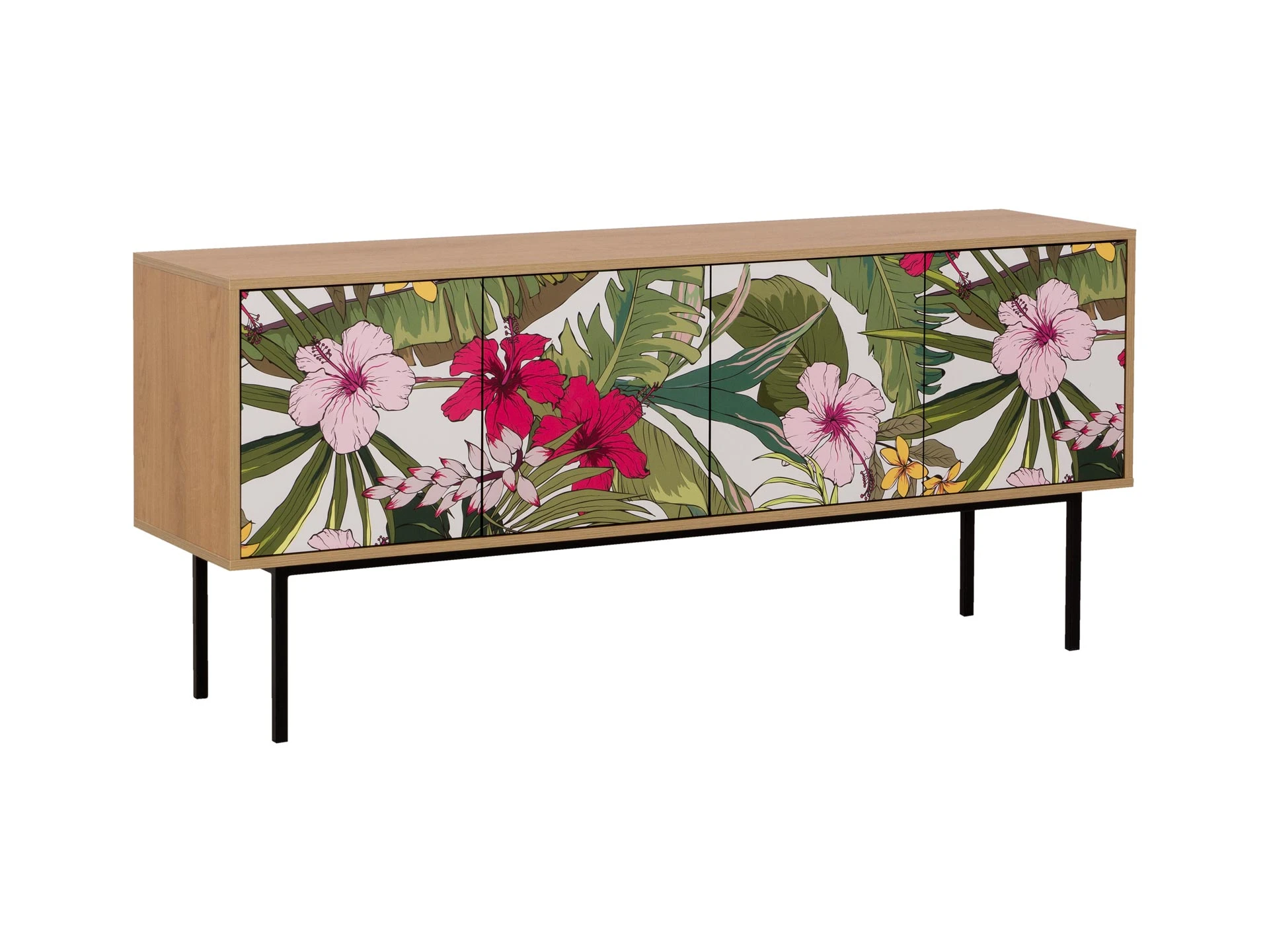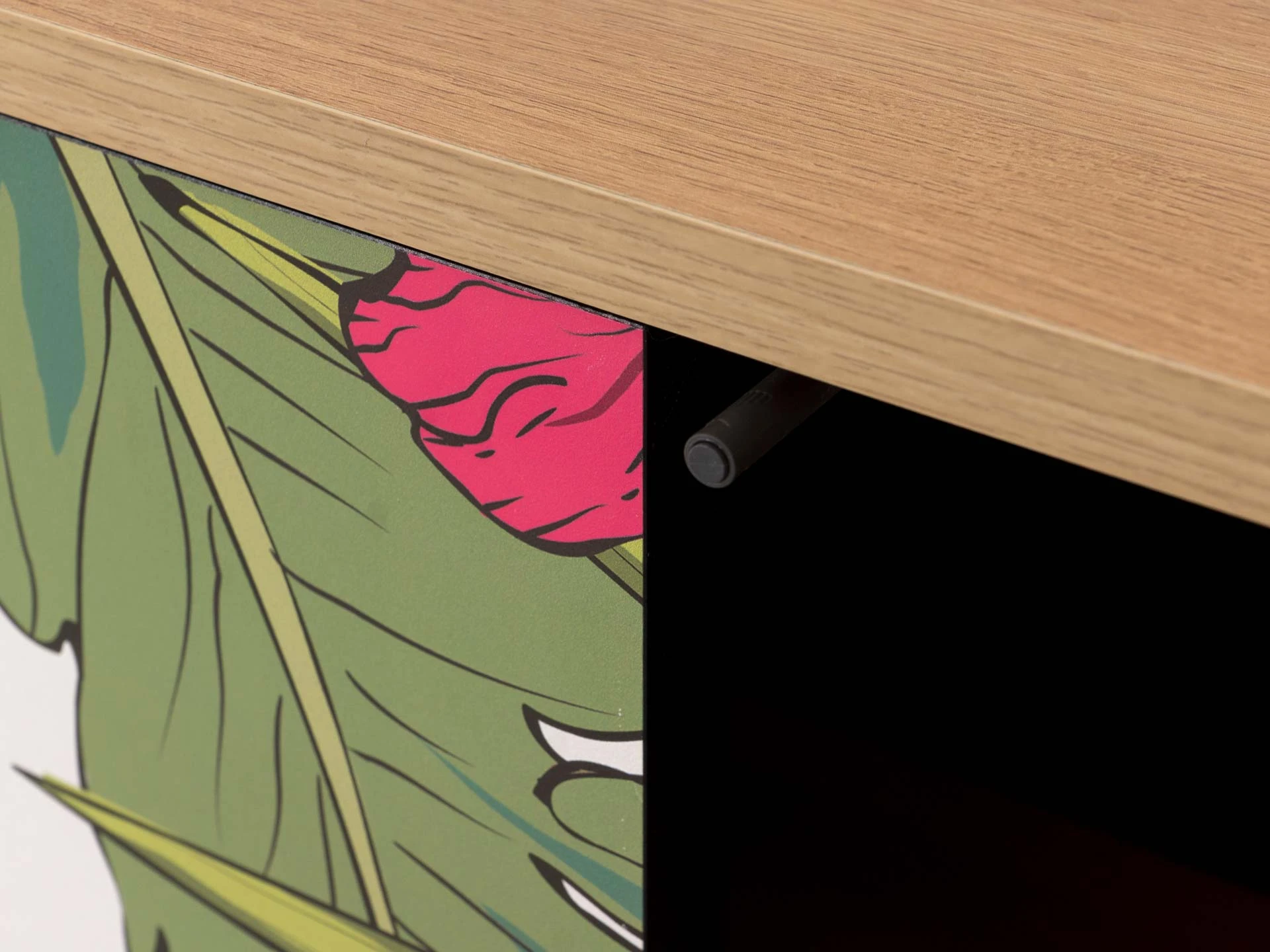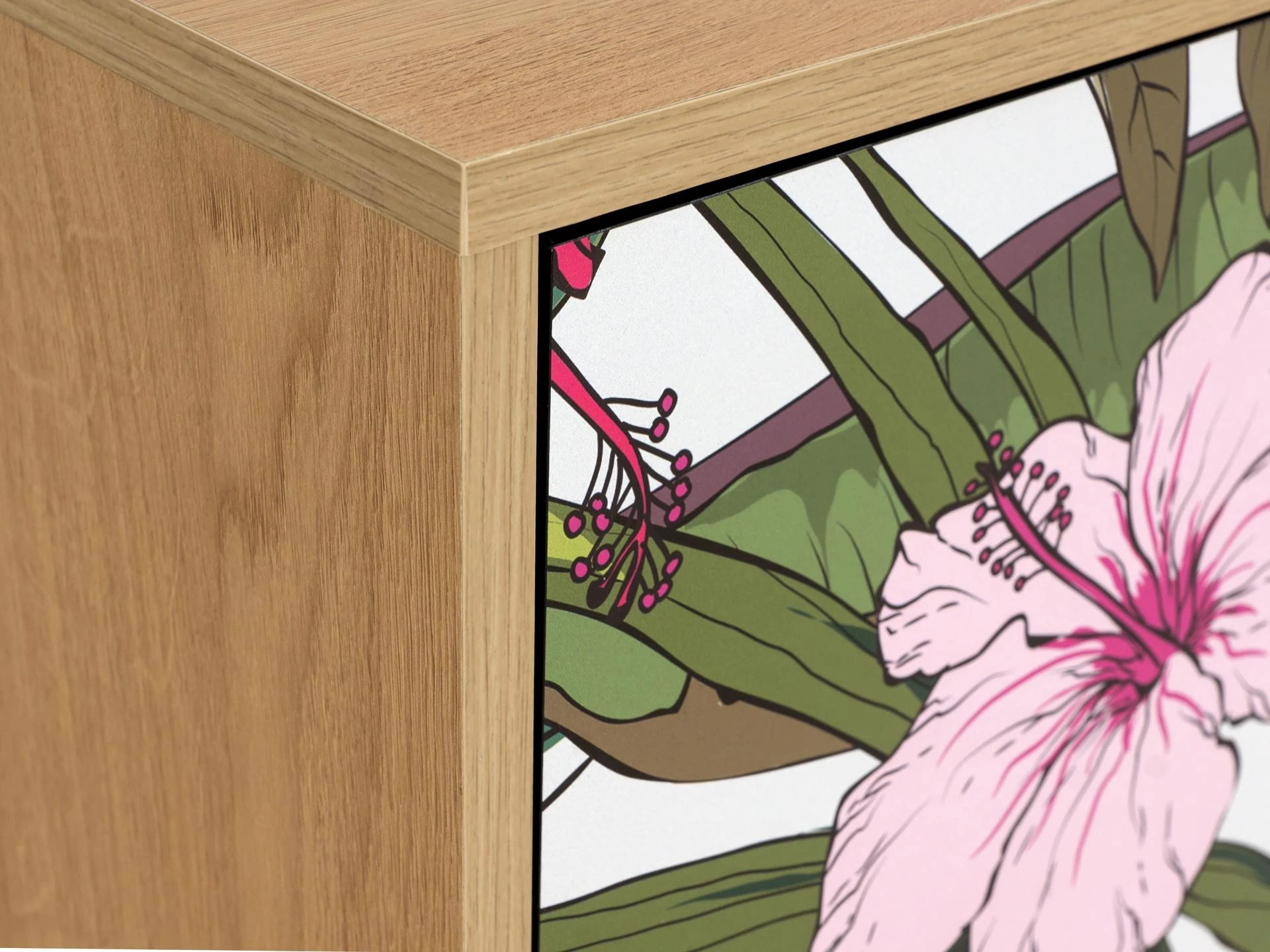 Коллекция Boho Color — более 40 комбинаций изящных тумб, шкафов, консолей с оригинальными принтами на фасадах. Узор напечатан на ЛДСП, остаётся ярким и насыщенным спустя годы использования, не выцветает, не тускнеет, смотрится красиво и актуально. Изделия станут притягательной фишкой гостиной, спальни, детской, кабинета, творческой студии, лаундж и бьюти-зоны. За их насыщенными данными скрывается функциональность, которая гарантирует удобное размещение необходимых вещей. Характерная черта серии — тонкие, но прочные металлические ножки. Которые контрастируют с четкими прямоугольными формами, что придает мебели легкий воздушный вид. Поэтому предметы Boho Color не перегружают пространство. Экзотические мотивы, растительные орнаменты, тропические цветы, колоритные узоры рисуют расслабленную атмосферу отдыха и приключений. Добавляют интерьеру многослойности, объёма, сочности, теплоты, природной энергетики. С помощью этих деталей можно задать тон общей композиции, расставить необходимые акценты или подчеркнуть индивидуальность интерьера. Высота опор 27 см. Изображение, нанесенное на фасады, устойчиво к выцветанию, истиранию и влаге. Однако длительное воздействие воды, различных растворителей, спиртосодержащих жидкостей и высоких температур, увеличивают риск повреждения целостности покрытия. Поэтому при использовании необходимо соблюдать ряд правил: 1. Протирайте поверхность с рисунком влажной (но не мокрой) тканью. 2. Используйте мягкие ткани, например, салфетки для стекла или зеркал. 3. Не используйте для обработки поверхности с нанесенным на нее рисунком чистящие порошки и средства, в состав которых входят ацетон, растворитель или спирт. 4. Не используйте металлические губки и щетки с жесткой щетиной. 5. Избегайте ударов, падения, царапания, трения изделий с фотопечатью.