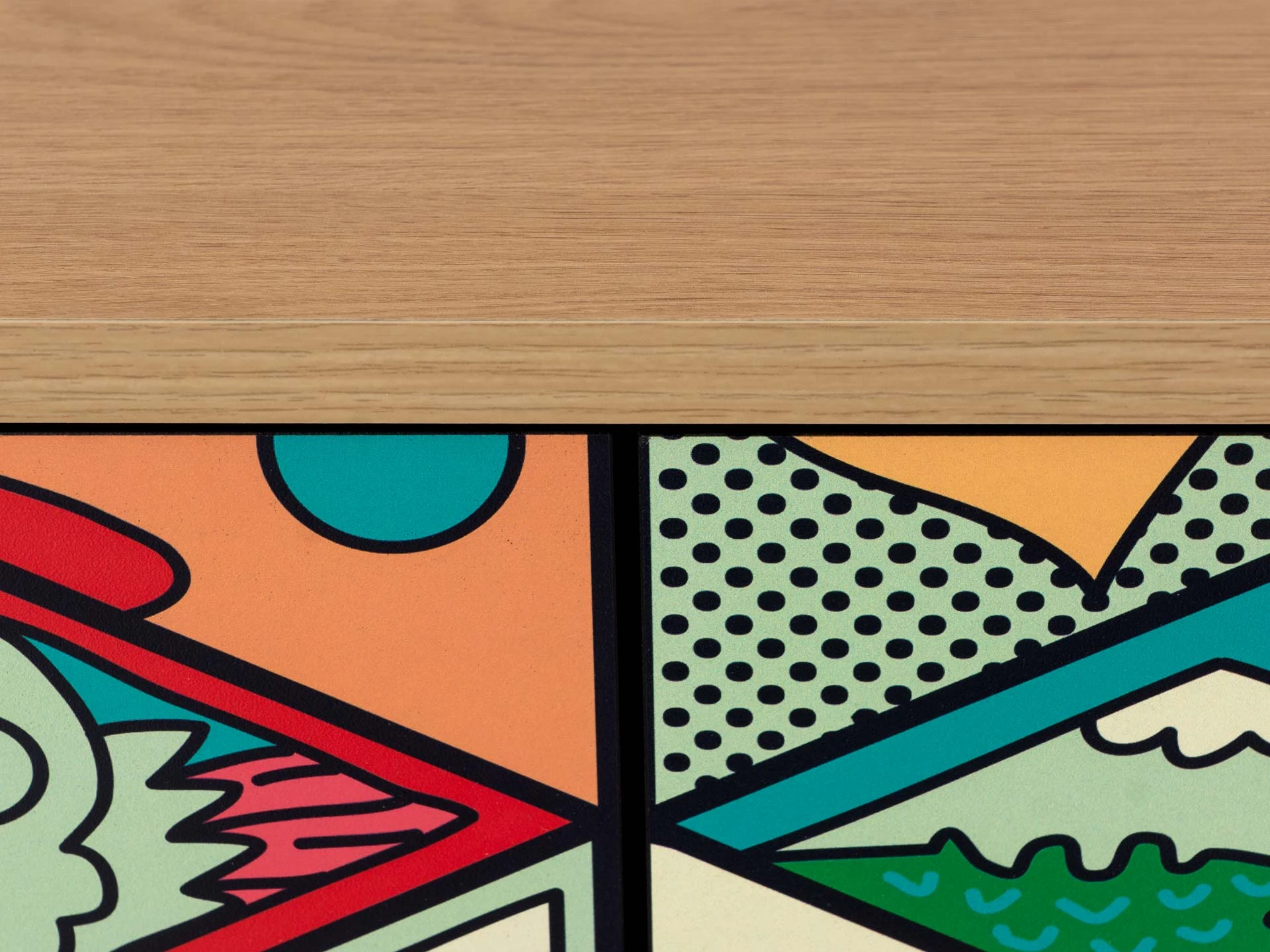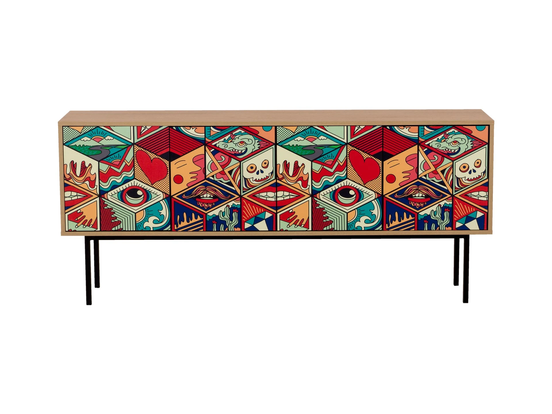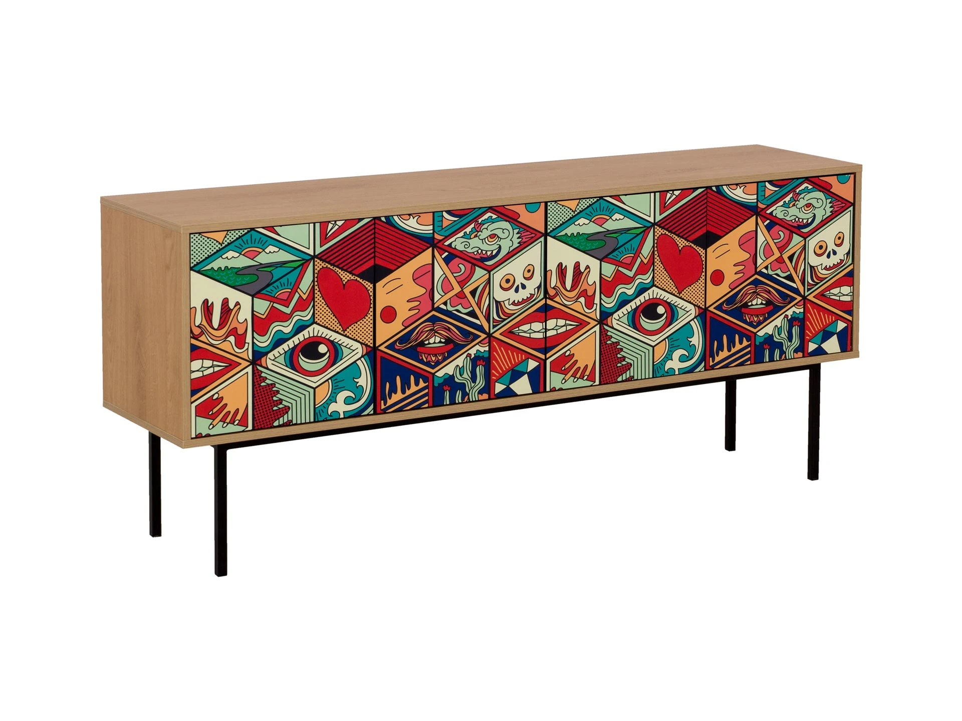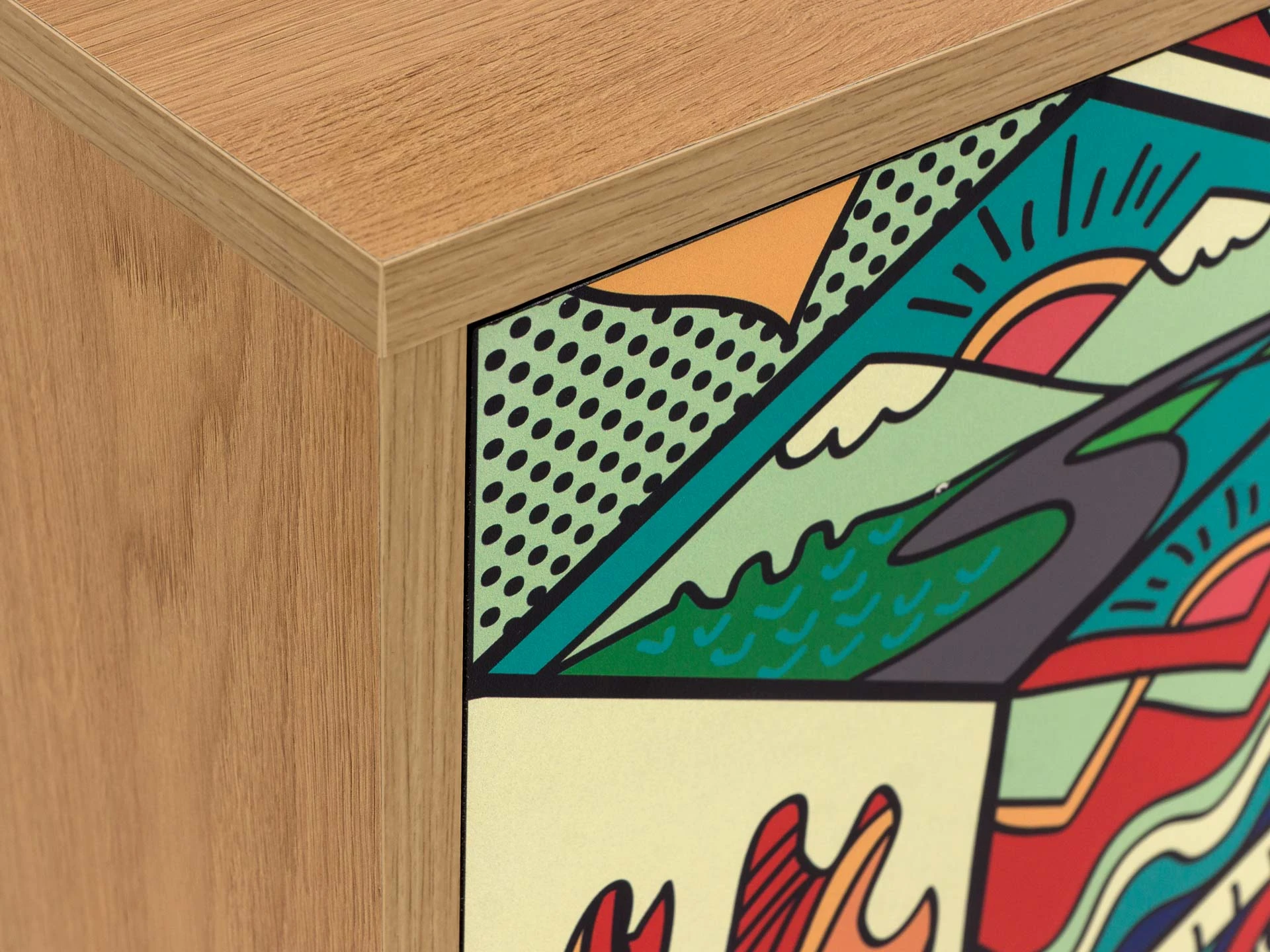 Коллекция Boho Color — более 40 комбинаций изящных тумб, шкафов, консолей с оригинальными принтами на фасадах. Узор напечатан на ЛДСП, остаётся ярким и насыщенным спустя годы использования, не выцветает, не тускнеет, смотрится красиво и актуально. Изделия станут притягательной фишкой гостиной, спальни, детской, кабинета, творческой студии, лаундж и бьюти-зоны. За их насыщенными данными скрывается функциональность, которая гарантирует удобное размещение необходимых вещей. Характерная черта серии — тонкие, но прочные металлические ножки. Которые контрастируют с четкими прямоугольными формами, что придает мебели легкий воздушный вид. Поэтому предметы Boho Color не перегружают пространство. Экзотические мотивы, растительные орнаменты, тропические цветы, колоритные узоры рисуют расслабленную атмосферу отдыха и приключений. Добавляют интерьеру многослойности, объёма, сочности, теплоты, природной энергетики. С помощью этих деталей можно задать тон общей композиции, расставить необходимые акценты или подчеркнуть индивидуальность интерьера. Высота опор 27 см. Изображение, нанесенное на фасады, устойчиво к выцветанию, истиранию и влаге. Однако длительное воздействие воды, различных растворителей, спиртосодержащих жидкостей и высоких температур, увеличивают риск повреждения целостности покрытия. Поэтому при использовании необходимо соблюдать ряд правил: 1. Протирайте поверхность с рисунком влажной (но не мокрой) тканью. 2. Используйте мягкие ткани, например, салфетки для стекла или зеркал. 3. Не используйте для обработки поверхности с нанесенным на нее рисунком чистящие порошки и средства, в состав которых входят ацетон, растворитель или спирт. 4. Не используйте металлические губки и щетки с жесткой щетиной. 5. Избегайте ударов, падения, царапания, трения изделий с фотопечатью.