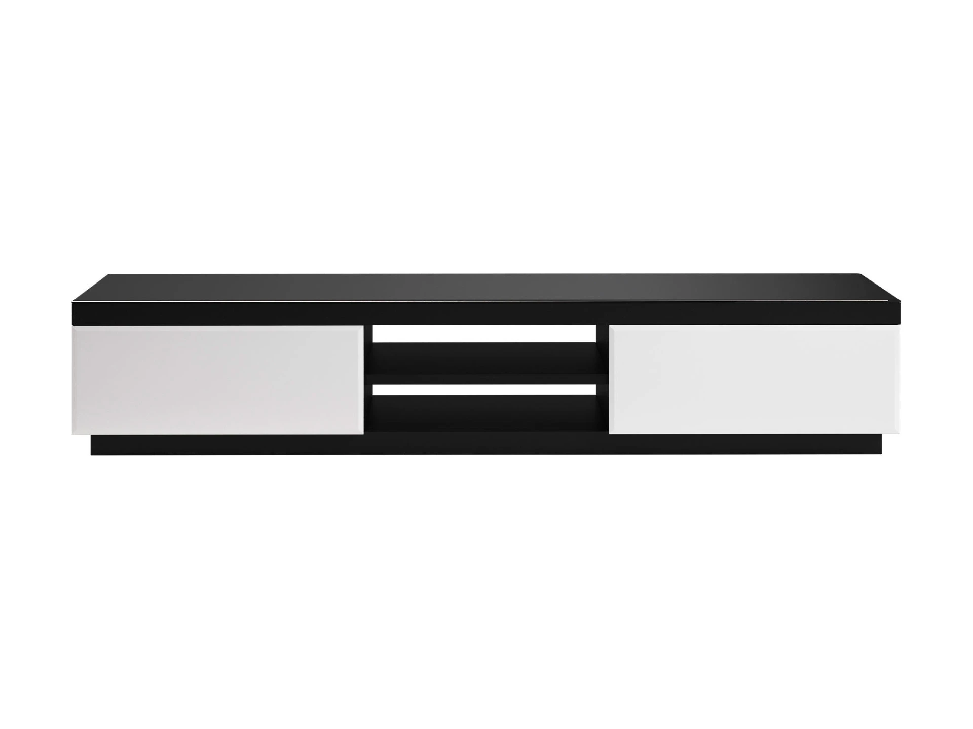 Серия корпусной универсальной мебели с глянцевыми и зеркальными фасадами. Особенностью линейки является прогрессивный актуальный дизайн в минималистичном исполнении. Прямые линии, графичность, сдержанность балансируются отблесками гладких текстур. Отражающие поверхности делают помещение визуально больше, воздушнее, светлее и мягче. Отсутствие ручек избавляет мебель от лишнего визуального шума, позволяя гармонично интегрироваться в любую локацию. Шкафы, комоды, тумбы, серванты, туалетные столики обладают широкими функциональными возможностями и подходят для обустройства спальни, гостиной, апартаментов, отелей, салонов, спа, бьюти-пространств. Плавная и бесшумная эксплуатация происходит за счёт системы Push-to-Open («нажал-открыл»), а также качественной соединительной фурнитуры Hettich, которая отличается долгим сроком службы. Лаконичные изделия помогут организовать хранение одежды, текстиля, канцелярии, косметики, техники и других вещей. В интерьере возьмут на себя роль практичных помощников с эффектным акцентом. Тумба для телеаппаратуры с двумя выдвижными ящиками и полкой между ними.|Фасадные стенки ящиков и верхняя поверхность тумбы декорированы стеклом.|Ящики открываются по принципу «нажал-открыл».