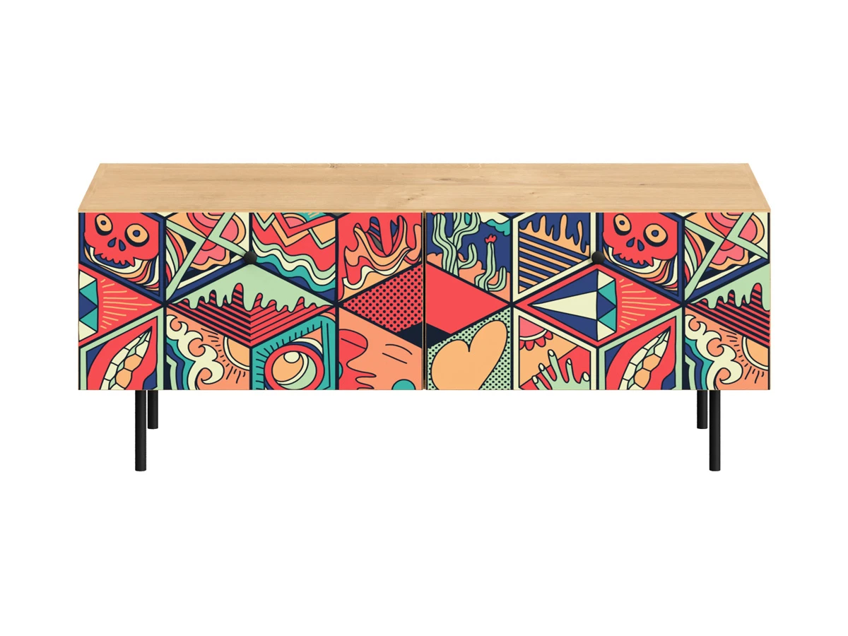 Корпусная мебель, с которой можно составить множество решений для гостиной, детской, кухни, спальни, прихожей, рабочей зоны. Комоды, шкафы, тумбы, столы, витрины, полки, серванты характеризуются универсальностью, многозадачностью, надёжными устойчивыми конструкциями. Имеют выразительный внешний вид, вдохновленный направлением ретро. Смотрятся легко и воздушно за счет деревянных ножек, минимального количества декоративных элементов, спокойных природных оттенков. Их можно использовать в качестве систем хранения, элементов для зонирования, фокусных точек. В дизайне ярко выражена доминанта прямых форм, графичности, лаконичных линий и элегантного исполнения. Что даёт пространству ощущение размеренности, сбалансированности, упорядоченности. Подходят интерьерам как с нейтральной базой, так и локациям с интенсивными цветовыми блоками. Индивидуальности добавят модели с оригинальными паттернами на фасадах. Предметы коллекции Frida гармонично впишутся в эклектичные и стилизованные интерьеры. Ручки входят в стоимость изделия. Высота опор 160 мм. Изображение, нанесенное на фасады, устойчиво к выцветанию, истиранию и влаге. Однако длительное воздействие воды, различных растворителей, спиртосодержащих жидкостей и высоких температур, увеличивают риск повреждения целостности покрытия. Поэтому при использовании необходимо соблюдать ряд правил: 1. Протирайте поверхность с рисунком влажной (но не мокрой) тканью. 2. Используйте мягкие ткани, например, салфетки для стекла или зеркал. 3. Не используйте для обработки поверхности с нанесенным на нее рисунком чистящие порошки и средства, в состав которых входят ацетон, растворитель или спирт. 4. Не используйте металлические губки и щетки с жесткой щетиной. 5. Избегайте ударов, падения, царапания, трения изделий с фотопечатью.