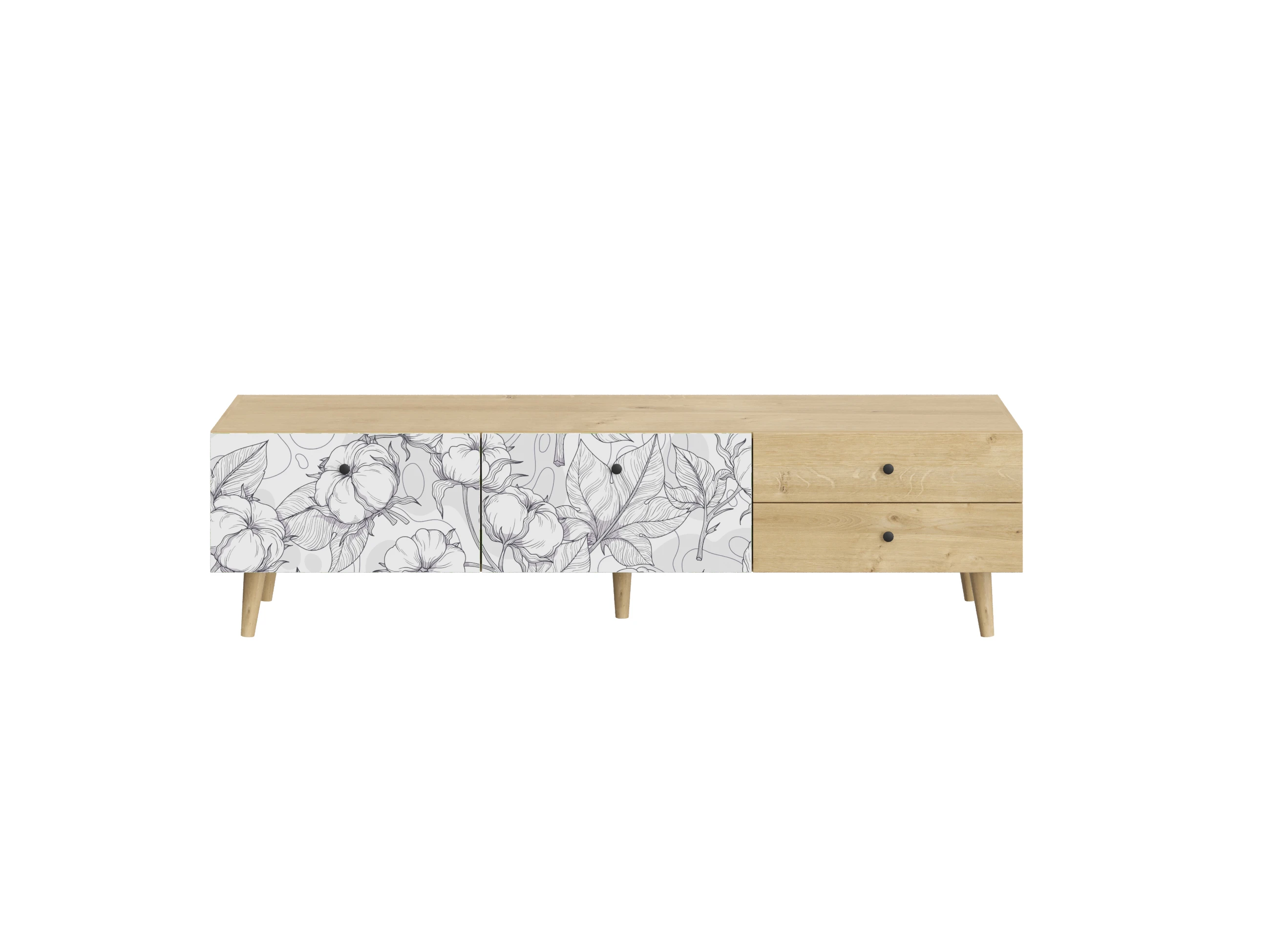 Корпусная мебель, с которой можно составить множество решений для гостиной, детской, кухни, спальни, прихожей, рабочей зоны. Комоды, шкафы, тумбы, столы, витрины, полки, серванты характеризуются универсальностью, многозадачностью, надёжными устойчивыми конструкциями. Имеют выразительный внешний вид, вдохновленный направлением ретро. Смотрятся легко и воздушно за счет деревянных ножек, минимального количества декоративных элементов, спокойных природных оттенков. Их можно использовать в качестве систем хранения, элементов для зонирования, фокусных точек. В дизайне ярко выражена доминанта прямых форм, графичности, лаконичных линий и элегантного исполнения. Что даёт пространству ощущение размеренности, сбалансированности, упорядоченности. Подходят интерьерам как с нейтральной базой, так и локациям с интенсивными цветовыми блоками. Индивидуальности добавят модели с оригинальными паттернами на фасадах. Предметы коллекции Frida гармонично впишутся в эклектичные и стилизованные интерьеры. Ручки входят в стоимость изделия. Высота опор 160 мм. Изображение, нанесенное на фасады, устойчиво к выцветанию, истиранию и влаге. Однако длительное воздействие воды, различных растворителей, спиртосодержащих жидкостей и высоких температур, увеличивают риск повреждения целостности покрытия. Поэтому при использовании необходимо соблюдать ряд правил: 1. Протирайте поверхность с рисунком влажной (но не мокрой) тканью. 2. Используйте мягкие ткани, например, салфетки для стекла или зеркал. 3. Не используйте для обработки поверхности с нанесенным на нее рисунком чистящие порошки и средства, в состав которых входят ацетон, растворитель или спирт. 4. Не используйте металлические губки и щетки с жесткой щетиной. 5. Избегайте ударов, падения, царапания, трения изделий с фотопечатью.