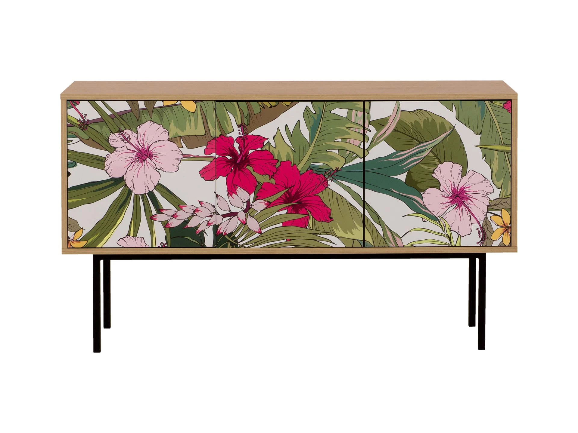 Коллекция Boho Color — более 40 комбинаций изящных тумб, шкафов, консолей с оригинальными принтами на фасадах. Узор напечатан на ЛДСП, остаётся ярким и насыщенным спустя годы использования, не выцветает, не тускнеет, смотрится красиво и актуально. Изделия станут притягательной фишкой гостиной, спальни, детской, кабинета, творческой студии, лаундж и бьюти-зоны. За их насыщенными данными скрывается функциональность, которая гарантирует удобное размещение необходимых вещей. Характерная черта серии — тонкие, но прочные металлические ножки. Которые контрастируют с четкими прямоугольными формами, что придает мебели легкий воздушный вид. Поэтому предметы Boho Color не перегружают пространство. Экзотические мотивы, растительные орнаменты, тропические цветы, колоритные узоры рисуют расслабленную атмосферу отдыха и приключений. Добавляют интерьеру многослойности, объёма, сочности, теплоты, природной энергетики. С помощью этих деталей можно задать тон общей композиции, расставить необходимые акценты или подчеркнуть индивидуальность интерьера. Высота опор 27 см. Изображение, нанесенное на фасады, устойчиво к выцветанию, истиранию и влаге. Однако длительное воздействие воды, различных растворителей, спиртосодержащих жидкостей и высоких температур, увеличивают риск повреждения целостности покрытия. Поэтому при использовании необходимо соблюдать ряд правил: 1. Протирайте поверхность с рисунком влажной (но не мокрой) тканью. 2. Используйте мягкие ткани, например, салфетки для стекла или зеркал. 3. Не используйте для обработки поверхности с нанесенным на нее рисунком чистящие порошки и средства, в состав которых входят ацетон, растворитель или спирт. 4. Не используйте металлические губки и щетки с жесткой щетиной. 5. Избегайте ударов, падения, царапания, трения изделий с фотопечатью.