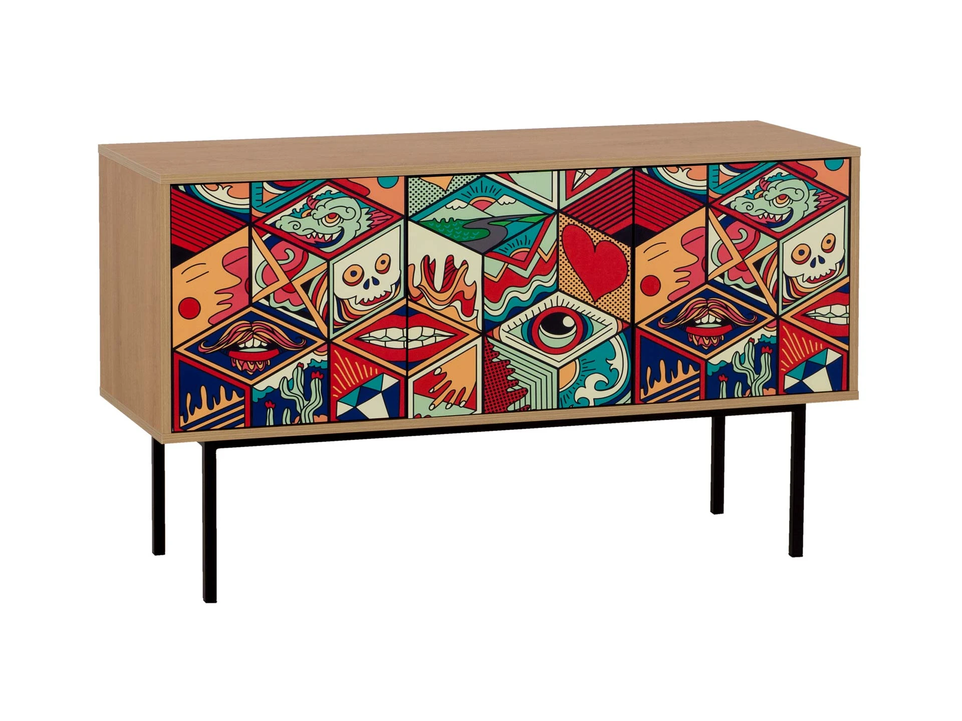 Коллекция Boho Color — более 40 комбинаций изящных тумб, шкафов, консолей с оригинальными принтами на фасадах. Узор напечатан на ЛДСП, остаётся ярким и насыщенным спустя годы использования, не выцветает, не тускнеет, смотрится красиво и актуально. Изделия станут притягательной фишкой гостиной, спальни, детской, кабинета, творческой студии, лаундж и бьюти-зоны. За их насыщенными данными скрывается функциональность, которая гарантирует удобное размещение необходимых вещей. Характерная черта серии — тонкие, но прочные металлические ножки. Которые контрастируют с четкими прямоугольными формами, что придает мебели легкий воздушный вид. Поэтому предметы Boho Color не перегружают пространство. Экзотические мотивы, растительные орнаменты, тропические цветы, колоритные узоры рисуют расслабленную атмосферу отдыха и приключений. Добавляют интерьеру многослойности, объёма, сочности, теплоты, природной энергетики. С помощью этих деталей можно задать тон общей композиции, расставить необходимые акценты или подчеркнуть индивидуальность интерьера. Высота опор 27 см. Изображение, нанесенное на фасады, устойчиво к выцветанию, истиранию и влаге. Однако длительное воздействие воды, различных растворителей, спиртосодержащих жидкостей и высоких температур, увеличивают риск повреждения целостности покрытия. Поэтому при использовании необходимо соблюдать ряд правил: 1. Протирайте поверхность с рисунком влажной (но не мокрой) тканью. 2. Используйте мягкие ткани, например, салфетки для стекла или зеркал. 3. Не используйте для обработки поверхности с нанесенным на нее рисунком чистящие порошки и средства, в состав которых входят ацетон, растворитель или спирт. 4. Не используйте металлические губки и щетки с жесткой щетиной. 5. Избегайте ударов, падения, царапания, трения изделий с фотопечатью.