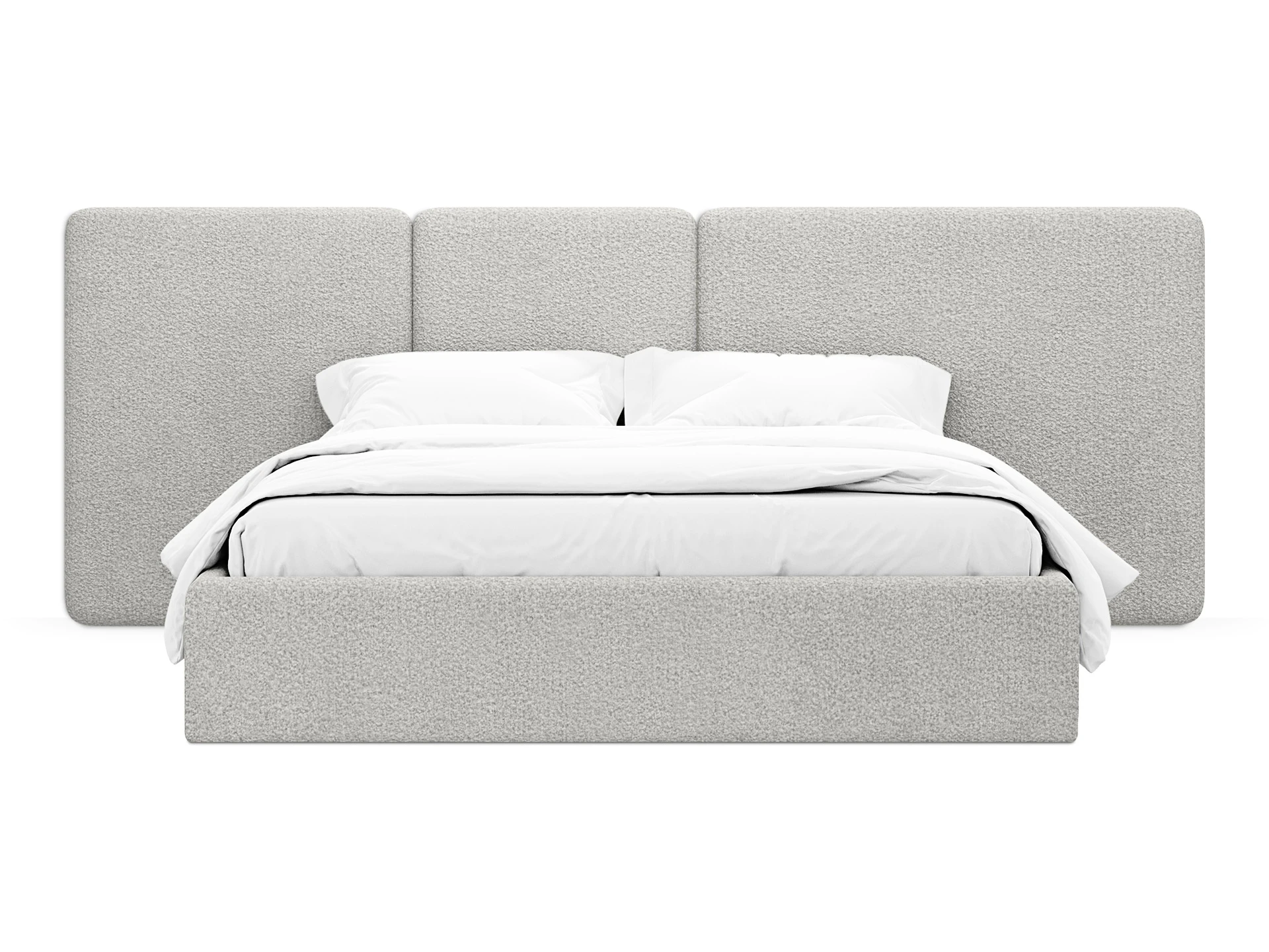 Кровать Atessa — модель с акцентной геометрией и мягкими панелями в изголовье. Широкое настенное изголовье состоит из отдельных модулей, что позволяет комбинировать оттенки обивки для создания уникальных цветовых решений. Мягкая обшивка царг обеспечивает тактильный комфорт по периметру спального места. Конструктив и материалы: • Каркас и основание: Корпус кровати — царги из ЛДСтП 22 мм. В основании установлены пластиковые опоры высотой 49 мм. • Изголовье: Мягкие настенные панели. Внутренний каркас панелей — березовая фанера. • Обивка: Панели изголовья: чехол несъемный. Царги: чехол съемный. • Опции: Доступна комплектация с подъемным механизмом или без него (стационарное основание). Функциональность: Модель рассчитана на стандартное спальное место 1600х2000 мм. Мягкое изголовье обеспечивает комфорт при отдыхе сидя (чтение, просмотр видео). Благодаря модульной структуре панелей кровать легко адаптируется под геометрию стены и интерьер, выступая центральным элементом спальни. Подходит для современных жилых пространств.