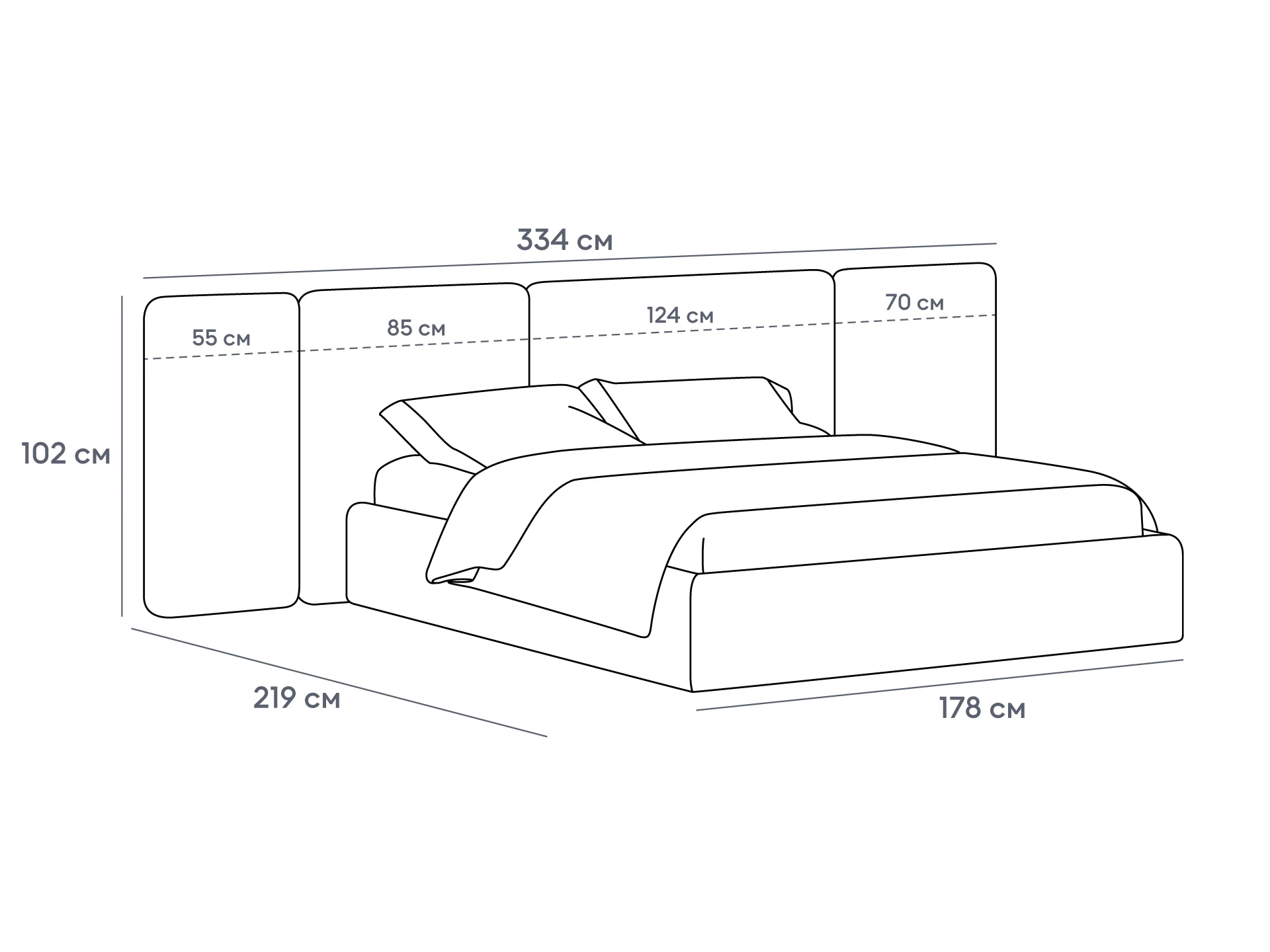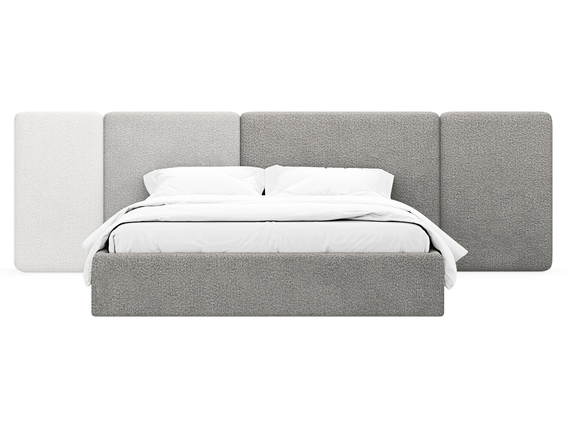 Кровать Atessa — модель с акцентной геометрией и мягкими панелями в изголовье. Широкое настенное изголовье состоит из отдельных модулей, что позволяет комбинировать оттенки обивки для создания уникальных цветовых решений. Мягкая обшивка царг обеспечивает тактильный комфорт по периметру спального места. Конструктив и материалы: • Каркас и основание: Корпус кровати — царги из ЛДСтП 22 мм. В основании установлены пластиковые опоры высотой 49 мм. • Изголовье: Мягкие настенные панели. Внутренний каркас панелей — березовая фанера. • Обивка: Панели изголовья: чехол несъемный. Царги: чехол съемный. • Опции: Доступна комплектация с подъемным механизмом или без него (стационарное основание). Функциональность: Модель рассчитана на стандартное спальное место 1600х2000 мм. Мягкое изголовье обеспечивает комфорт при отдыхе сидя (чтение, просмотр видео). Благодаря модульной структуре панелей кровать легко адаптируется под геометрию стены и интерьер, выступая центральным элементом спальни. Подходит для современных жилых пространств.