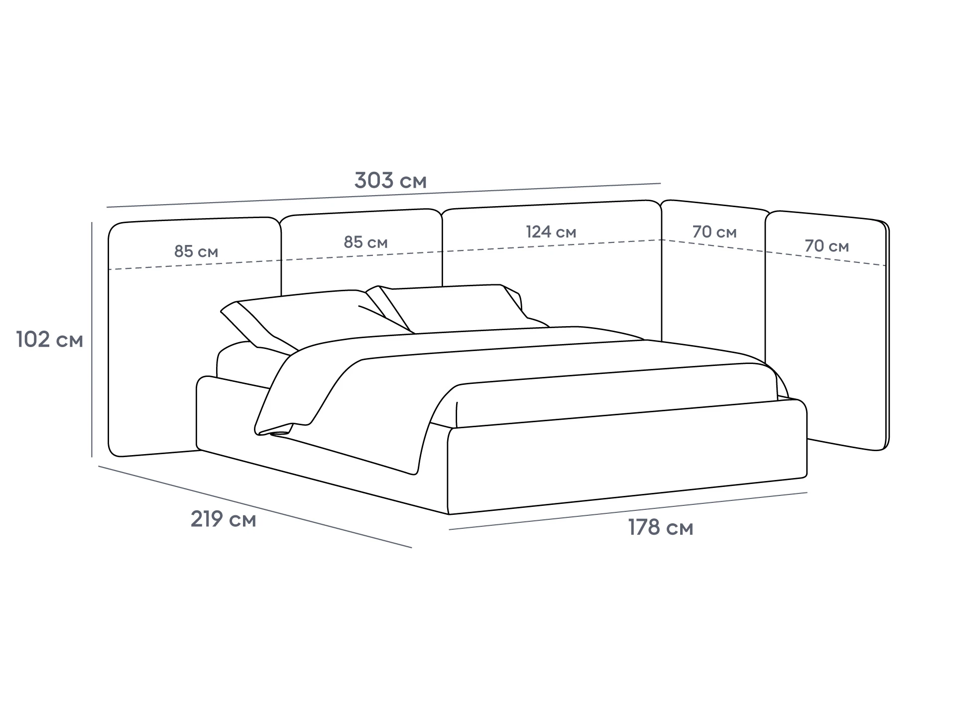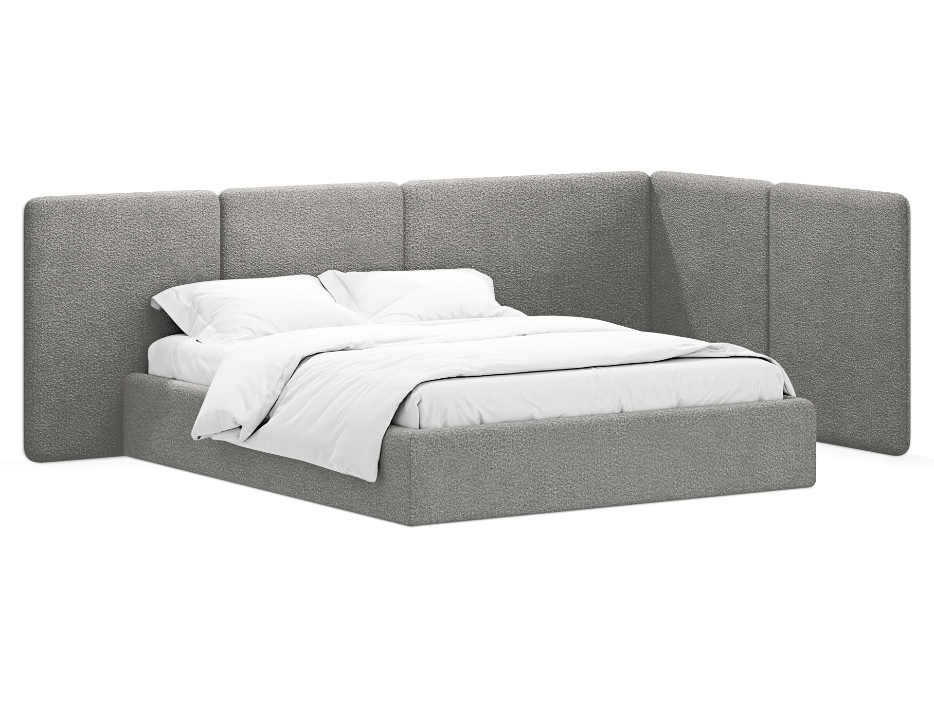 Кровать Atessa — модель с акцентной геометрией и мягкими панелями в изголовье. Широкое настенное изголовье состоит из отдельных модулей, что позволяет комбинировать оттенки обивки для создания уникальных цветовых решений. Мягкая обшивка царг обеспечивает тактильный комфорт по периметру спального места. Конструктив и материалы: • Каркас и основание: Корпус кровати — царги из ЛДСтП 22 мм. В основании установлены пластиковые опоры высотой 49 мм. • Изголовье: Мягкие настенные панели. Внутренний каркас панелей — березовая фанера. • Обивка: Панели изголовья: чехол несъемный. Царги: чехол съемный. • Опции: Доступна комплектация с подъемным механизмом или без него (стационарное основание). Функциональность: Модель рассчитана на стандартное спальное место 1600х2000 мм. Мягкое изголовье обеспечивает комфорт при отдыхе сидя (чтение, просмотр видео). Благодаря модульной структуре панелей кровать легко адаптируется под геометрию стены и интерьер, выступая центральным элементом спальни. Подходит для современных жилых пространств.