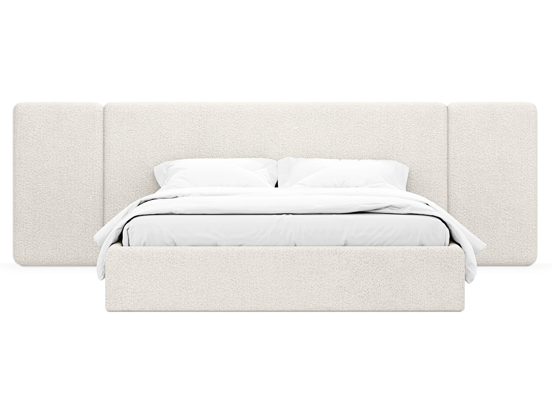 Кровать Atessa — модель с акцентной геометрией и мягкими панелями в изголовье. Широкое настенное изголовье состоит из отдельных модулей, что позволяет комбинировать оттенки обивки для создания уникальных цветовых решений. Мягкая обшивка царг обеспечивает тактильный комфорт по периметру спального места. Конструктив и материалы: • Каркас и основание: Корпус кровати — царги из ЛДСтП 22 мм. В основании установлены пластиковые опоры высотой 49 мм. • Изголовье: Мягкие настенные панели. Внутренний каркас панелей — березовая фанера. • Обивка: Панели изголовья: чехол несъемный. Царги: чехол съемный. • Опции: Доступна комплектация с подъемным механизмом или без него (стационарное основание). Функциональность: Модель рассчитана на стандартное спальное место 1600х2000 мм. Мягкое изголовье обеспечивает комфорт при отдыхе сидя (чтение, просмотр видео). Благодаря модульной структуре панелей кровать легко адаптируется под геометрию стены и интерьер, выступая центральным элементом спальни. Подходит для современных жилых пространств.