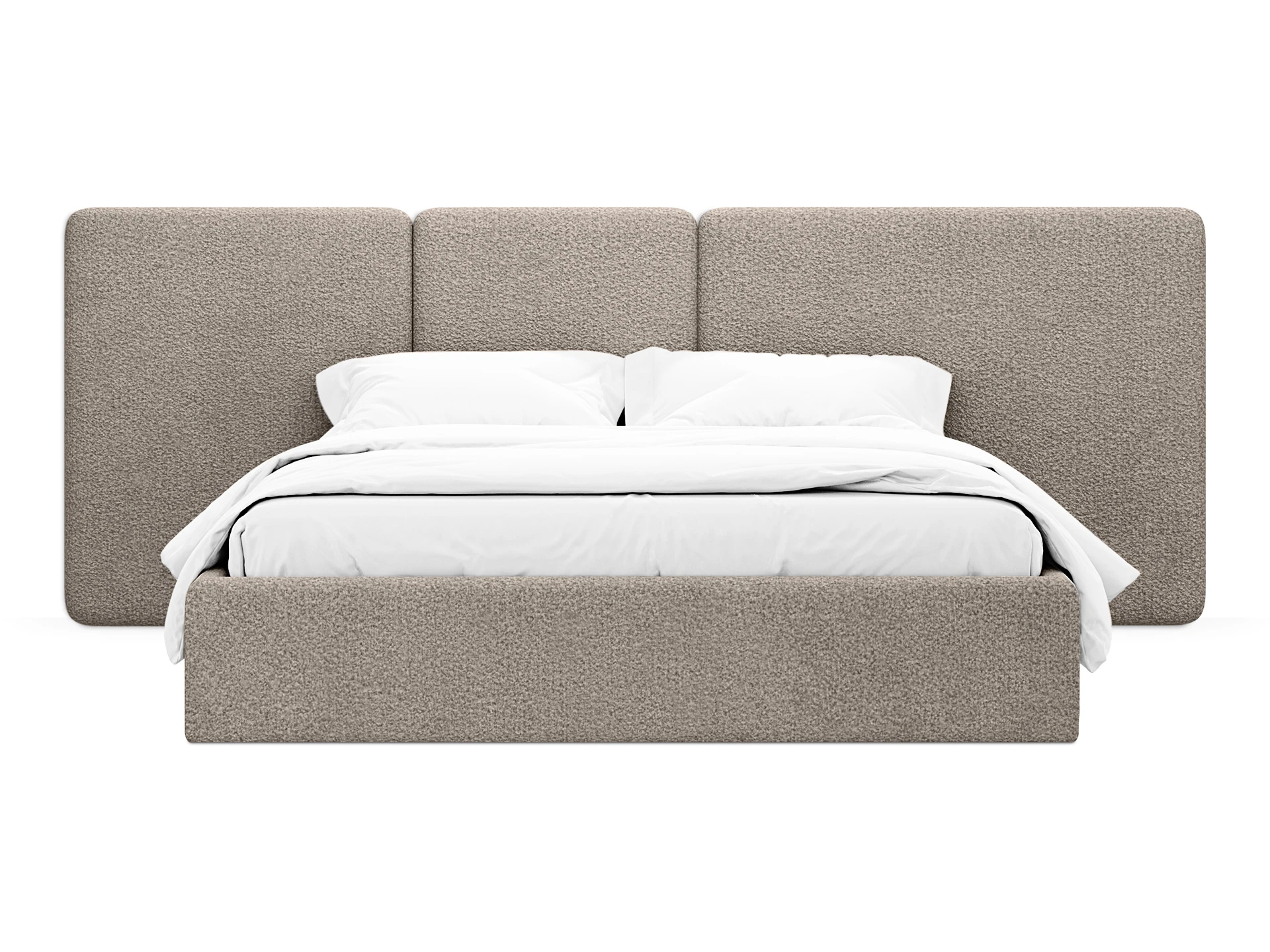Кровать Atessa — модель с акцентной геометрией и мягкими панелями в изголовье. Широкое настенное изголовье состоит из отдельных модулей, что позволяет комбинировать оттенки обивки для создания уникальных цветовых решений. Мягкая обшивка царг обеспечивает тактильный комфорт по периметру спального места. Конструктив и материалы: • Каркас и основание: Корпус кровати — царги из ЛДСтП 22 мм. В основании установлены пластиковые опоры высотой 49 мм. • Изголовье: Мягкие настенные панели. Внутренний каркас панелей — березовая фанера. • Обивка: Панели изголовья: чехол несъемный. Царги: чехол съемный. • Опции: Доступна комплектация с подъемным механизмом или без него (стационарное основание). Функциональность: Модель рассчитана на стандартное спальное место 1600х2000 мм. Мягкое изголовье обеспечивает комфорт при отдыхе сидя (чтение, просмотр видео). Благодаря модульной структуре панелей кровать легко адаптируется под геометрию стены и интерьер, выступая центральным элементом спальни. Подходит для современных жилых пространств.
