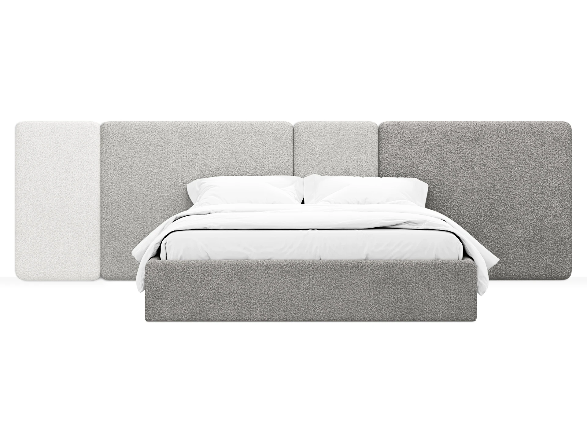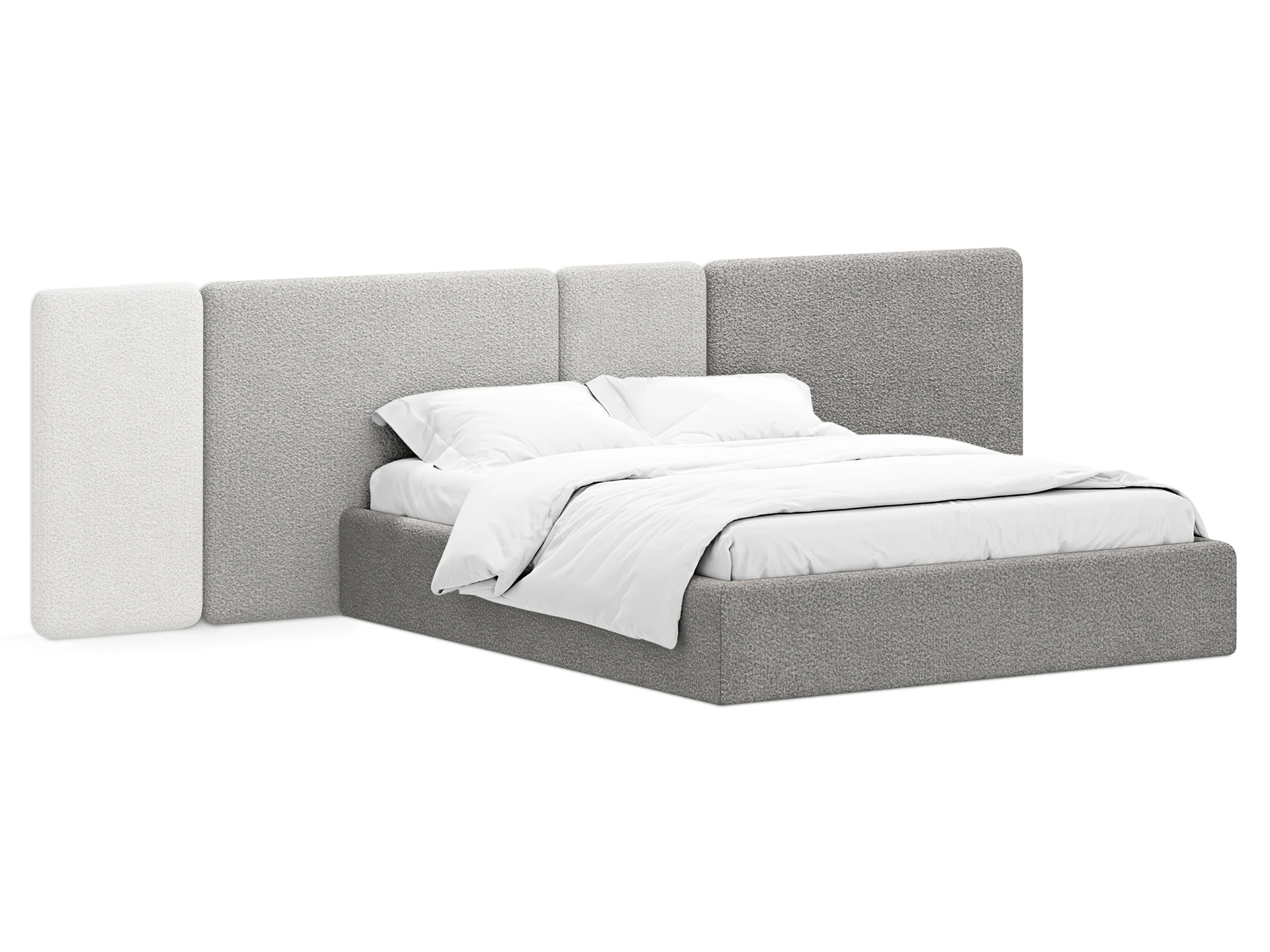 Кровать Atessa — модель с акцентной геометрией и мягкими панелями в изголовье. Широкое настенное изголовье состоит из отдельных модулей, что позволяет комбинировать оттенки обивки для создания уникальных цветовых решений. Мягкая обшивка царг обеспечивает тактильный комфорт по периметру спального места. Конструктив и материалы: • Каркас и основание: Корпус кровати — царги из ЛДСтП 22 мм. В основании установлены пластиковые опоры высотой 49 мм. • Изголовье: Мягкие настенные панели. Внутренний каркас панелей — березовая фанера. • Обивка: Панели изголовья: чехол несъемный. Царги: чехол съемный. • Опции: Доступна комплектация с подъемным механизмом или без него (стационарное основание). Функциональность: Модель рассчитана на стандартное спальное место 1600х2000 мм. Мягкое изголовье обеспечивает комфорт при отдыхе сидя (чтение, просмотр видео). Благодаря модульной структуре панелей кровать легко адаптируется под геометрию стены и интерьер, выступая центральным элементом спальни. Подходит для современных жилых пространств.