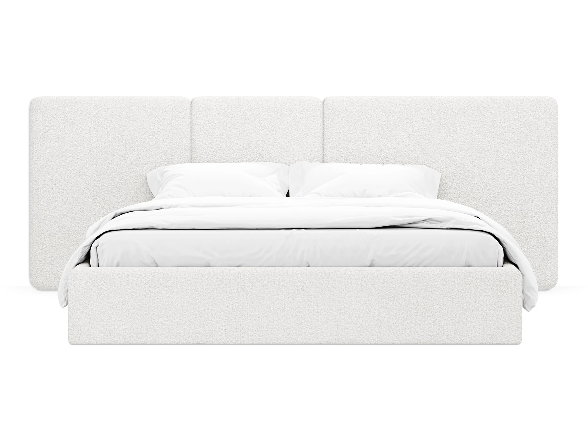 Кровать Atessa — модель с акцентной геометрией и мягкими панелями в изголовье. Широкое настенное изголовье состоит из отдельных модулей, что позволяет комбинировать оттенки обивки для создания уникальных цветовых решений. Мягкая обшивка царг обеспечивает тактильный комфорт по периметру спального места. Конструктив и материалы: • Каркас и основание: Корпус кровати — царги из ЛДСтП 22 мм. В основании установлены пластиковые опоры высотой 49 мм. • Изголовье: Мягкие настенные панели. Внутренний каркас панелей — березовая фанера. • Обивка: Панели изголовья: чехол несъемный. Царги: чехол съемный. • Опции: Доступна комплектация с подъемным механизмом или без него (стационарное основание). Функциональность: Модель рассчитана на стандартное спальное место 1800х2000 мм. Мягкое изголовье обеспечивает комфорт при отдыхе сидя (чтение, просмотр видео). Благодаря модульной структуре панелей кровать легко адаптируется под геометрию стены и интерьер, выступая центральным элементом спальни. Подходит для современных жилых пространств.