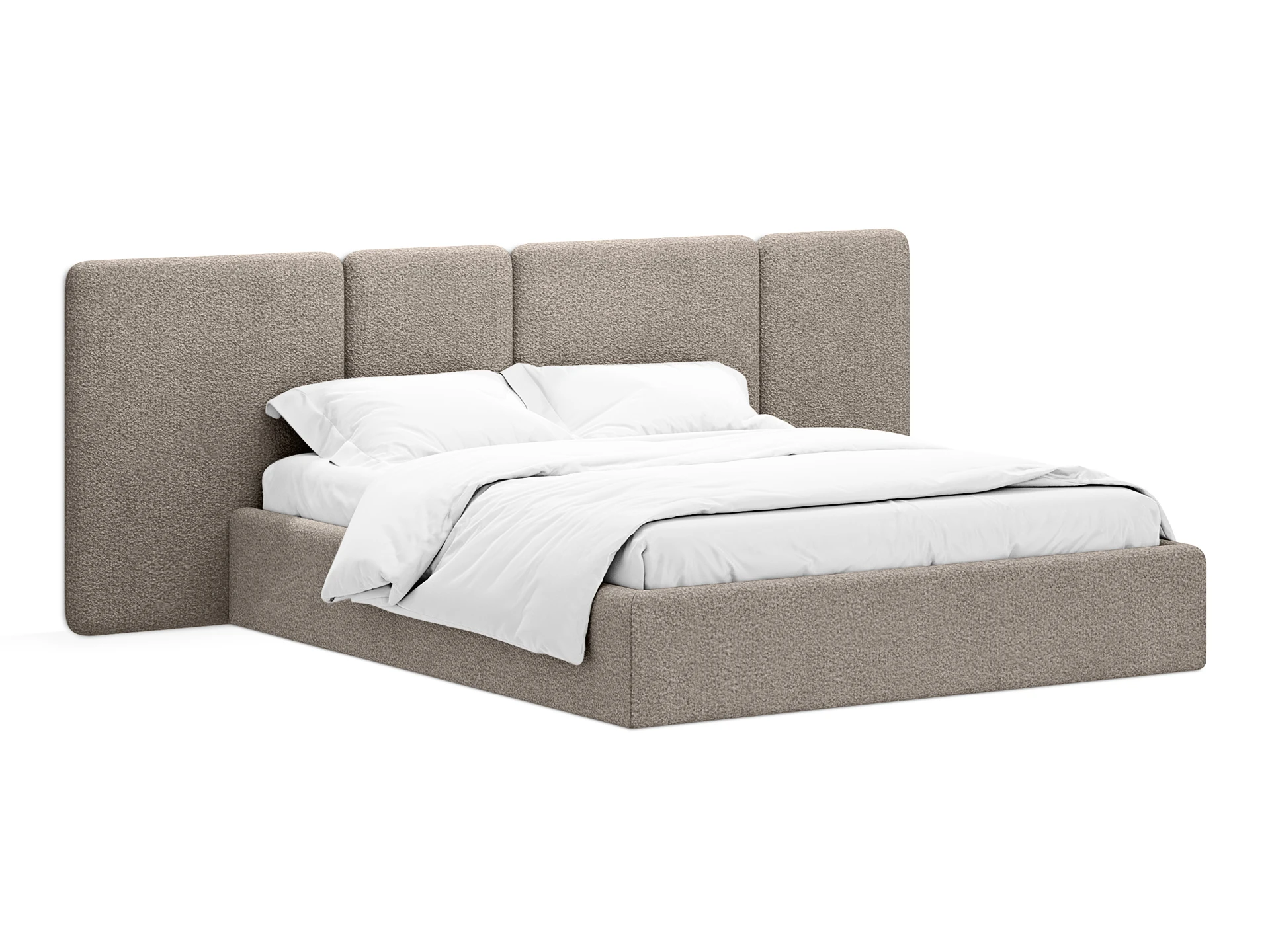 Кровать Atessa — модель с акцентной геометрией и мягкими панелями в изголовье. Широкое настенное изголовье состоит из отдельных модулей, что позволяет комбинировать оттенки обивки для создания уникальных цветовых решений. Мягкая обшивка царг обеспечивает тактильный комфорт по периметру спального места. Конструктив и материалы: • Каркас и основание: Корпус кровати — царги из ЛДСтП 22 мм. В основании установлены пластиковые опоры высотой 49 мм. • Изголовье: Мягкие настенные панели. Внутренний каркас панелей — березовая фанера. • Обивка: Панели изголовья: чехол несъемный. Царги: чехол съемный. • Опции: Доступна комплектация с подъемным механизмом или без него (стационарное основание). Функциональность: Модель рассчитана на стандартное спальное место 1600х2000 мм. Мягкое изголовье обеспечивает комфорт при отдыхе сидя (чтение, просмотр видео). Благодаря модульной структуре панелей кровать легко адаптируется под геометрию стены и интерьер, выступая центральным элементом спальни. Подходит для современных жилых пространств.минуту отдыха комфортной и приятной. Кровать «Atessa» - мягкая каркасная кровать. Каркас панелей состоит из березовой фанеры. Лицевой чехол панелей – несъемный. Царги кровати состоят из щитовых деталей ЛДСтП - 22 мм. В основании кровати установлены пастиковые опоры H49 мм. Лицевой чехол каркаса - съемный. Размер спальное место: 1600х2000 мм.Кровать Atessa — модель с акцентной геометрией и мягкими панелями в изголовье. Широкое настенное изголовье состоит из отдельных модулей, что позволяет комбинировать оттенки обивки для создания уникальных цветовых решений. Мягкая обшивка царг обеспечивает тактильный комфорт по периметру спального места. Конструктив и материалы: • Каркас и основание: Корпус кровати — царги из ЛДСтП 22 мм. В основании установлены пластиковые опоры высотой 49 мм. • Изголовье: Мягкие настенные панели. Внутренний каркас панелей — березовая фанера. • Обивка: Панели изголовья: чехол несъемный. Царги: чехол съемный. • Опции: Доступна комплектация с подъемным механизмом или без него (стационарное основание). Функциональность: Модель рассчитана на стандартное спальное место 1600х2000 мм. Мягкое изголовье обеспечивает комфорт при отдыхе сидя (чтение, просмотр видео). Благодаря модульной структуре панелей кровать легко адаптируется под геометрию стены и интерьер, выступая центральным элементом спальни. Подходит для современных жилых пространств.