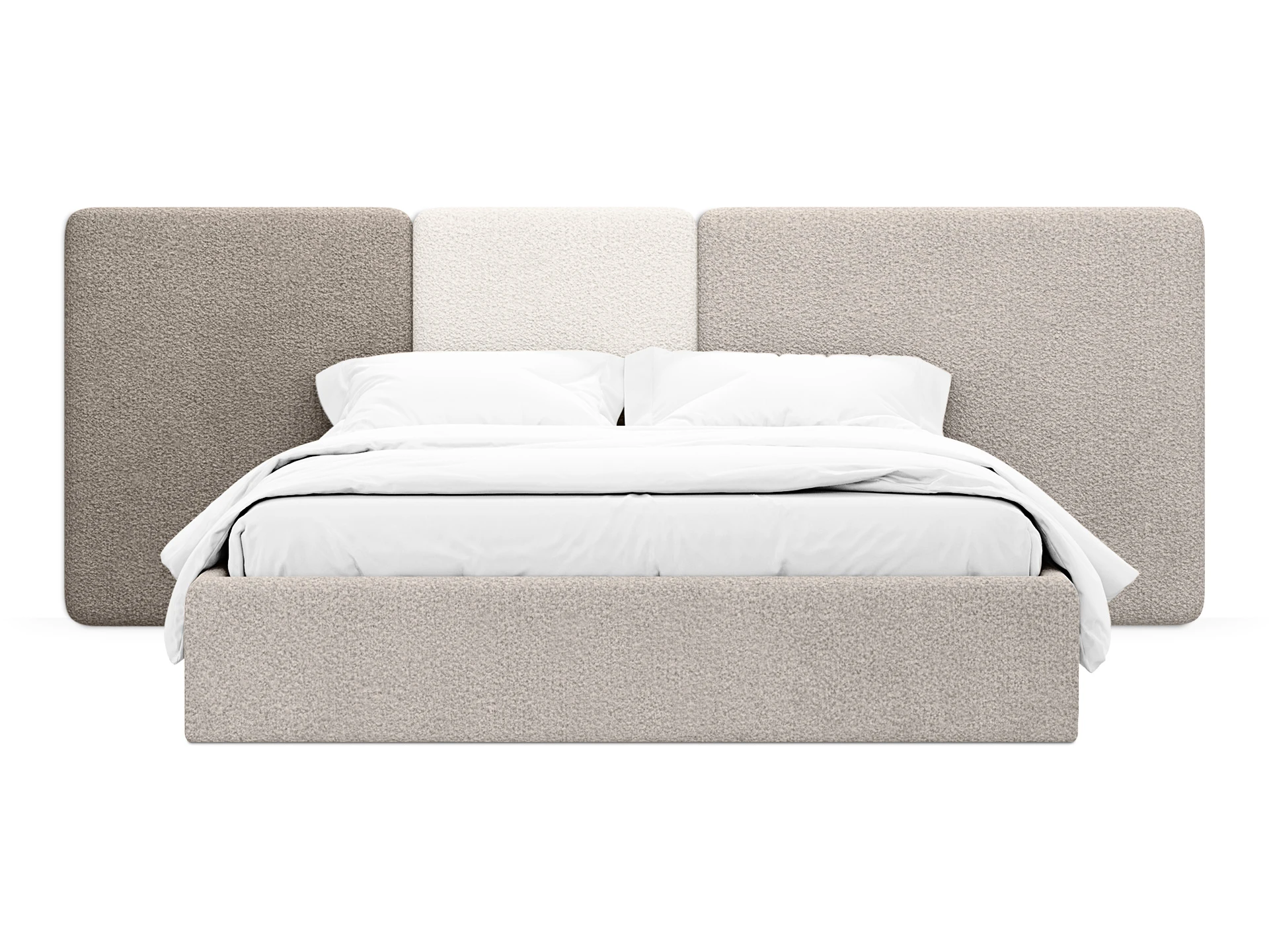 Кровать Atessa — модель с акцентной геометрией и мягкими панелями в изголовье. Широкое настенное изголовье состоит из отдельных модулей, что позволяет комбинировать оттенки обивки для создания уникальных цветовых решений. Мягкая обшивка царг обеспечивает тактильный комфорт по периметру спального места. Конструктив и материалы: • Каркас и основание: Корпус кровати — царги из ЛДСтП 22 мм. В основании установлены пластиковые опоры высотой 49 мм. • Изголовье: Мягкие настенные панели. Внутренний каркас панелей — березовая фанера. • Обивка: Панели изголовья: чехол несъемный. Царги: чехол съемный. • Опции: Доступна комплектация с подъемным механизмом или без него (стационарное основание). Функциональность: Модель рассчитана на стандартное спальное место 1600х2000 мм. Мягкое изголовье обеспечивает комфорт при отдыхе сидя (чтение, просмотр видео). Благодаря модульной структуре панелей кровать легко адаптируется под геометрию стены и интерьер, выступая центральным элементом спальни. Подходит для современных жилых пространств.