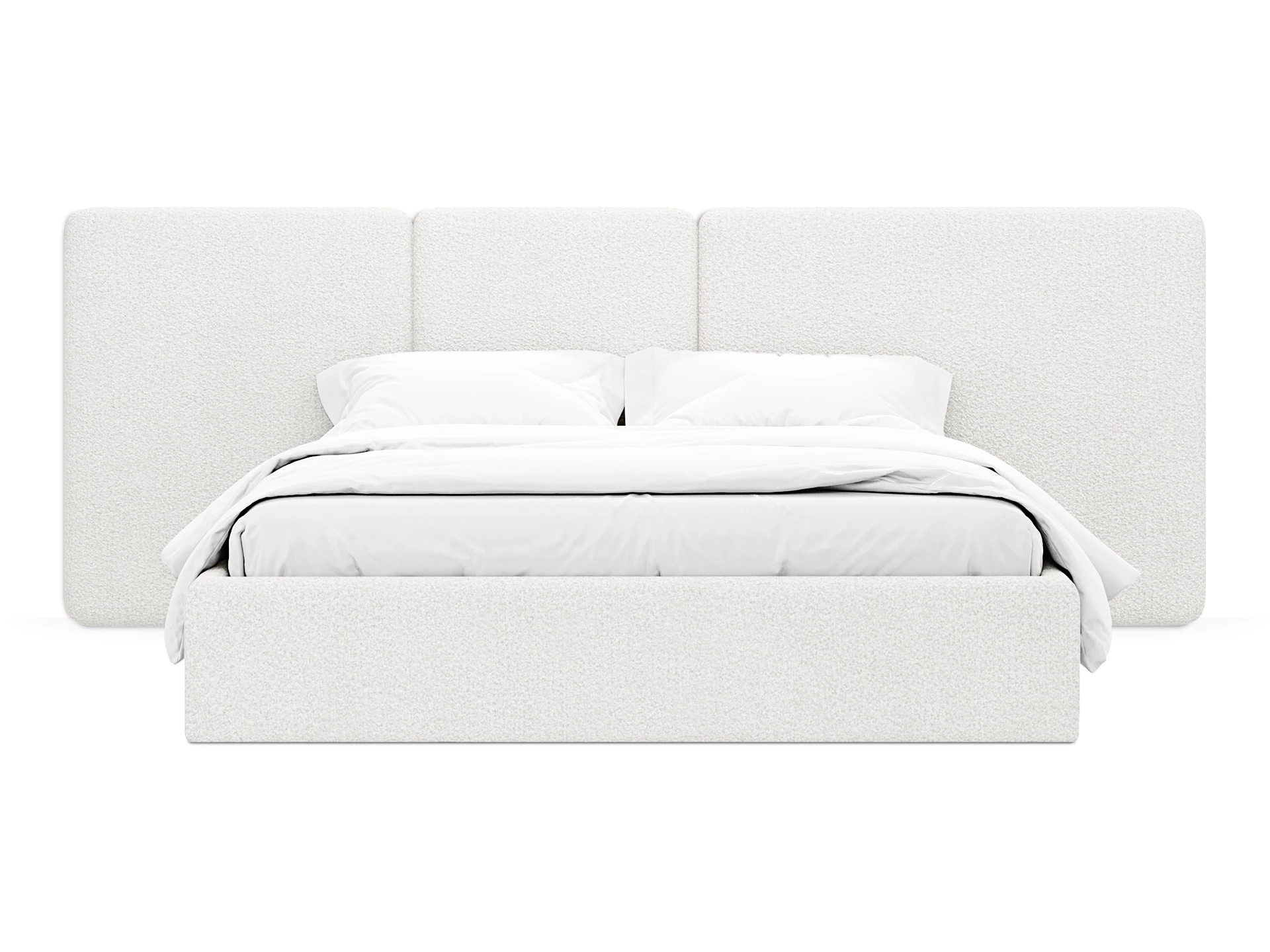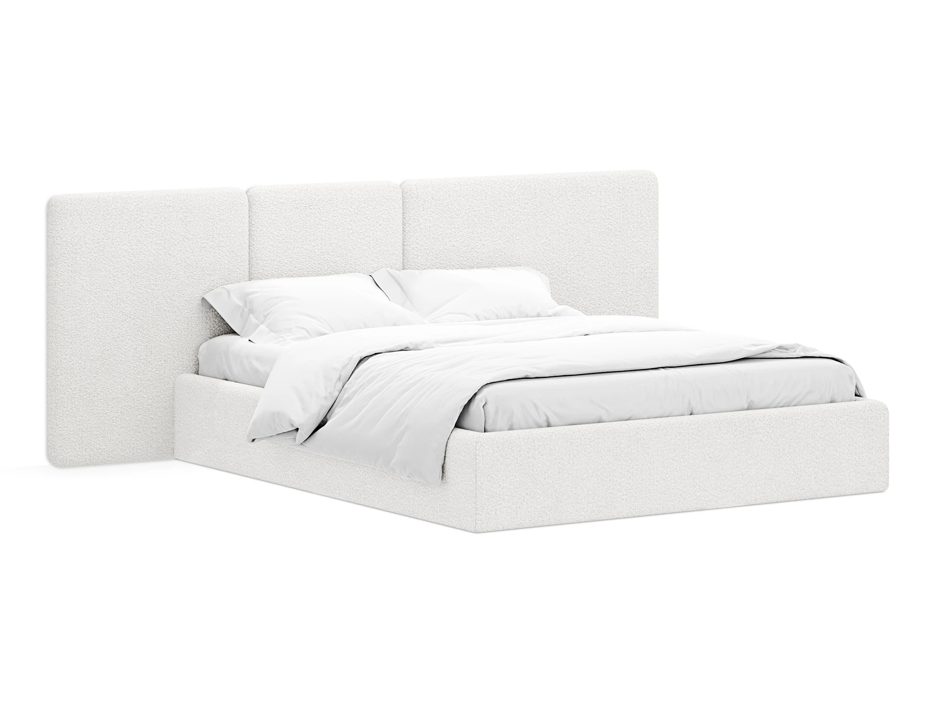 Кровать Atessa — модель с акцентной геометрией и мягкими панелями в изголовье. Широкое настенное изголовье состоит из отдельных модулей, что позволяет комбинировать оттенки обивки для создания уникальных цветовых решений. Мягкая обшивка царг обеспечивает тактильный комфорт по периметру спального места. Конструктив и материалы: • Каркас и основание: Корпус кровати — царги из ЛДСтП 22 мм. В основании установлены пластиковые опоры высотой 49 мм. • Изголовье: Мягкие настенные панели. Внутренний каркас панелей — березовая фанера. • Обивка: Панели изголовья: чехол несъемный. Царги: чехол съемный. • Опции: Доступна комплектация с подъемным механизмом или без него (стационарное основание). Функциональность: Модель рассчитана на стандартное спальное место 1600х2000 мм. Мягкое изголовье обеспечивает комфорт при отдыхе сидя (чтение, просмотр видео). Благодаря модульной структуре панелей кровать легко адаптируется под геометрию стены и интерьер, выступая центральным элементом спальни. Подходит для современных жилых пространств.