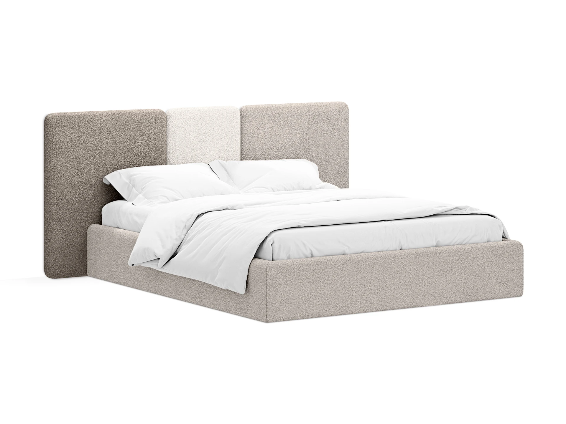 Кровать Atessa — модель с акцентной геометрией и мягкими панелями в изголовье. Широкое настенное изголовье состоит из отдельных модулей, что позволяет комбинировать оттенки обивки для создания уникальных цветовых решений. Мягкая обшивка царг обеспечивает тактильный комфорт по периметру спального места. Конструктив и материалы: • Каркас и основание: Корпус кровати — царги из ЛДСтП 22 мм. В основании установлены пластиковые опоры высотой 49 мм. • Изголовье: Мягкие настенные панели. Внутренний каркас панелей — березовая фанера. • Обивка: Панели изголовья: чехол несъемный. Царги: чехол съемный. • Опции: Доступна комплектация с подъемным механизмом или без него (стационарное основание). Функциональность: Модель рассчитана на стандартное спальное место 1600х2000 мм. Мягкое изголовье обеспечивает комфорт при отдыхе сидя (чтение, просмотр видео). Благодаря модульной структуре панелей кровать легко адаптируется под геометрию стены и интерьер, выступая центральным элементом спальни. Подходит для современных жилых пространств.