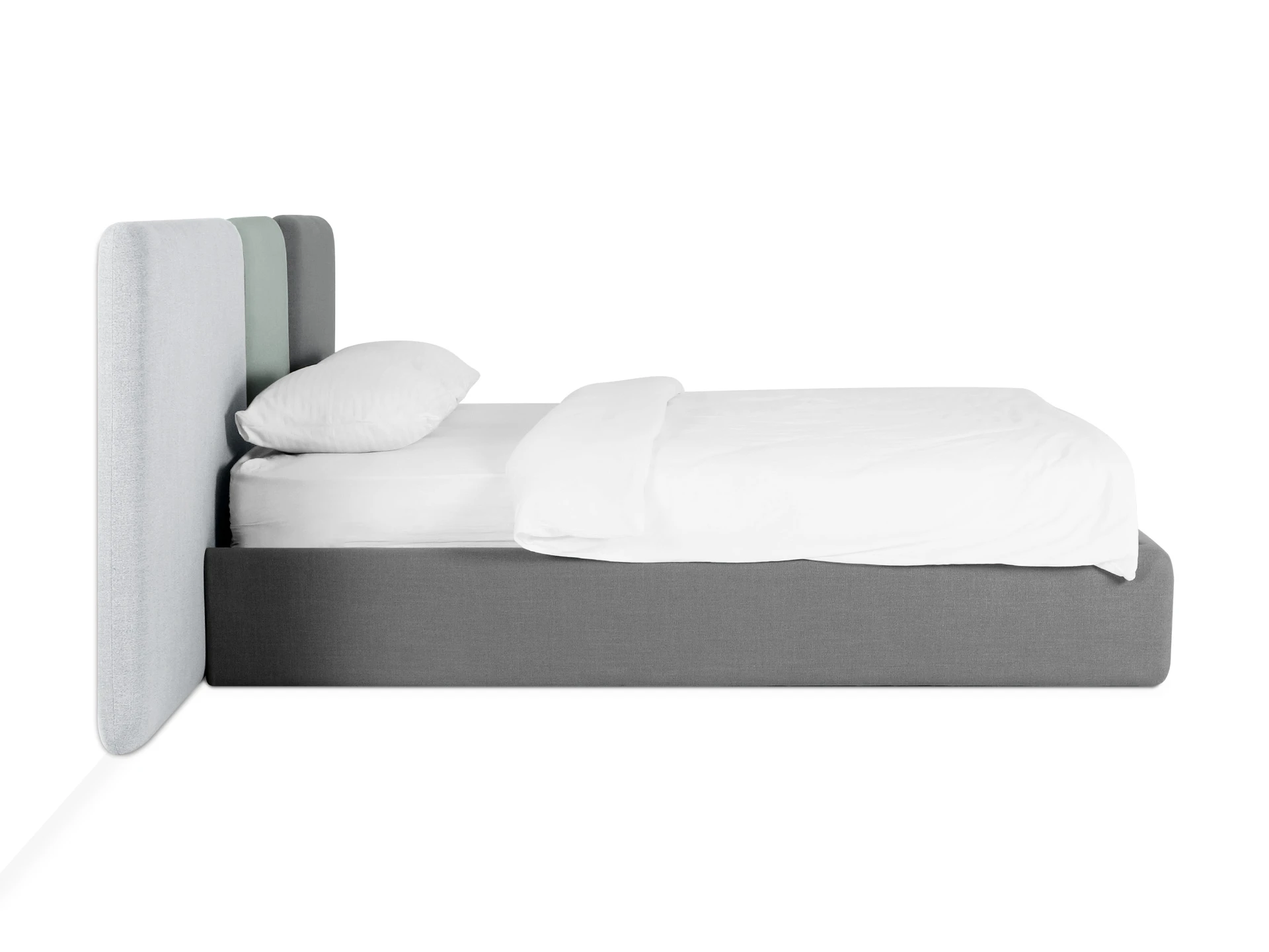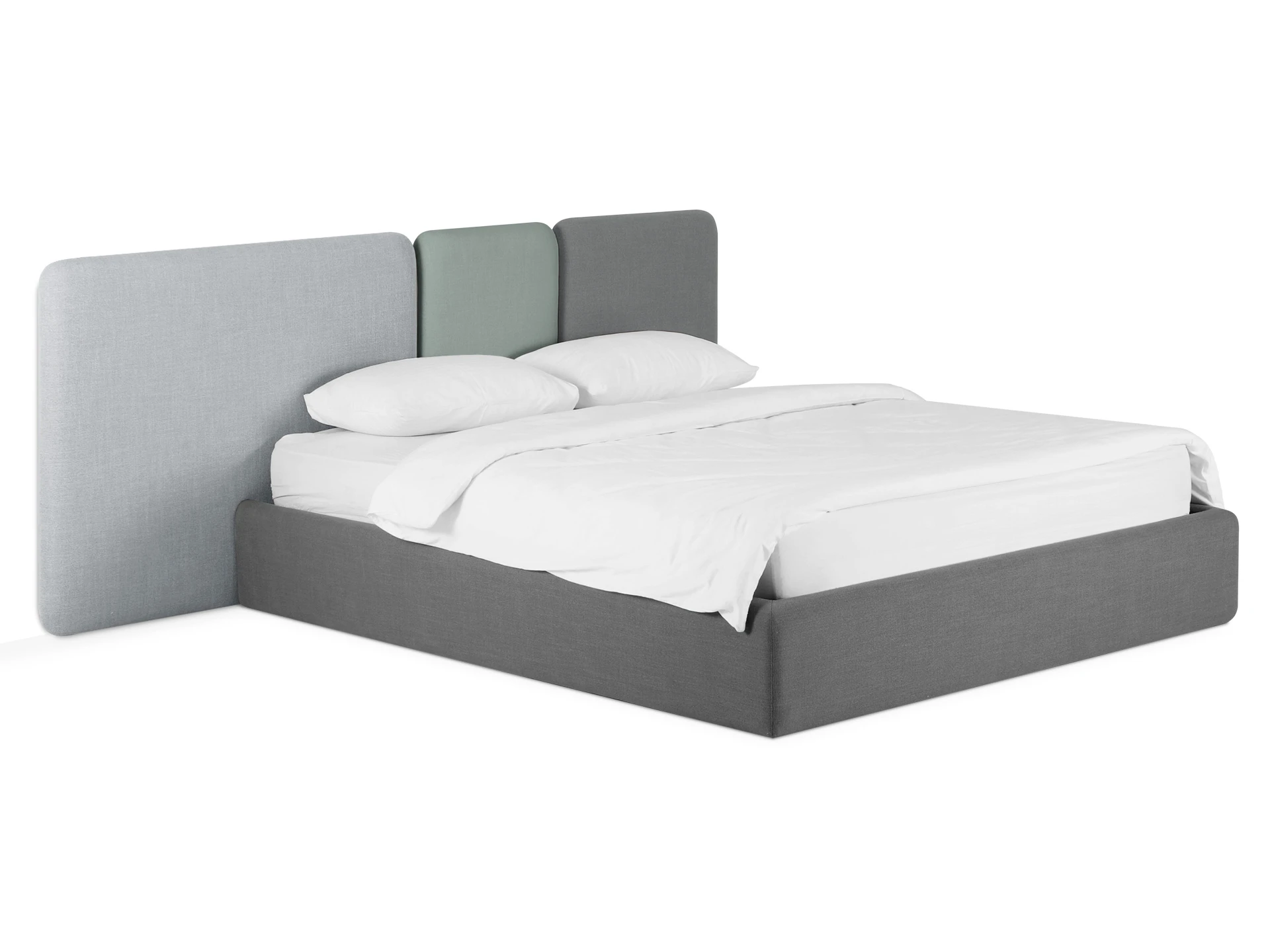 Кровать Atessa — модель с акцентной геометрией и мягкими панелями в изголовье. Широкое настенное изголовье состоит из отдельных модулей, что позволяет комбинировать оттенки обивки для создания уникальных цветовых решений. Мягкая обшивка царг обеспечивает тактильный комфорт по периметру спального места. Конструктив и материалы: • Каркас и основание: Корпус кровати — царги из ЛДСтП 22 мм. В основании установлены пластиковые опоры высотой 49 мм. • Изголовье: Мягкие настенные панели. Внутренний каркас панелей — березовая фанера. • Обивка: Панели изголовья: чехол несъемный. Царги: чехол съемный. • Опции: Доступна комплектация с подъемным механизмом или без него (стационарное основание). Функциональность: Модель рассчитана на стандартное спальное место 1600х2000 мм. Мягкое изголовье обеспечивает комфорт при отдыхе сидя (чтение, просмотр видео). Благодаря модульной структуре панелей кровать легко адаптируется под геометрию стены и интерьер, выступая центральным элементом спальни. Подходит для современных жилых пространств.