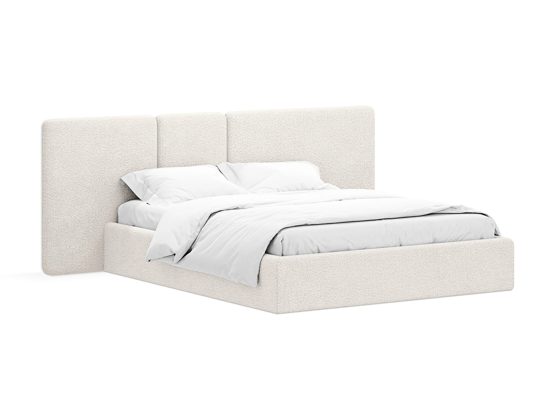 Кровать Atessa — модель с акцентной геометрией и мягкими панелями в изголовье. Широкое настенное изголовье состоит из отдельных модулей, что позволяет комбинировать оттенки обивки для создания уникальных цветовых решений. Мягкая обшивка царг обеспечивает тактильный комфорт по периметру спального места. Конструктив и материалы: • Каркас и основание: Корпус кровати — царги из ЛДСтП 22 мм. В основании установлены пластиковые опоры высотой 49 мм. • Изголовье: Мягкие настенные панели. Внутренний каркас панелей — березовая фанера. • Обивка: Панели изголовья: чехол несъемный. Царги: чехол съемный. • Опции: Доступна комплектация с подъемным механизмом или без него (стационарное основание). Функциональность: Модель рассчитана на стандартное спальное место 1600х2000 мм. Мягкое изголовье обеспечивает комфорт при отдыхе сидя (чтение, просмотр видео). Благодаря модульной структуре панелей кровать легко адаптируется под геометрию стены и интерьер, выступая центральным элементом спальни. Подходит для современных жилых пространств.